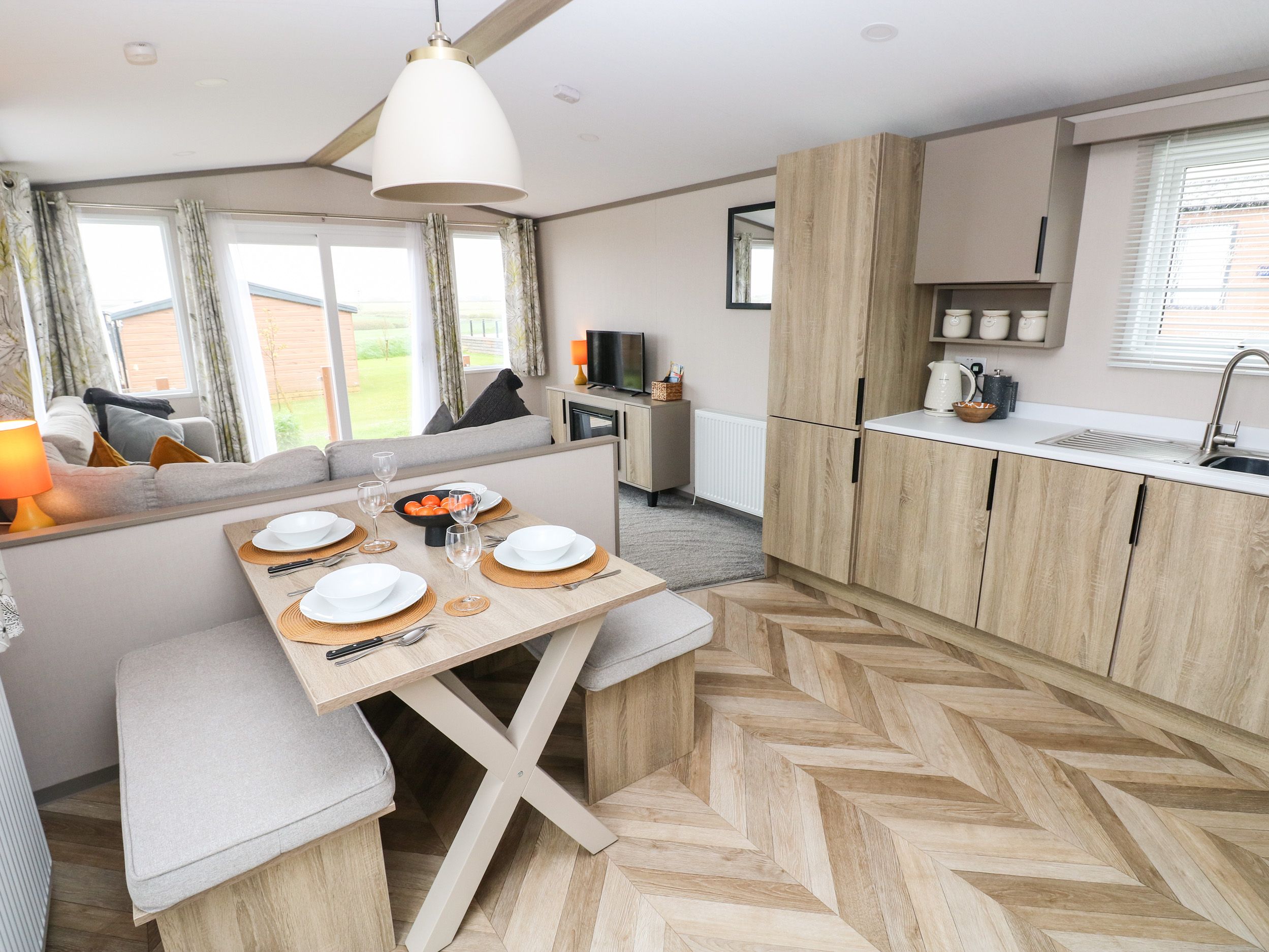 Accomodation Details Please Note: this property requires a minimum of 3 night stays and accommodates Monday and Friday check-ins only. Single-storey. Two ground-floor bedrooms: 1 x double with en-suite cloakroom, 1 x twin. Shower room with walk-in shower, basin and WC. Open-plan living space with kitchen, dining area and sitting area with electric fire