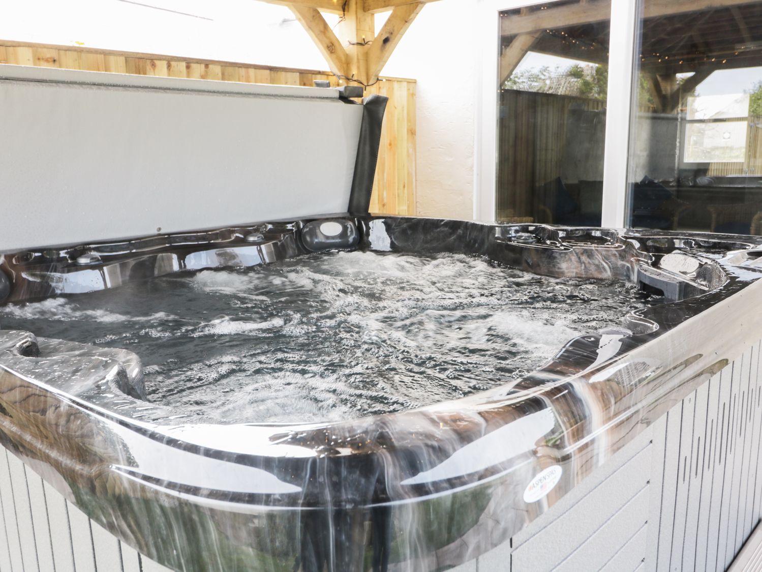 There is a beautiful well kept large garden to the rear which is simply stunning. It has a seating area and a quaint summer house with relaxing chairs to enjoy the view. There is a lovely hot tub area located underneath a beautiful oak gazebo with has lovely twinkly lights around it.