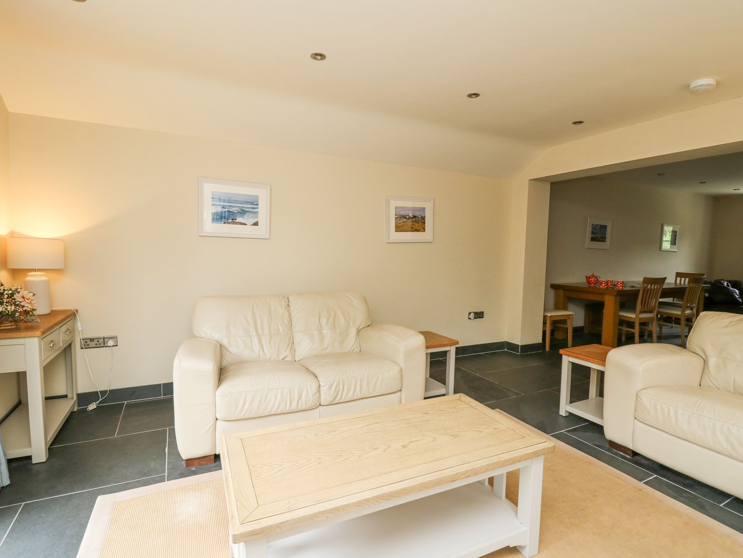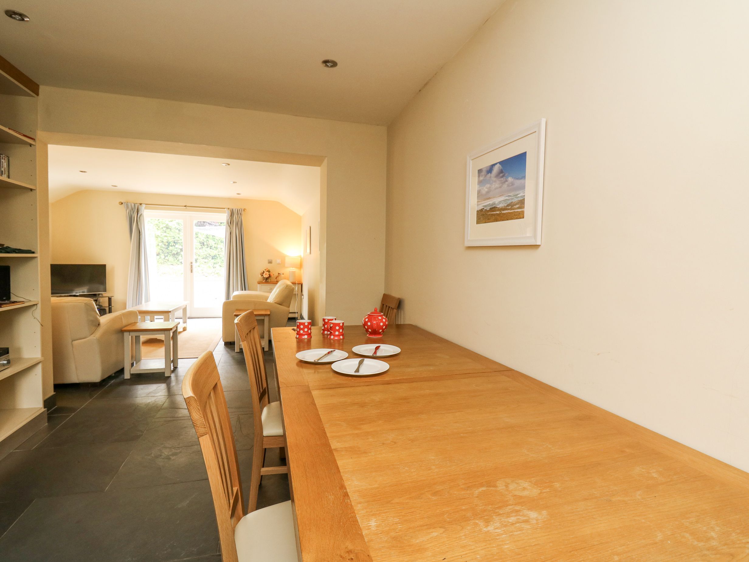 Amenities Gas central heating. Gas range and hob, microwave, fridge/freezer, washer/dryer, dishwasher. dining table. 5 x TV, WiFi. Fuel and power inc. in rent. Bed linen and towels inc. in rent. Highchair and travel cot available. Off-road parking for 3 cars. Enclosed rear garden with patio, lawn, and furniture. Two well-behaved pets welcome. Sorry, no smoking. Pub 0.5 miles, beach and shop 0.6 miles. Note: There are steps up to lawn in garden, please take care.