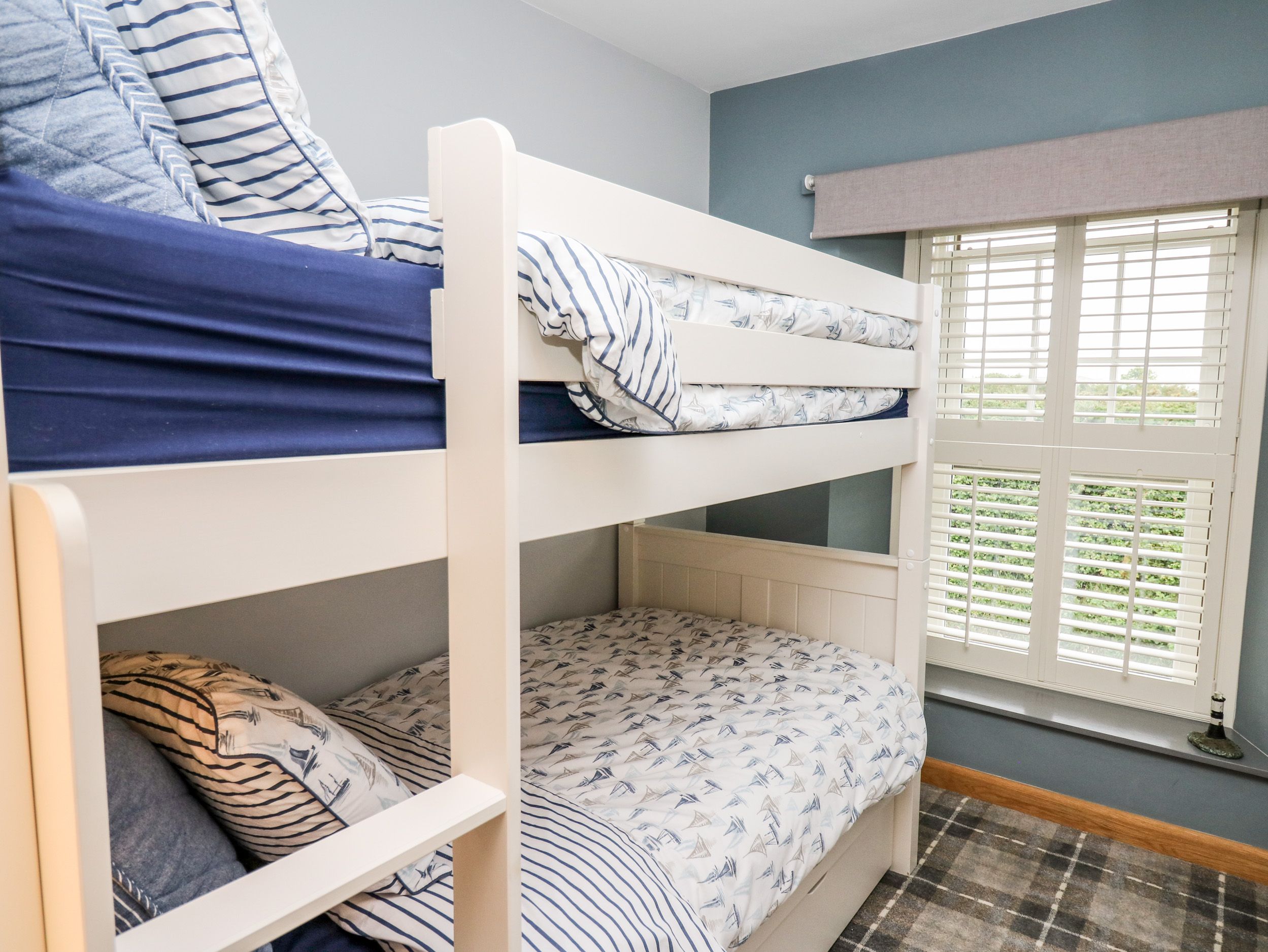 Accomodation Details Four bedrooms: 1 x king-size with en-suite walk-in shower, basin and WC, 1 x ground-floor king-size with en-suite walk-in shower, basin and WC, 1 x king-size, 1 x bunk. Bathroom with bath, shower over, basin and WC. Ground-floor wet room with walk-in shower, basin and WC. 1 x drying room. Open-plan living space with kitchen, dining area and sitting area. Sitting room with woodburning stove