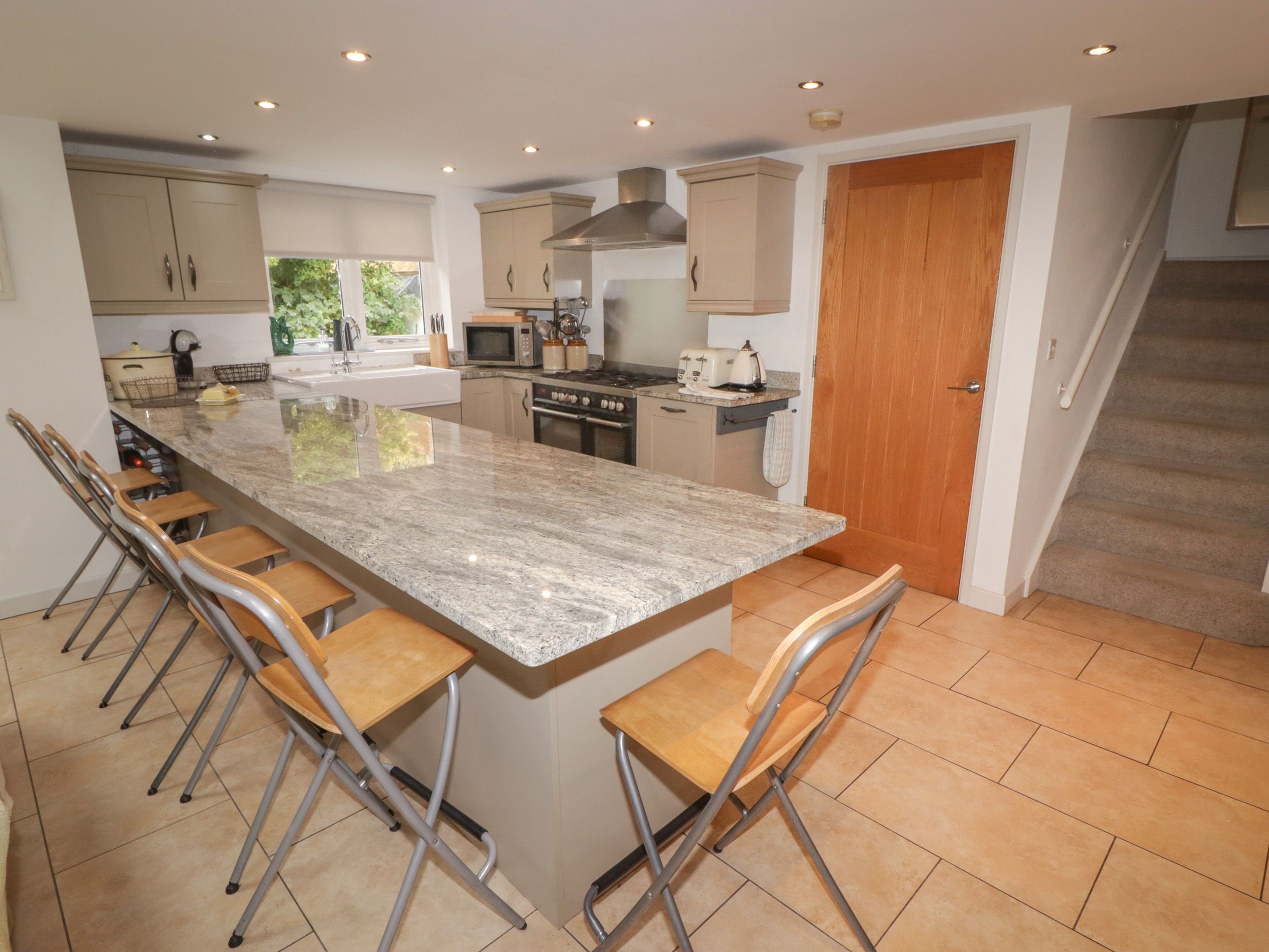 Accomodation Details Three bedrooms: 2 x super-king-size with TV and en-suite walk-in shower, basin, heated towel rail and WC, 1 x family room with double and bunk with en-suite bath, shower over, basin and WC. Cloakroom. Open-plan living space with kitchen, dining and sitting area with woodburning stove. Games/utility room