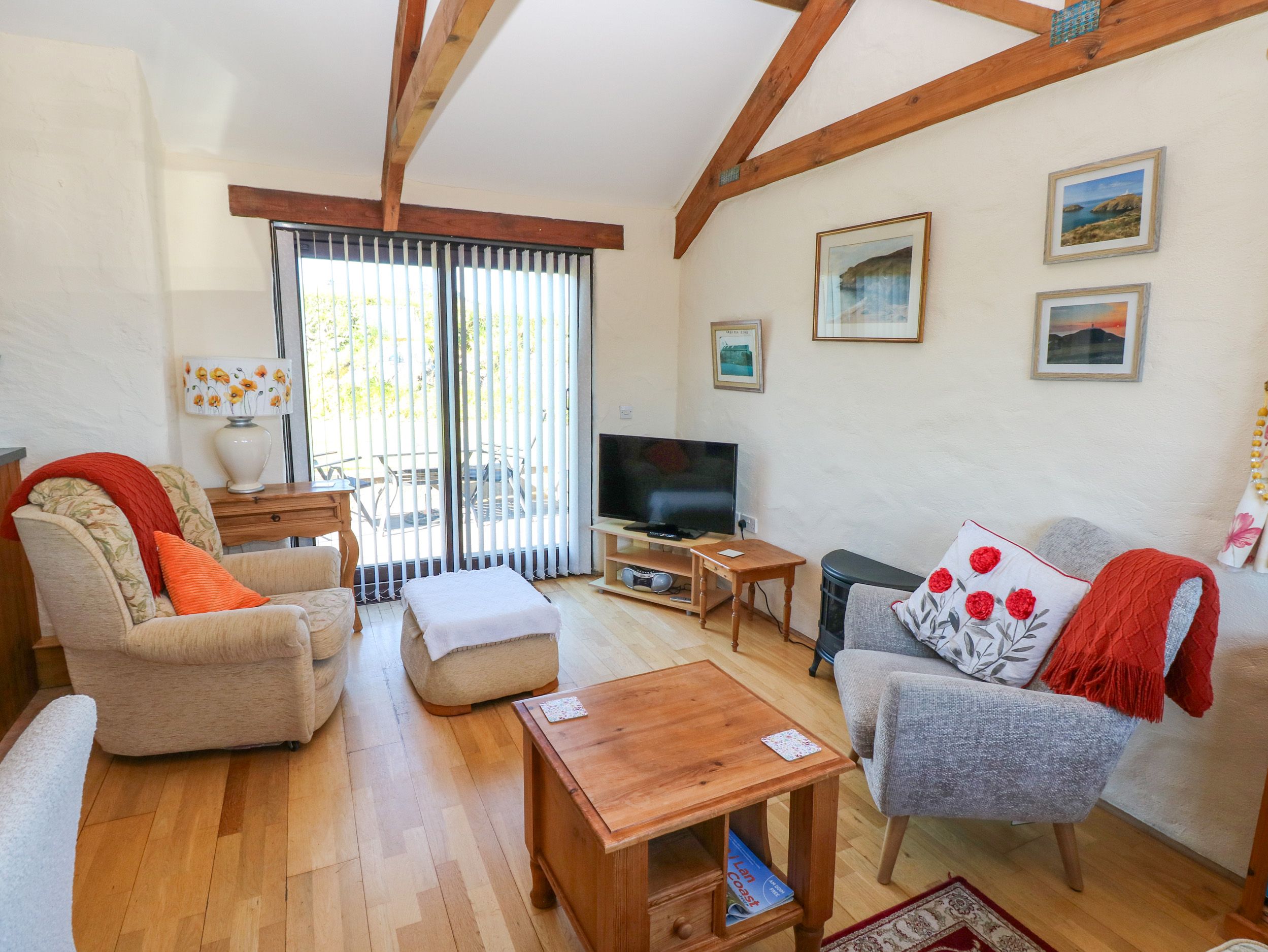 Amenities Oil central heating. Electric hob, built in oven, microwave, fridge/freezer, washing machine, dishwasher, TV, DVD, WiFi, selection of books. Fuel and power inc. in rent. Electric Vehicles: This property does not have a charge point for electric vehicles and charging from within the property is prohibited. Bed linen and towels inc. in rent. Please bring own beach towels and cot linen. A travel cot and highchair are provided. Off-road parking for two cars. Enclosed lawn and decked area with garden table and chairs (the garden is enclosed but we can't guarantee it's dog or child proof). Strictly one small well behaved dog (additional charge applies). Sorry, no smoking. Shop and pub 3.6 miles, coast 1.5 miles