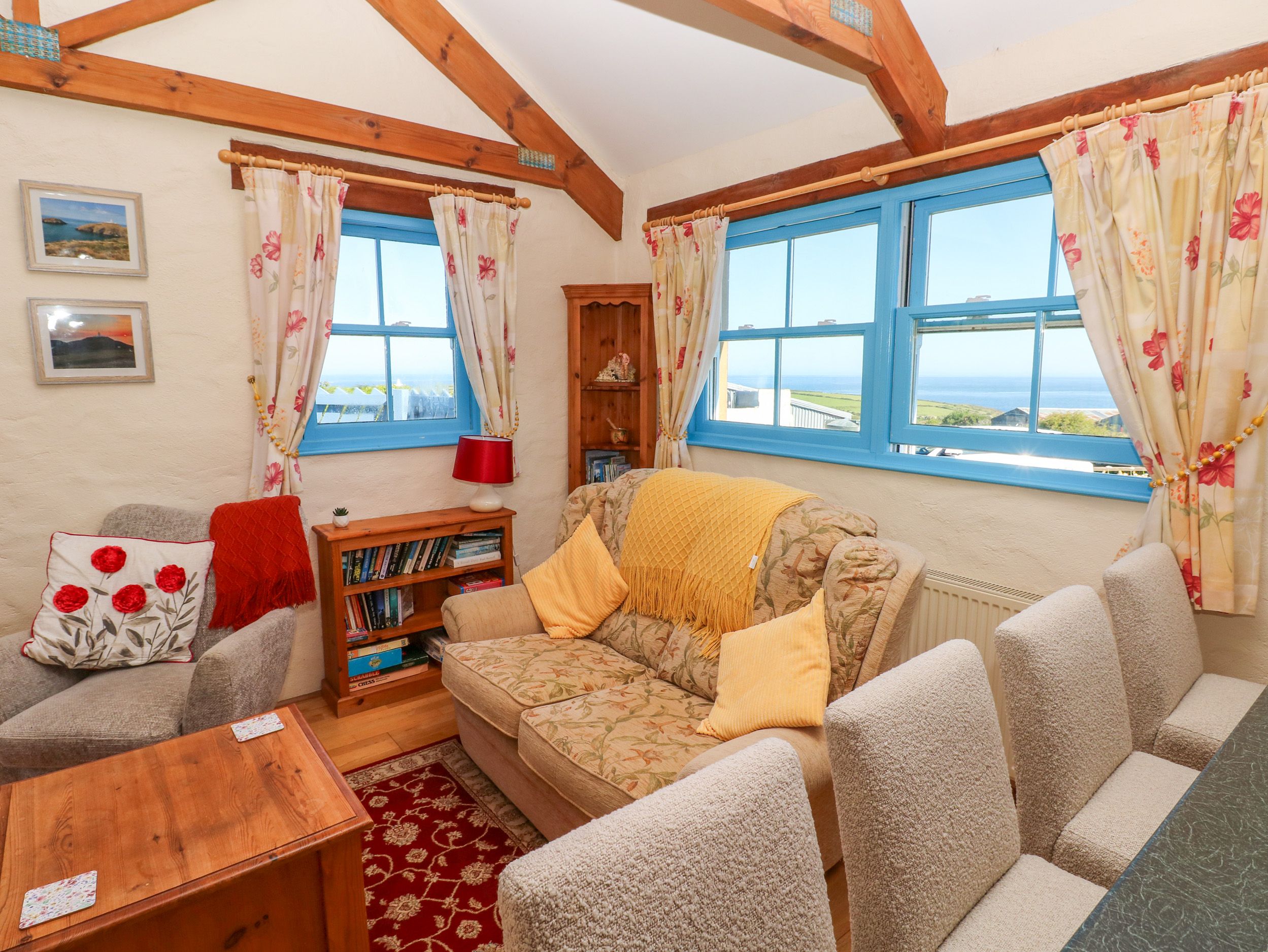 Area Goodwick is a picturesque coastal village overlooking the bay where the twice daily ferries run to Ireland. With a variety of shops, cafes, pubs and a small supermarket, it offers everything you need. The twin town of Fishguard is only two miles away, where you will find more unique shops, a delicatessen, pubs, restaurants and the Last Invasion Tapestry, which is based on the famous Welsh ladies' victory over the French and has been compared to the Bayeux Tapestry. Located in such a great coastal position, the Pembrokeshire and Cardiganshire section of the world-famous Welsh coastal path is right on your doorstep, so enjoy the scenic walks, outstandingly beautiful beaches, the opportunity to watch dolphins and seals and so much more! From lazy, warm summer days to wild and windy winter days, the scenery is ever-changing and always remarkable. Historic castles, theme parks, art galleries, kayaking, coasteering and boat trips to the islands are all nearby and St. Davids, the smallest city in the UK, with its magnificent cathedral is a short drive away, while the coastal town of Newport, with its fantastic beach, is closer still. A perfect location all year round.