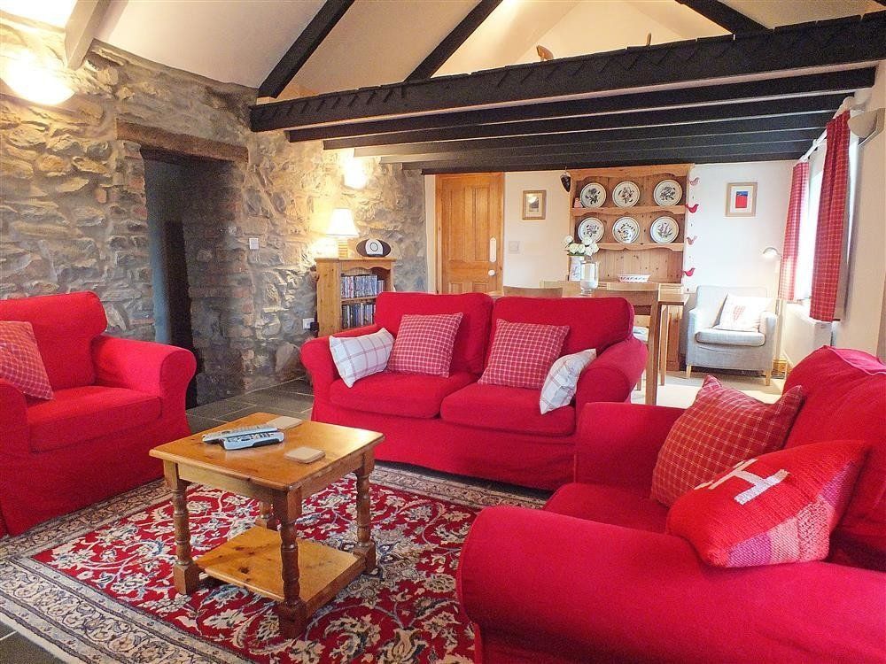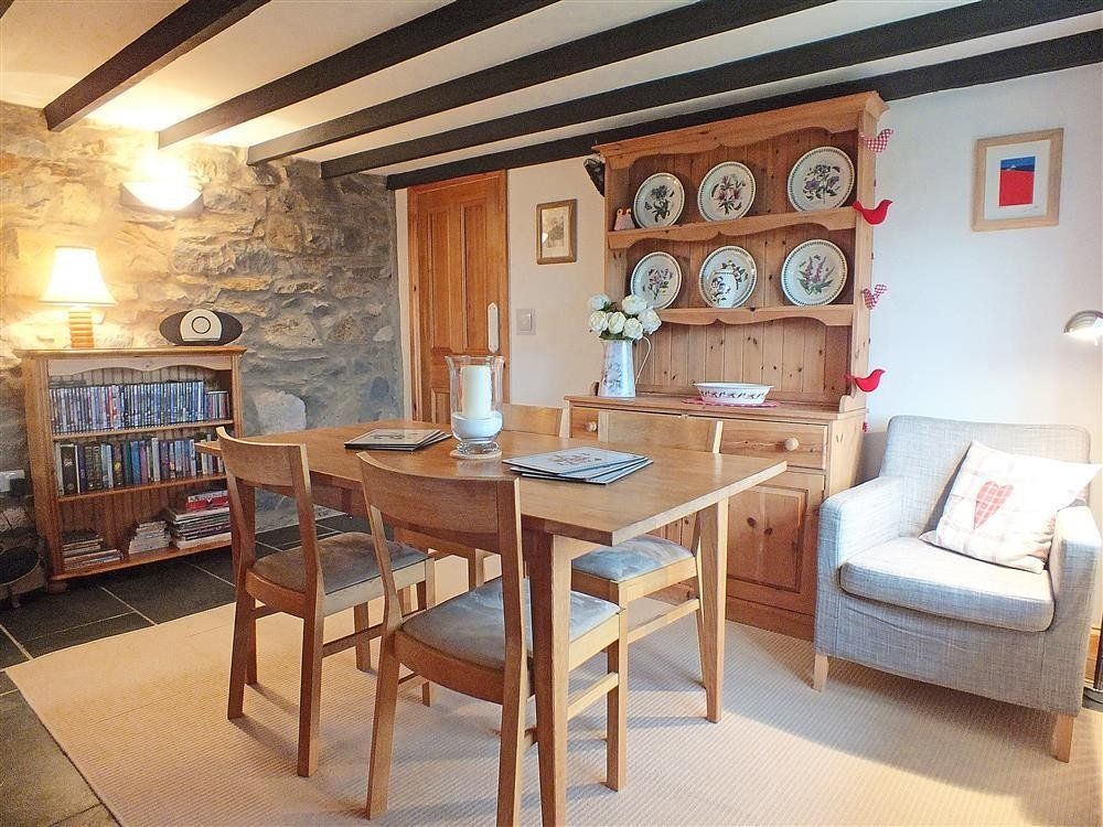 All ground floor. Two bedrooms (accessed via two steps from sitting room). 1 x Double. 1 x Twin. Bathroom with bath, shower over, basin, centrally heated towel rail WC. Kitchen. Sitting room with dining area and wood burning stove (welcome pack of logs offered from November-March). Porch. There are internal steps within the property