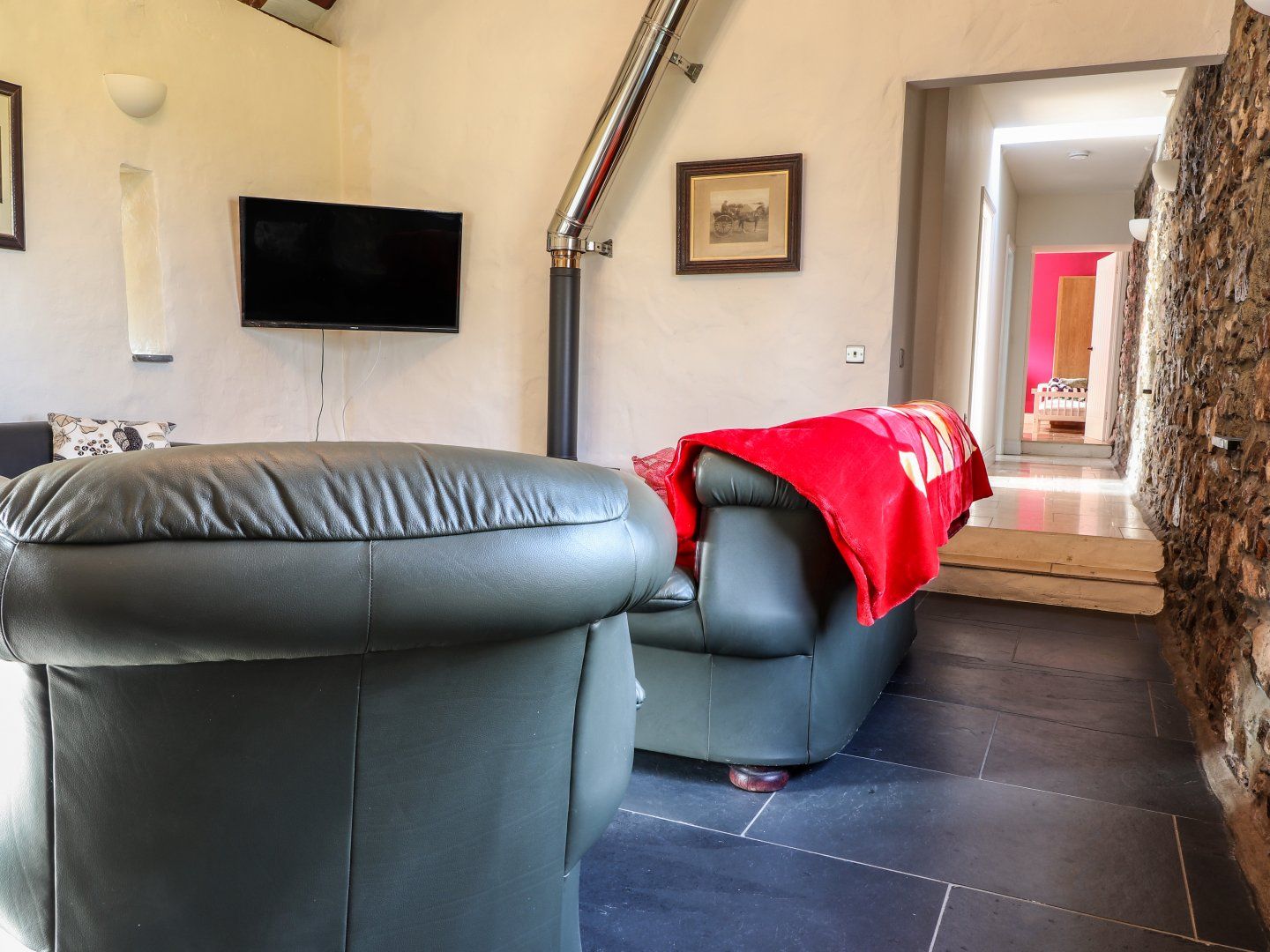 Amenities Biomass central heating. Range cooker with electric oven, grill and hob, microwave, fridge/freezer, washing machine, dishwasher, wine cooler. 3 x TV, WiFi. Fuel, power and starter pack for wood burning stove inc. in rent. Electric Vehicles: This property does not have a charge point for electric vehicles and charging from within the property is prohibited. Bed linen and towels inc. in rent. Please bring your own beach towels. Highchair and cot available. Off-road farmyard parking. Enclosed rear garden with lawn. Sorry, no pets and no smoking. The cottage is located on the owner's farm which has friendly farm dogs. Shop 3.7 miles, pub 3.6 miles, coast 0.5 miles