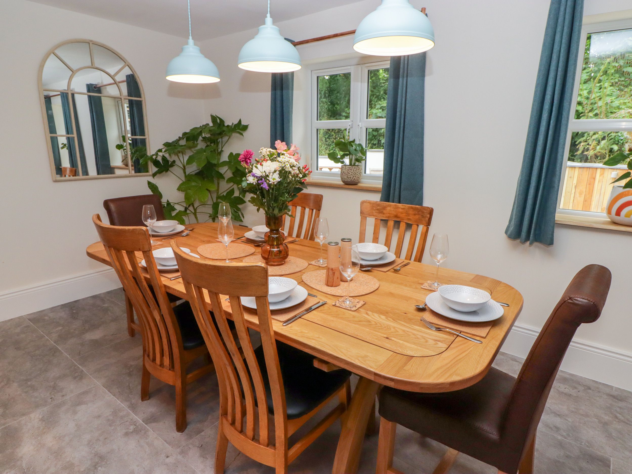 The Grove consists of an open-plan living space with a kitchen with range electric cooker, electric hob, dishwasher, fridge/freezer, kettle, and toaster, a dining area with dining seating for six, and a sitting area with TV and woodburning stove. The bedrooms consist of a ground-floor king-size and two king-sizes. There is a bathroom with bath, shower over, basin, and heated towel rail and WC. Outside, there is an enclosed rear garden with lawn, patio, furniture, and hot tub and off-road parking for six cars. Two well-behaved pets welcome, but sorry, no smoking at this property. There is a highchair and travel cot available. Guests can find a shop within 3.3 miles and a pub in 1.6 miles. WiFi, fuel, power, bed linen and towels are all included in the price. Visit The Grove for your next adventure. This property has a good housekeeping bond of GBP350
