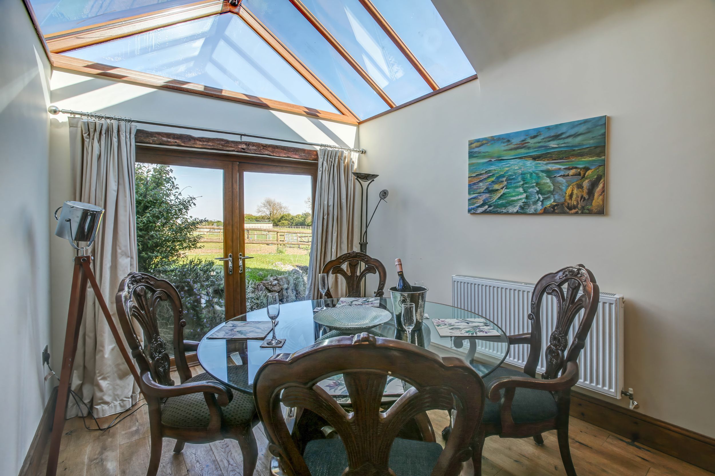 Holiday home The Barn is a single-storey house, consists of a kitchen with electric range oven and hob, microwave, fridge/freezer, and dishwasher, a dining room with seating for four, and a sitting room with woodburning stove and TV. The bedrooms consist of a king-size and double. serviced by a bathroom and shower room. Outside, there is an enclosed rear garden with lawn, patio, furniture, and barbecue, and off-road parking for two cars. Within 2.9 miles you will find a shop, 0.1 miles a pub and 1.3 miles a lake. WiFi, fuel, power, bed linen, and towels are included in the rent. Sorry, no pets and no smoking. Enjoy a peaceful retreat at The Barn. Note: Check-in from 3:30 pm and check-out at 10:30 am. Note: There is a Good Housekeeping Bond of £250.