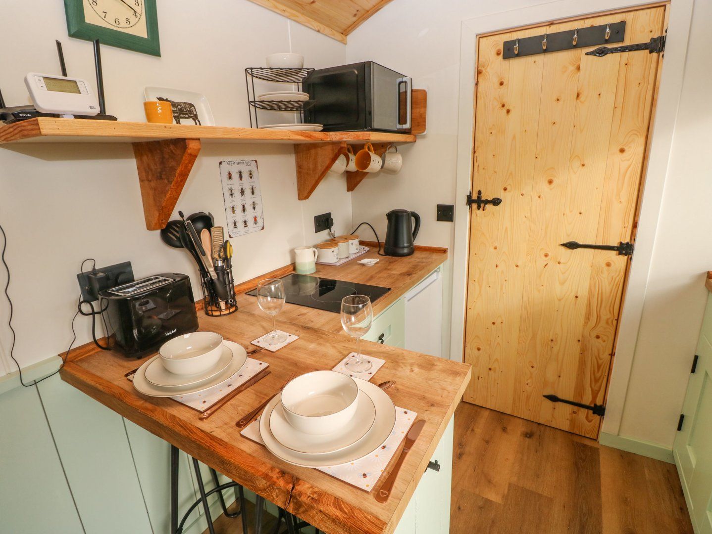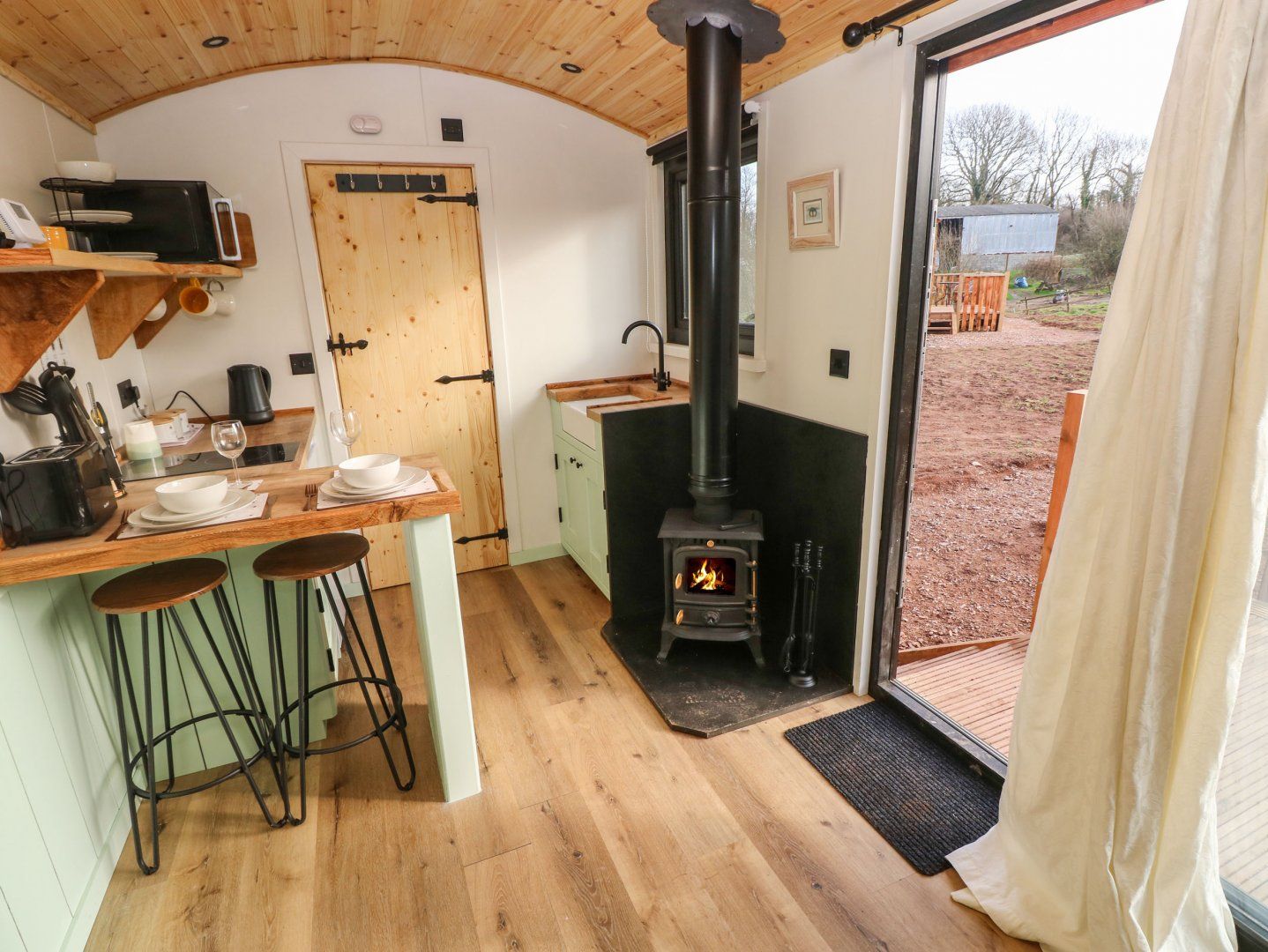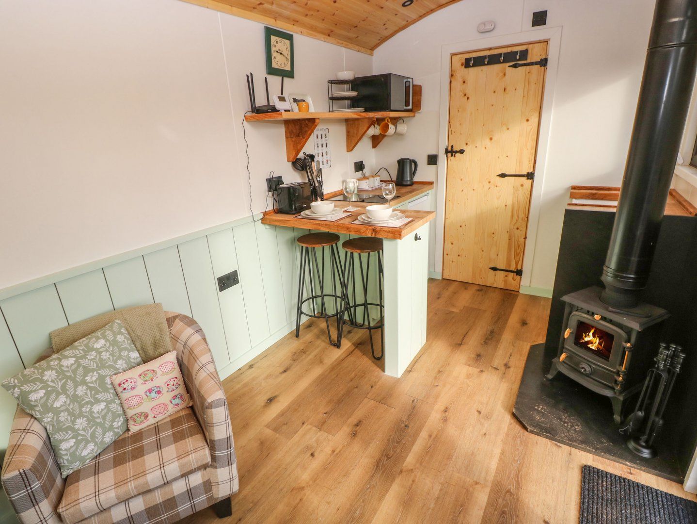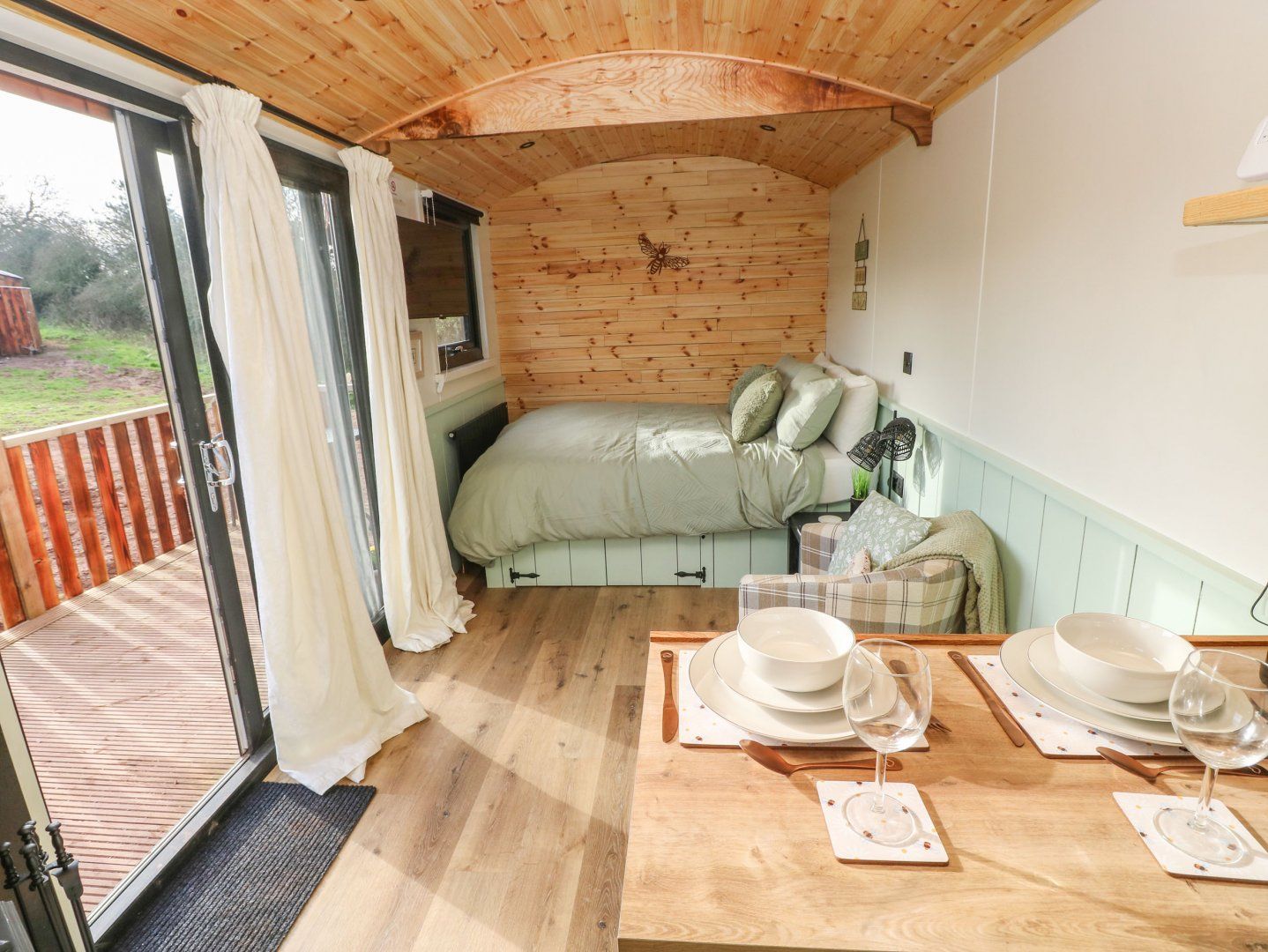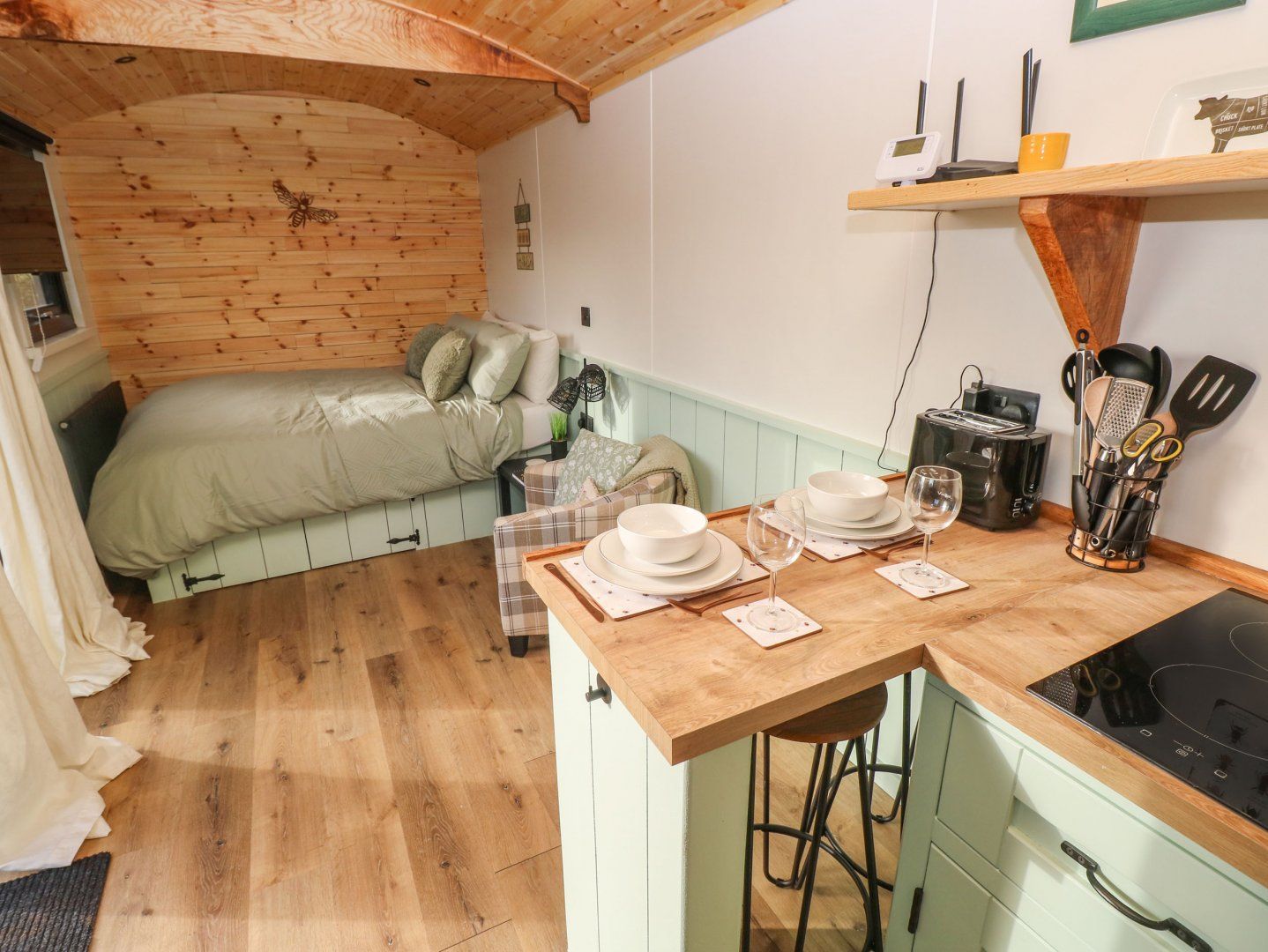Holiday home The living areas in this single-storey shepherd's hut consists of a studio-style layout with kitchenette, dining area, and sitting area with a combi microwave/oven, two-ring halogen hob, fridge, Smart TV, woodburning stove, and a king-size bed. There's also a shower room. Outside there is a private decked area with furniture, a shared lawned area, and off-road parking for one car. Within 1.2 miles you will find a shop and a pub and please note, this is a pet-free and smoke-free property. WiFi, fuel, power, bed linen and towels are all included in the price. For a truly memorable stay in South Wales, choose The Honeybee. Note: There are steps to the exterior of the property. Note: There are steps to the exterior of the property, Due to animals being around the property dogs must be kept on lead and under control at the property