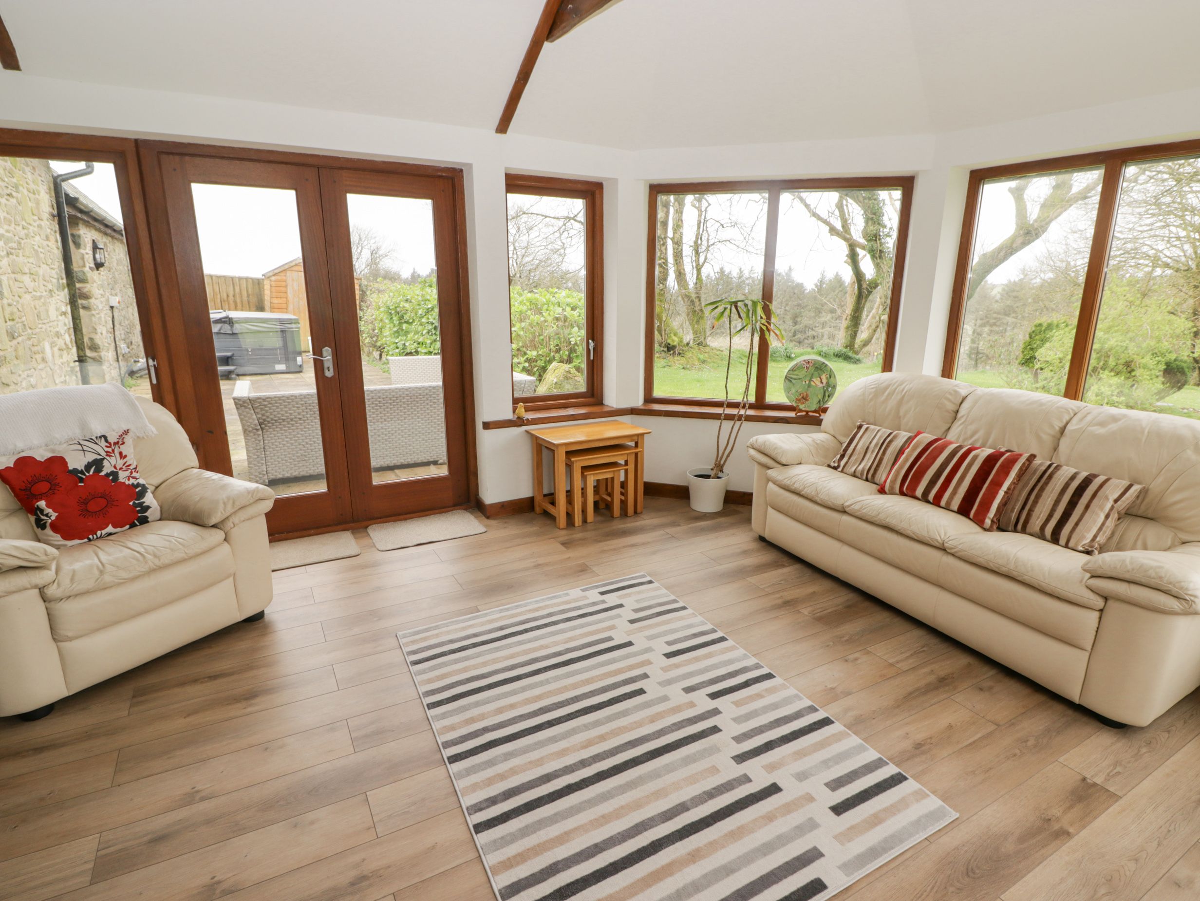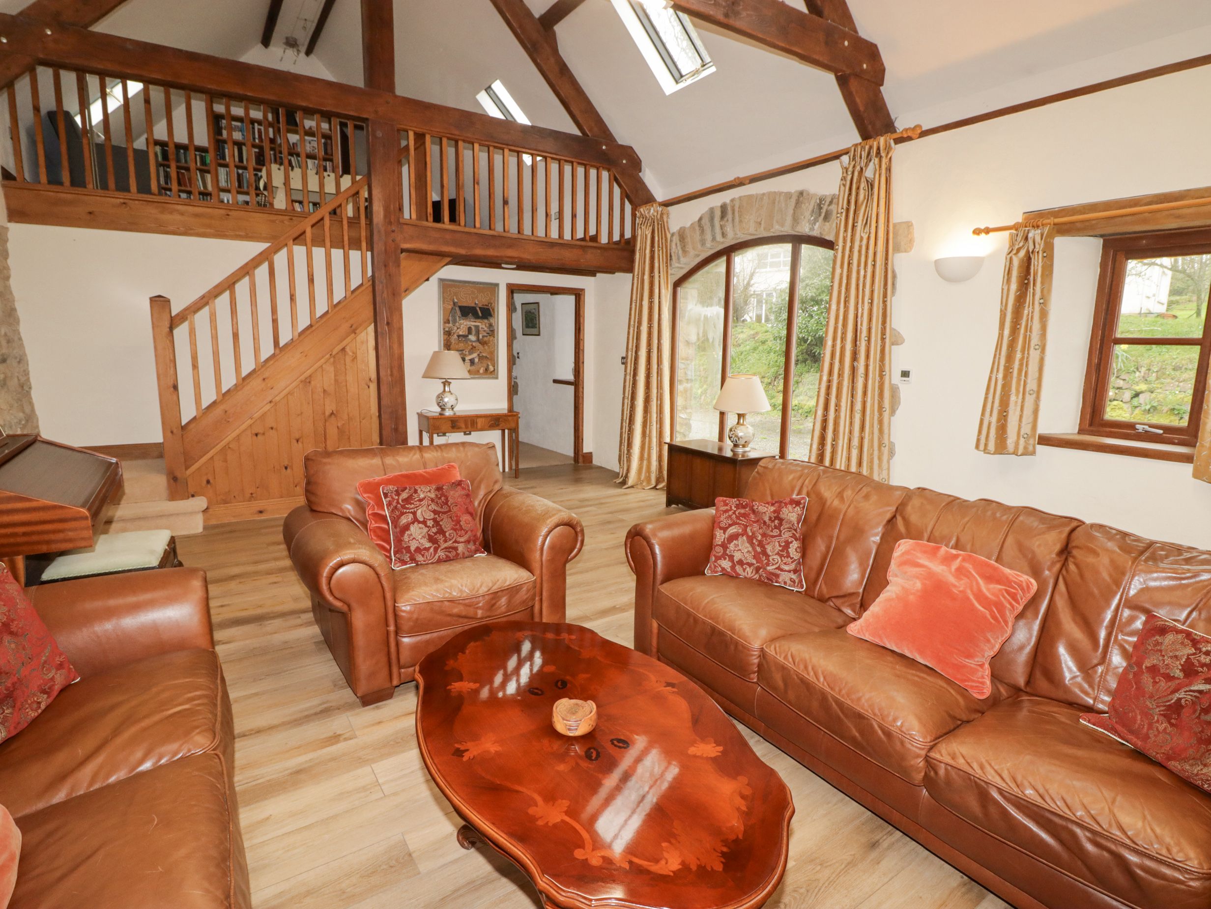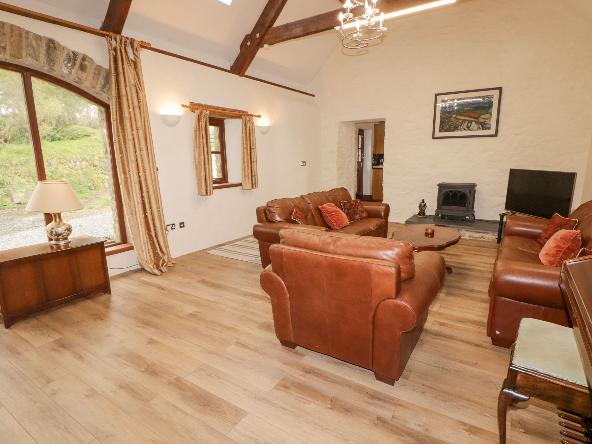 Holiday home The living areas in this barn conversion consists of a kitchen/diner with an electric oven, induction hob, microwave, fridge/freezer, dishwasher and coffee machine, a utility with washing machine and fridge, a sitting room with TV and electric fire, a sunroom, and a mezzanine study/games room with TV and a selection of games. The bedrooms consist of a king-size with en-suite, a ground-floor double, a ground-floor twin, serviced by a ground-floor bathroom. Outside there is a rear garden with lawn, patio, furniture, and hot tub, and a private driveway for three cars. Two well-behaved dogs welcomed, but sorry, no smoking. WiFi, fuel, power, bed linen and towels are all included in the price. You'll find a shop in 2.9 miles and a pub in 2.3 miles. For a rural escape to Pembrokeshire, book Y Beudy Garndeifog. Note: Check-in from 4pm, check-out by 9am.