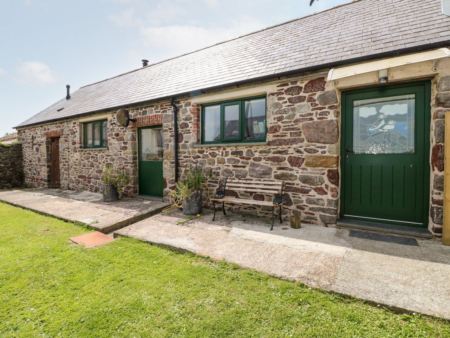 Garden description very misleading.. No grass where the sitting is after the patio only uneven farm yard not really suitable for small children.Front lawn very narrow only a small bench on an uneven strip of concrete .No relaxing there with a drink as stated.