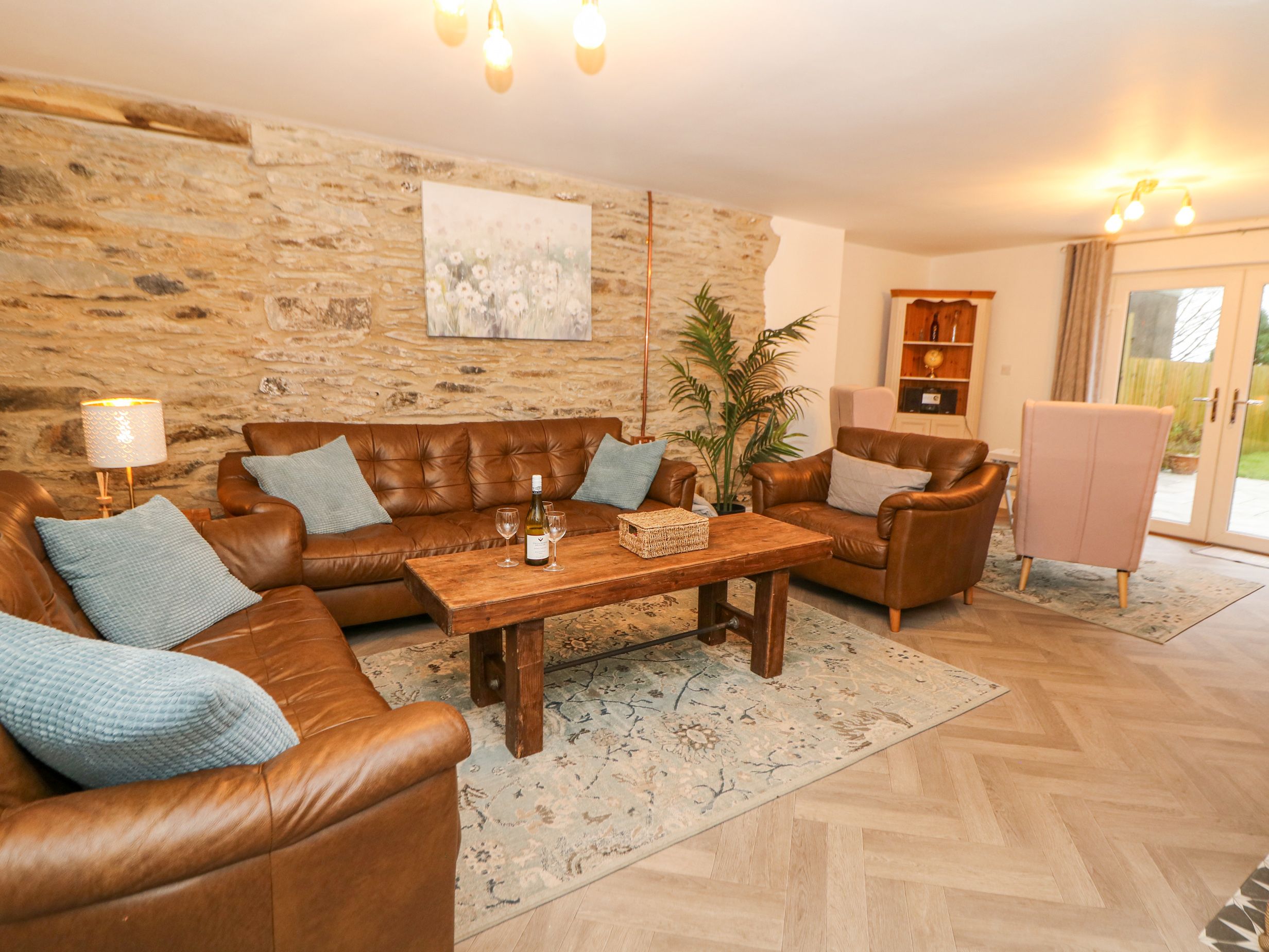 Accomodation Details Three bedrooms: 1 x king-size, 1 x double, 1 x twin. Bathroom with freestanding bath, handheld shower, walk-in shower, basin and WC. Cloakroom with basin and WC. Kitchen/diner. Utility. Sitting room with woodburning stove