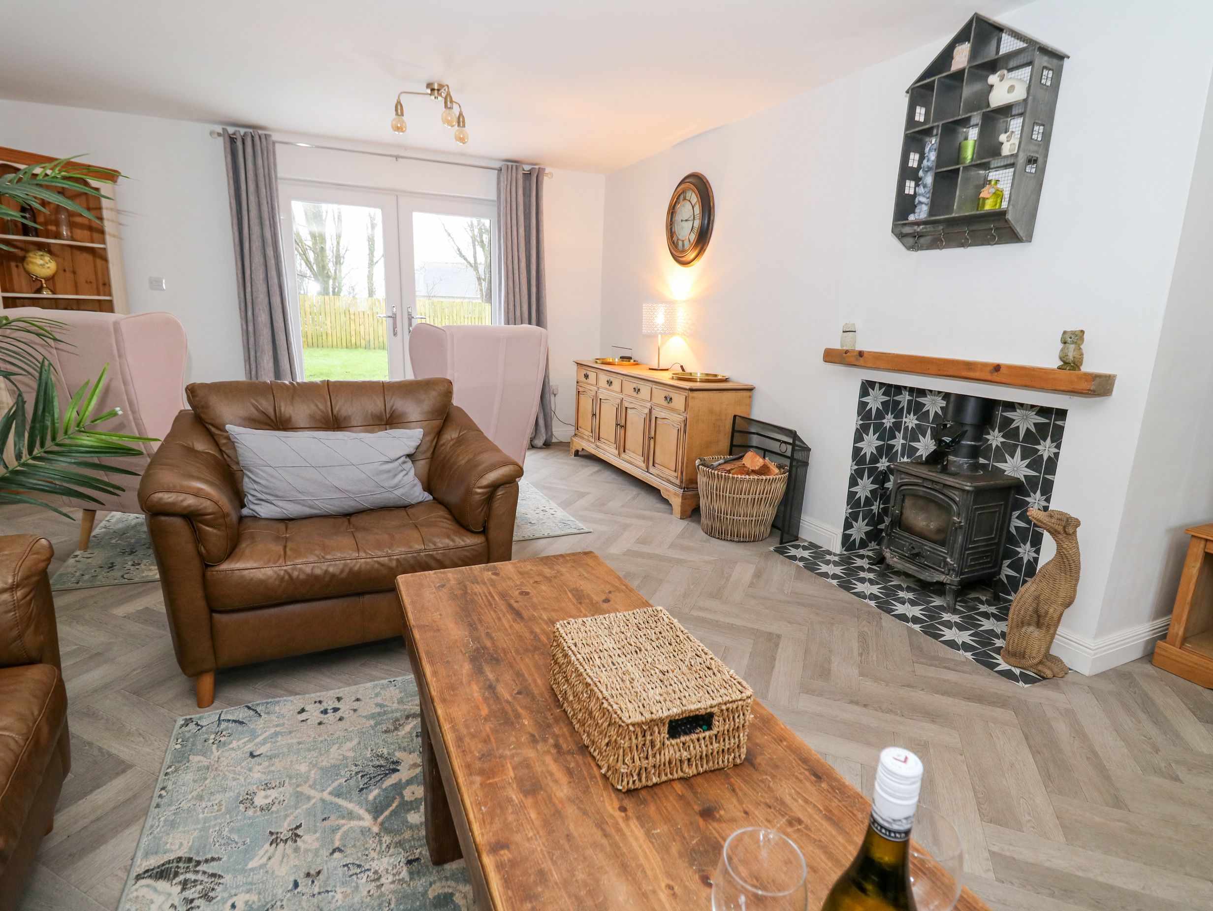 Amenities Oil central heating. Electric oven and hob, microwave, fridge/freezer, washer/dryer, dishwasher. Smart TV, radio, CD player and WiFi. Fuel, power, and starter pack for woodburning stove inc. in rent. Bed linen and towels inc. in rent. Highchair, travel cot, and stairgate available on request. Off-road parking for 3 cars. Enclosed rear garden with lawn, patio and furniture. Unlimited number of pets welcome. Sorry, no smoking. Shop and pub 0.1 miles. Note: Check-in from 4pm, check-out by 10:30am. Note: This property has a Good Housekeeping Bond of £250
