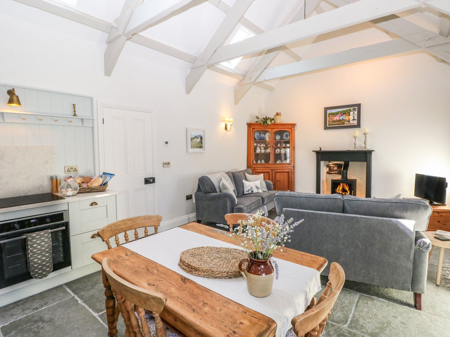 Accomodation Details Single-storey. Two king-size bedrooms with TV. Bathroom with freestanding bath, walk-in shower, basin, heated towel rail and WC. Open-plan living space with kitchen, dining area and sitting area with woodburning stove. A starter pack of logs are provided. Utility