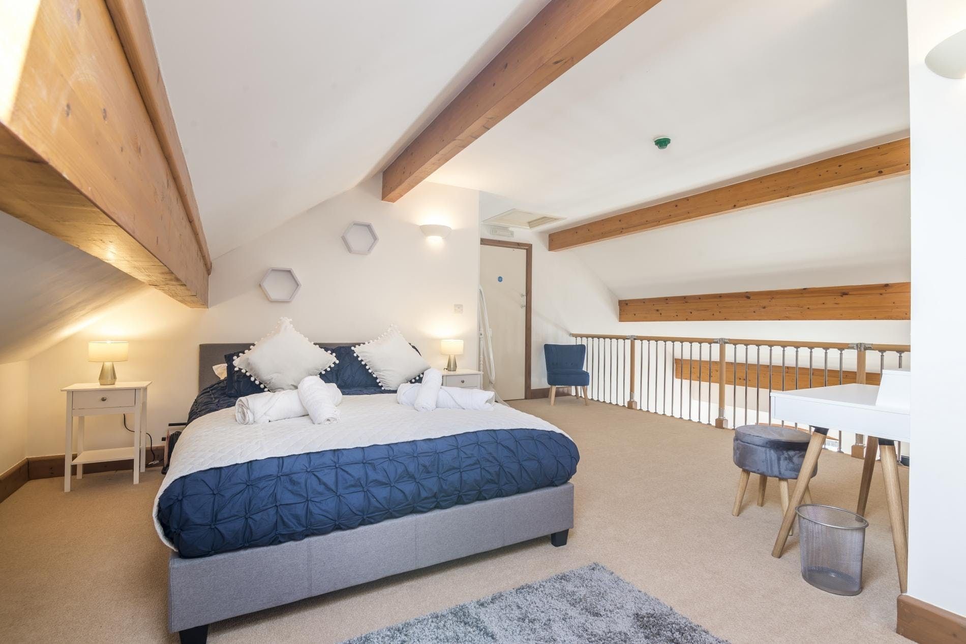 This top-floor walk-up apartment offers beautiful views over Milford Marina, allowing ample boat-watching opportunities from the comfort of the living room with its double-height beamed ceilings. The main bedroom on the mezzanine level is open to the living area, so won’t suit those looking for complete privacy. But with two other bedrooms to choose from, there are flexible sleeping options nonetheless. Outside, you’ll find a plethora of restaurants and shops, while St Thomas' Bay with its scenic beach is easily reachable by car.