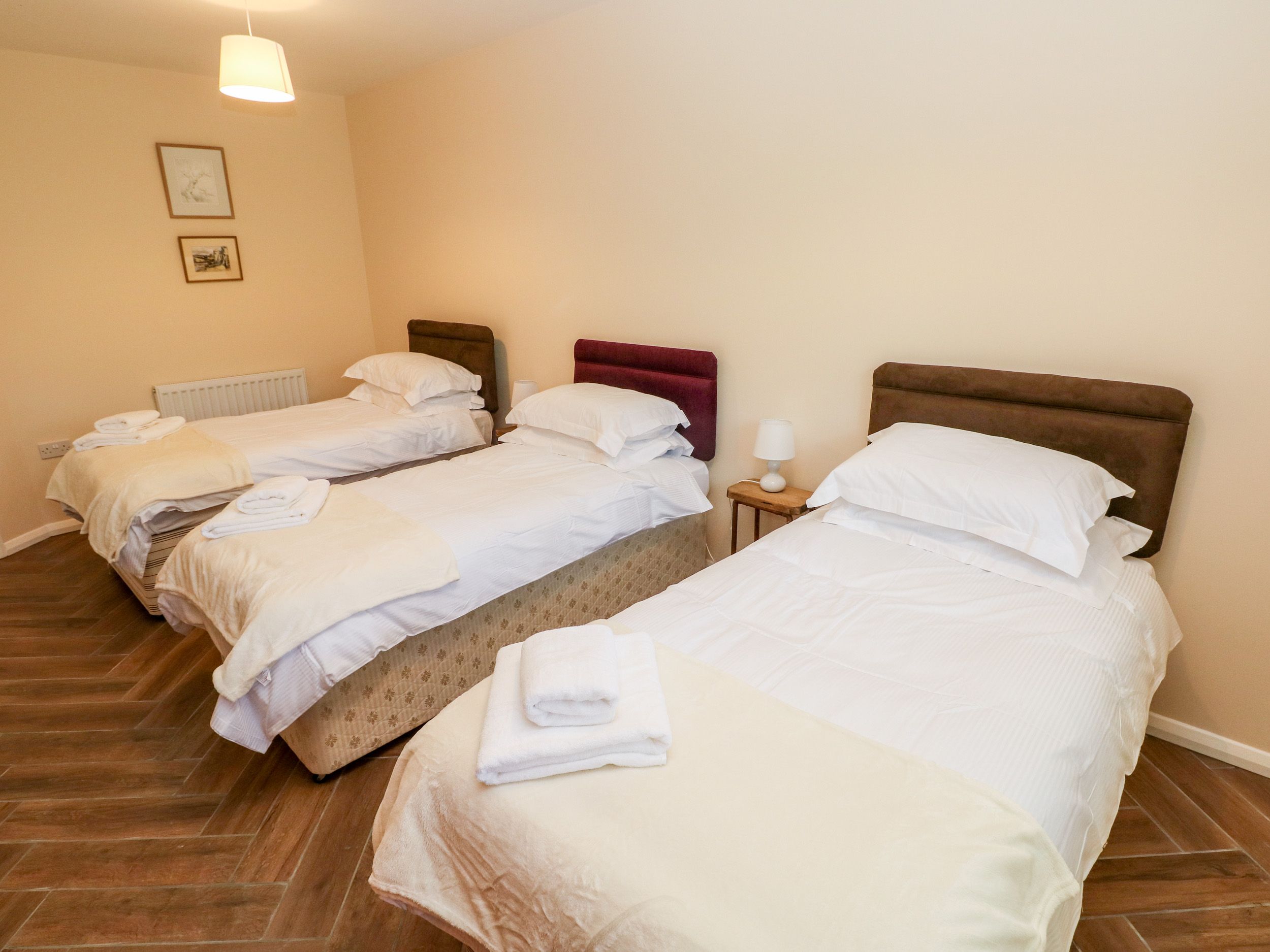 All-ground-floor. Four bedrooms: 1 x family room with King Size Bed and one single with en-suite shower, basin, heated towel rail and WC, 1 x King Size with en-suite shower, basin, heated towel rail and WC, 1 x King Size with en-suite shower, basin and WC, 1 x triple room with three singles. Bathroom with bath, shower over, separate walk-in shower, basin, heated towel rail and WC. Kitchen/diner. Sitting room