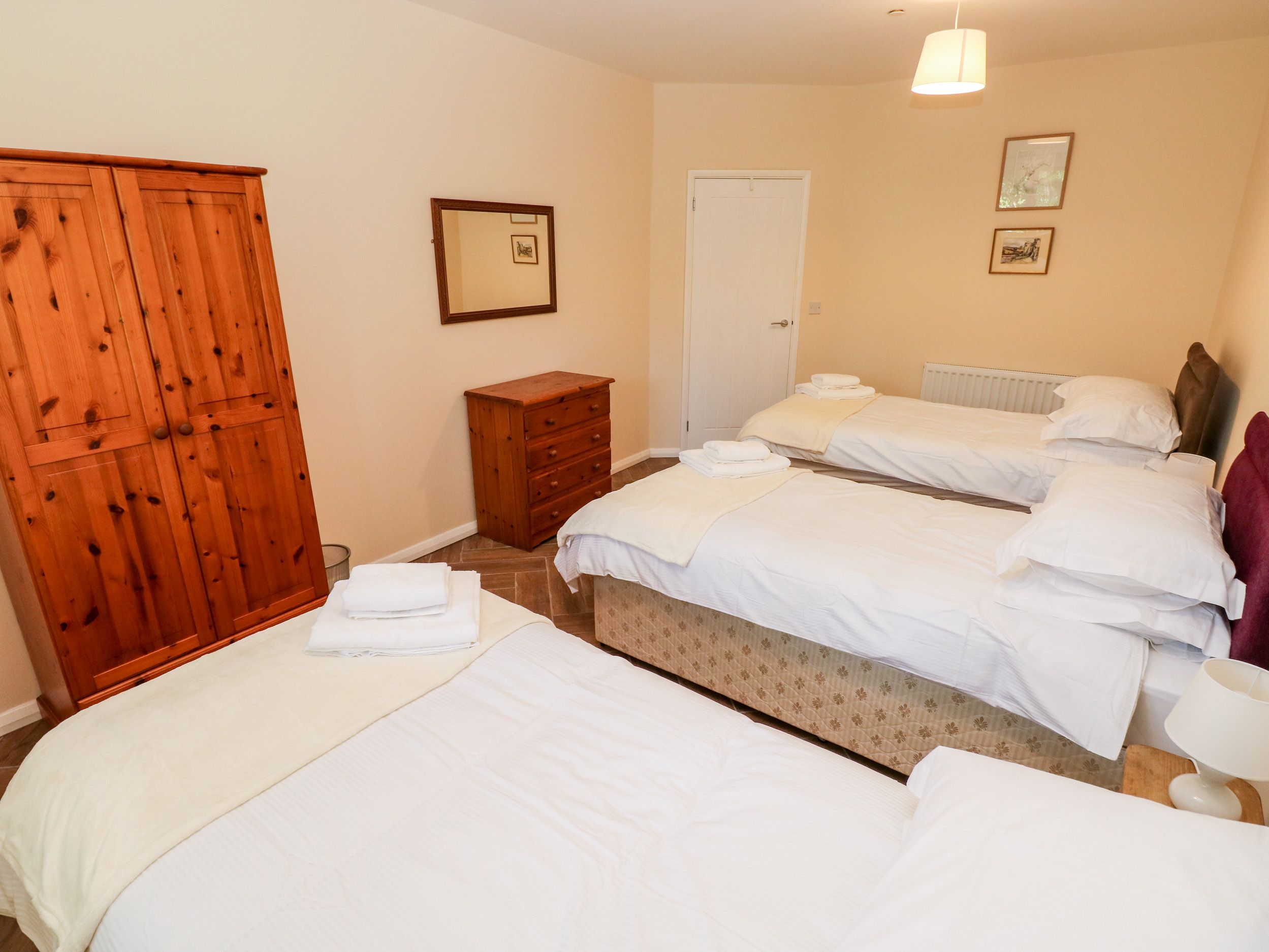 LPG gas central heating. Electric oven and hob, microwave, fridge/freezer, washing machine, tumble dryer, dishwasher, TV and WiFi. Fuel and power and bed linen inc. in rent, towels not included. Highchair & Cot Available upon request. Ample off-road parking. Lawn and patio garden with furniture. Two well-behaved dogs welcome with a supplement of £25 pet pet per holiday. Dogs only, not other pets accepted. Sorry, no smoking. Shop 0.4 miles, pub 0.8 miles. Note: There is a stream running alongside the property, children and pets to be supervised at all times. Note: There is a bat box at the property. Please note that this property does not provide towels. Please Note the wood burning stove is out of commission and can not be used