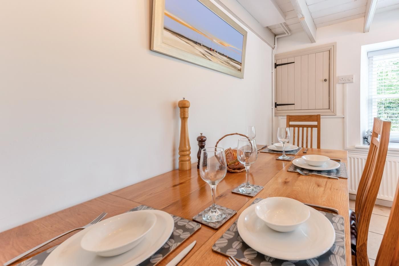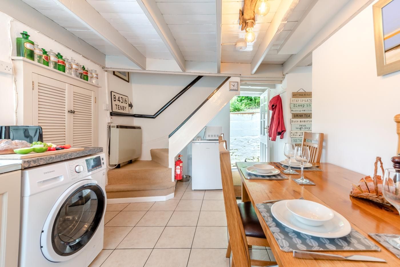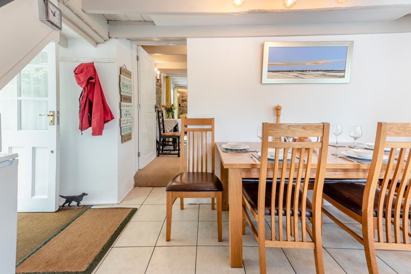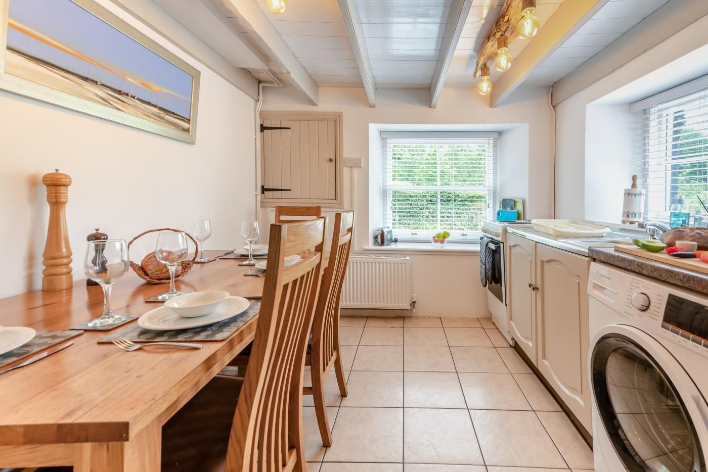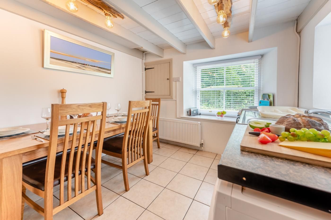 This charming Pembrokeshire beach cottage has a large lounge/dining room and a kitchen with breakfast table and seating for up to six people.