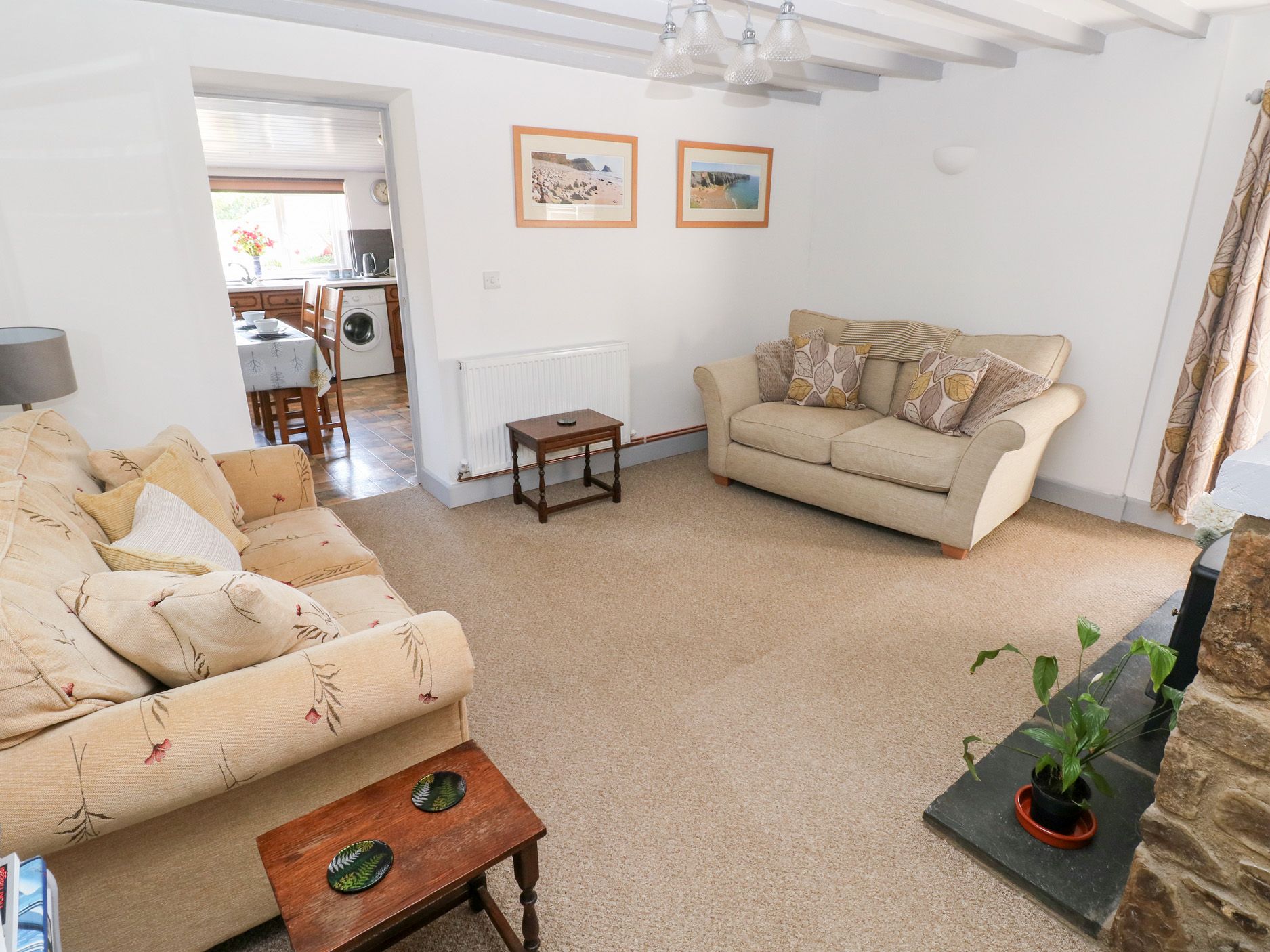 Amenities Gas central heating and electric fire. Electric cooker, microwave, fridge/freezer, dishwasher, washing machine. TV with satellite, DVD, CD. Wi-Fi. Fuel and power included in rent. Electric Vehicles: This property does not have a charge point for electric vehicles and charging from within the property is prohibited. Bed linen and towels included in rent. Cot, high chair and stair gate are available on request. Ample off road parking. Enclosed patio with furniture and BBQ. Two well behaved pets welcome, (additional charge applies). Sorry, no smoking. Shop 3 miles, pub 5 minute walk, coast 5 miles. Max 4 adults. Please Note: Friday - Friday Bookings preferred