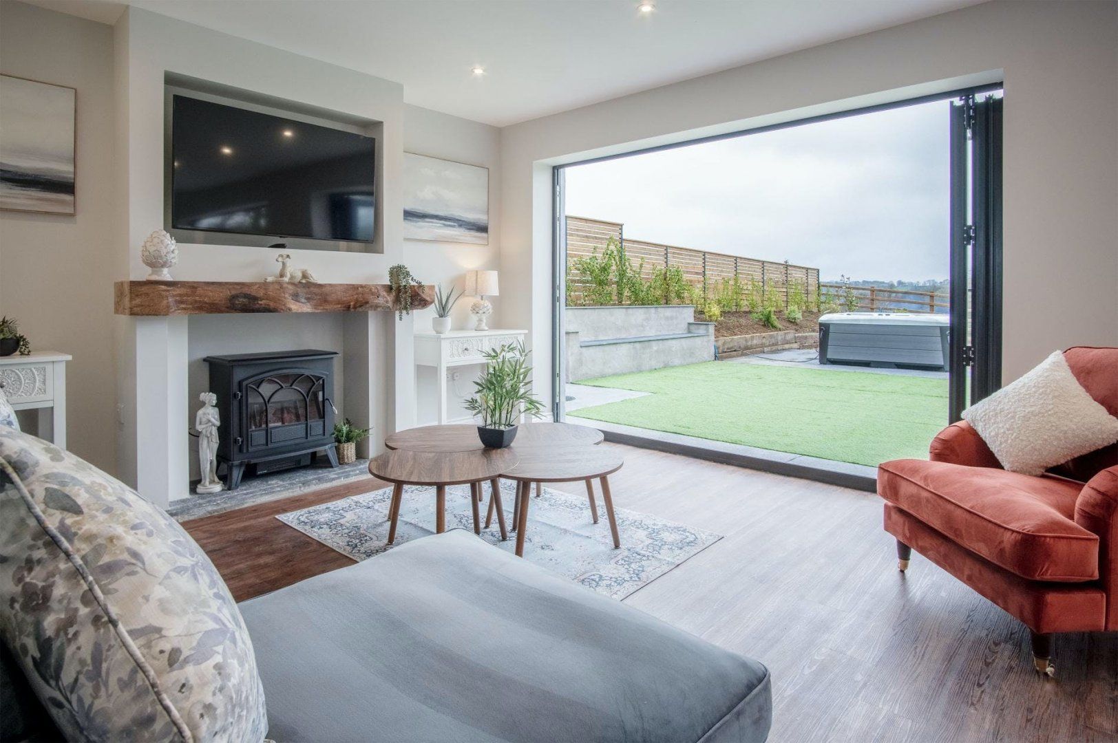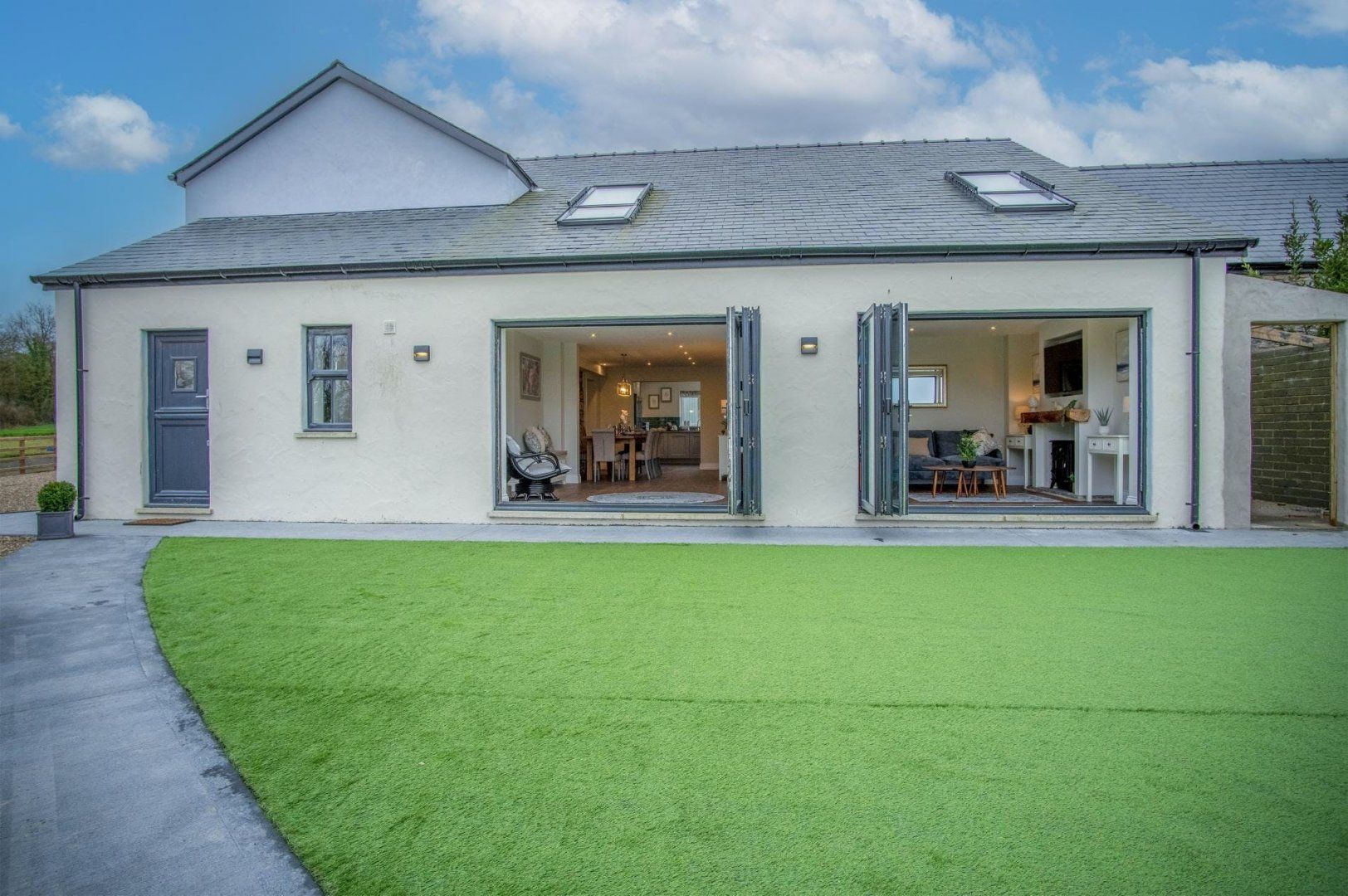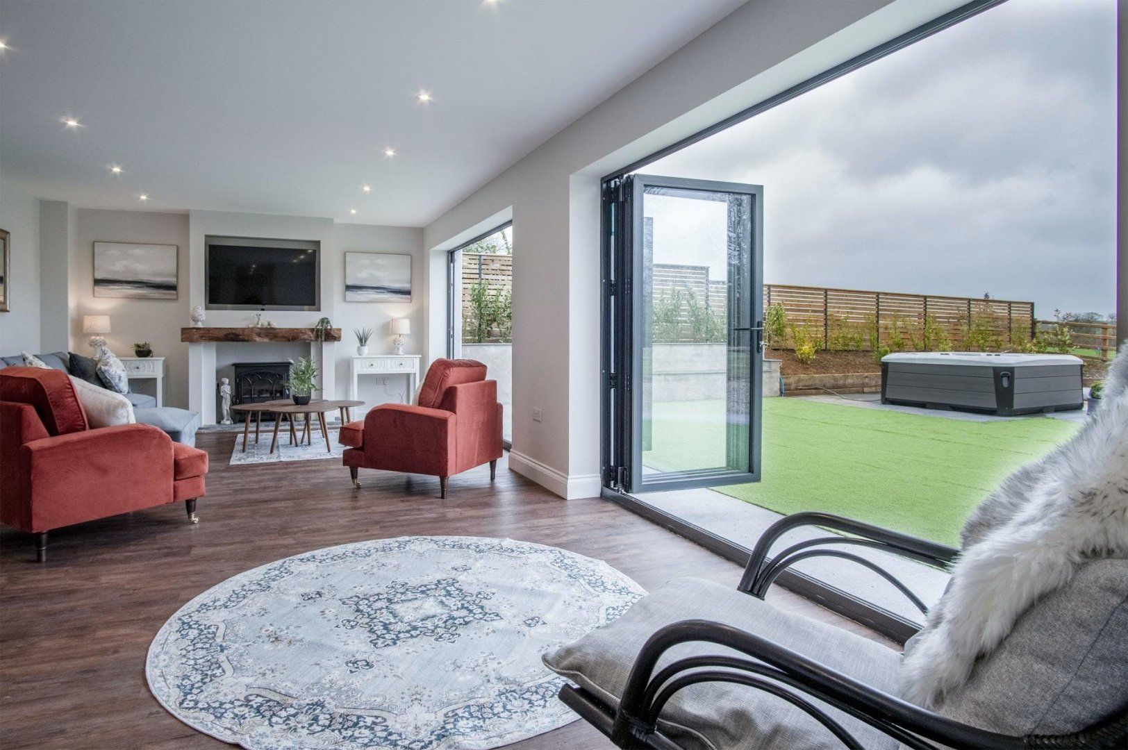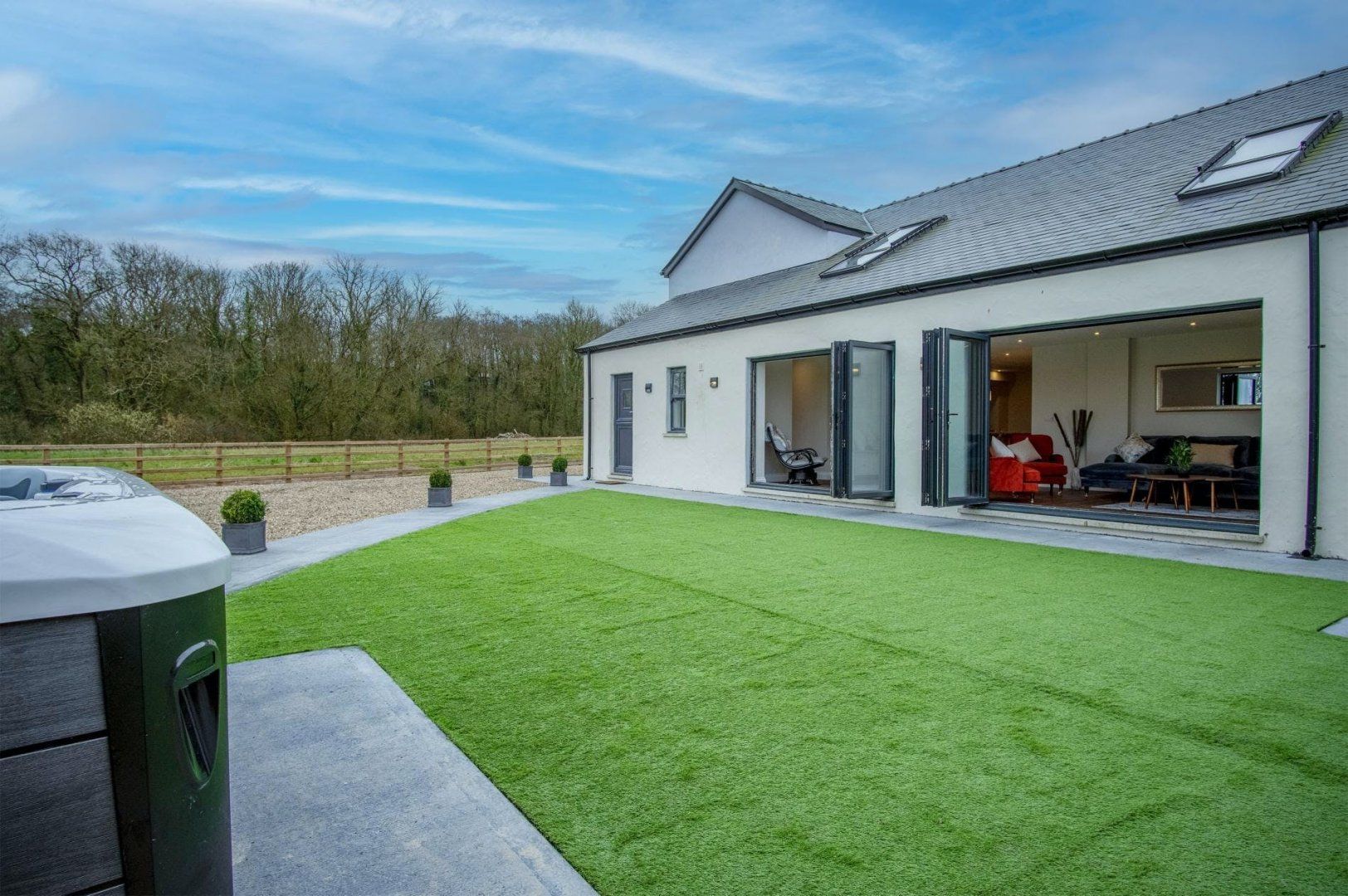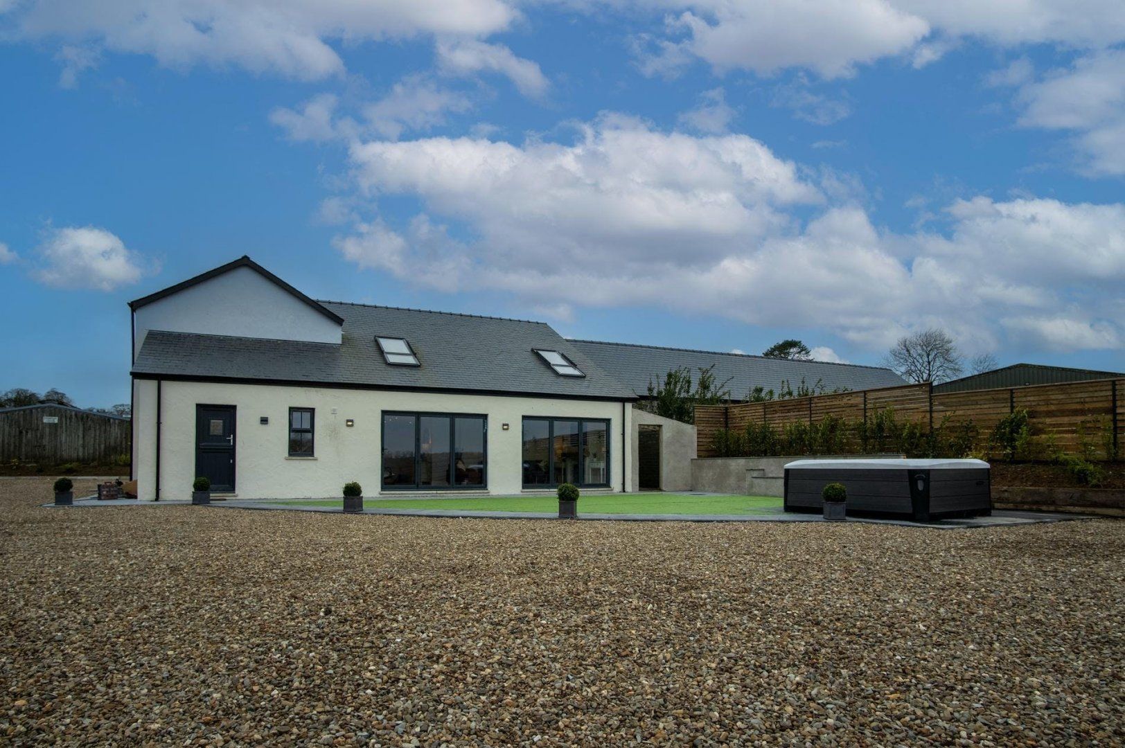 Located just outside the quaint Pembrokeshire town of Narberth – this modern farmhouse offers a secluded stay in the Welsh countryside that still remains close by to the local amenities. With a private hot tub to retreat to after a day of exploring the local cafes, shops and pubs within walking distance – the house is an inviting spot to socialise come day or night. Framing green views over the surrounding landscape, bi-fold doors open up the living area to the garden and the fresh country air here. Meanwhile, modern home furnishings present a highly functional space dedicated to comfort.