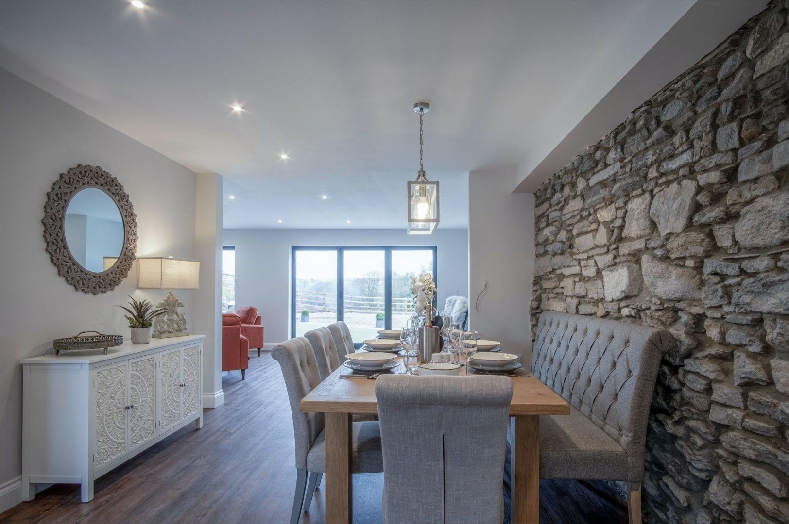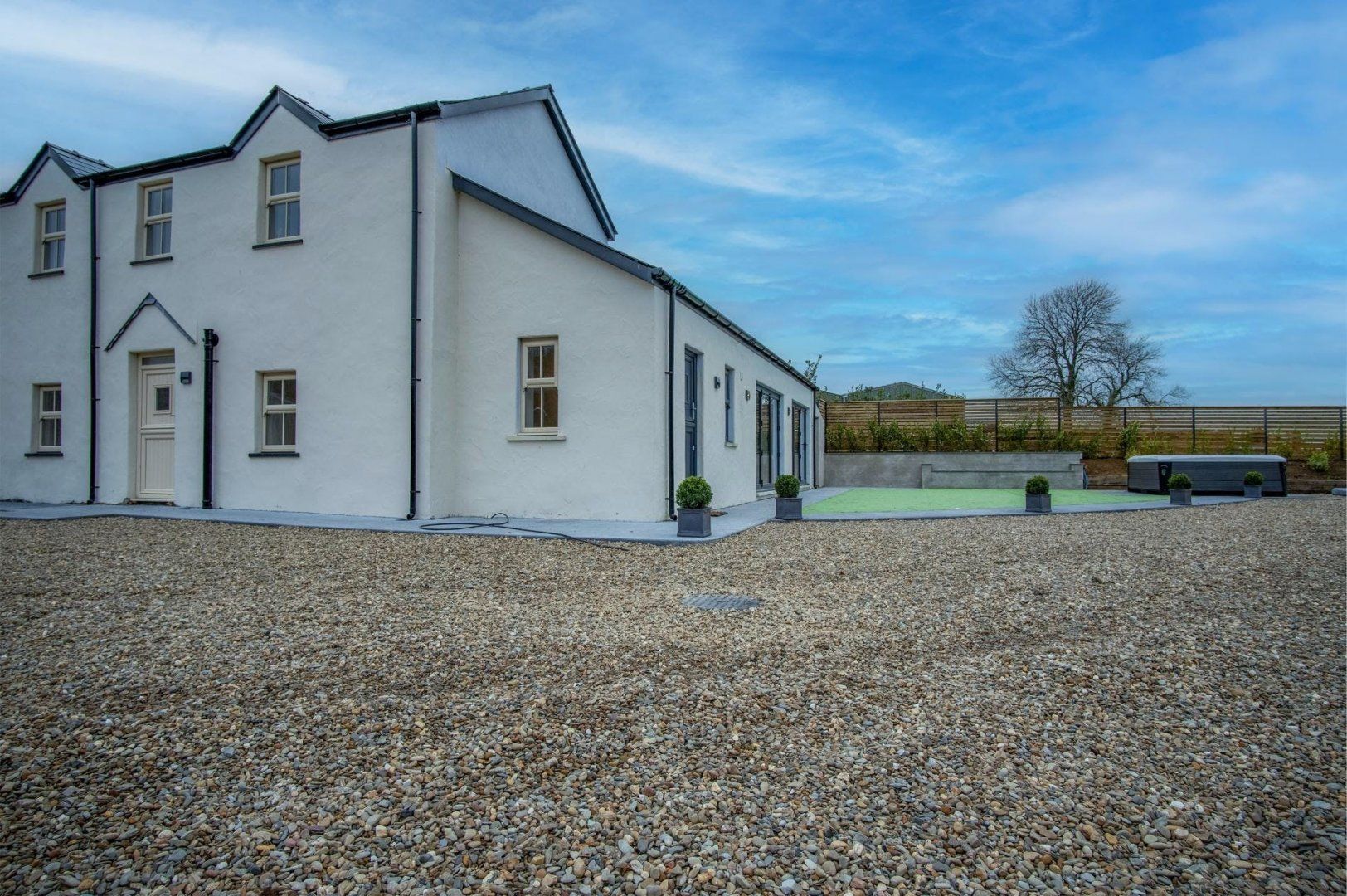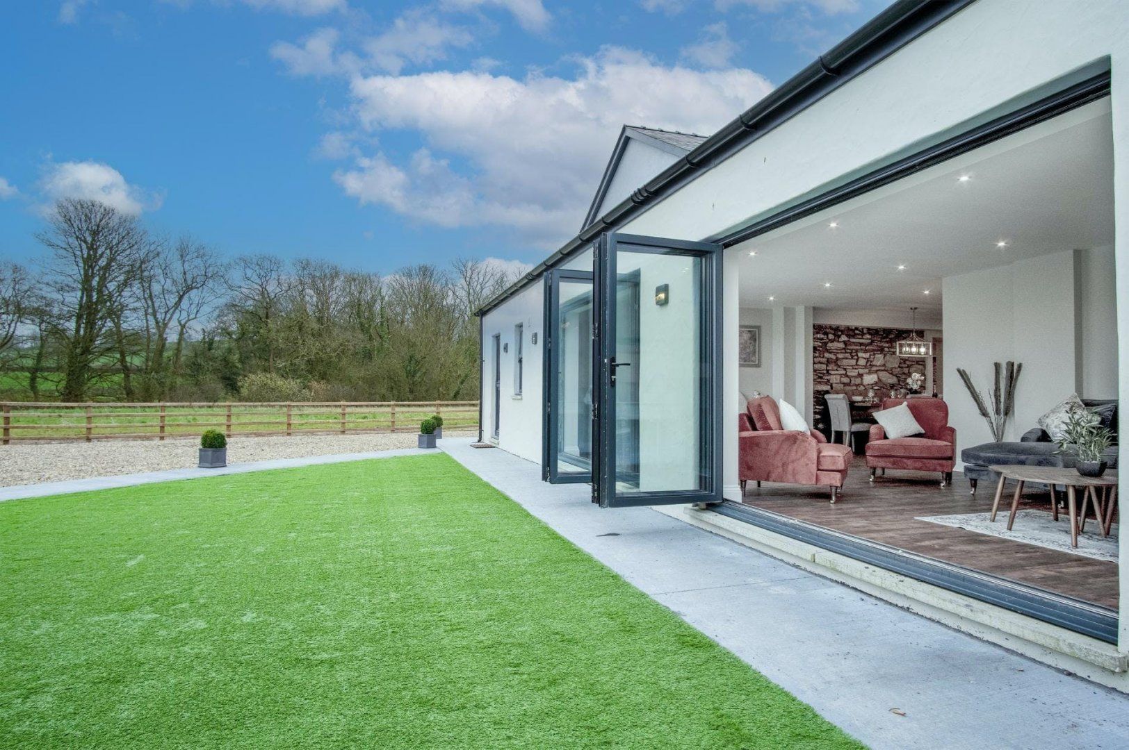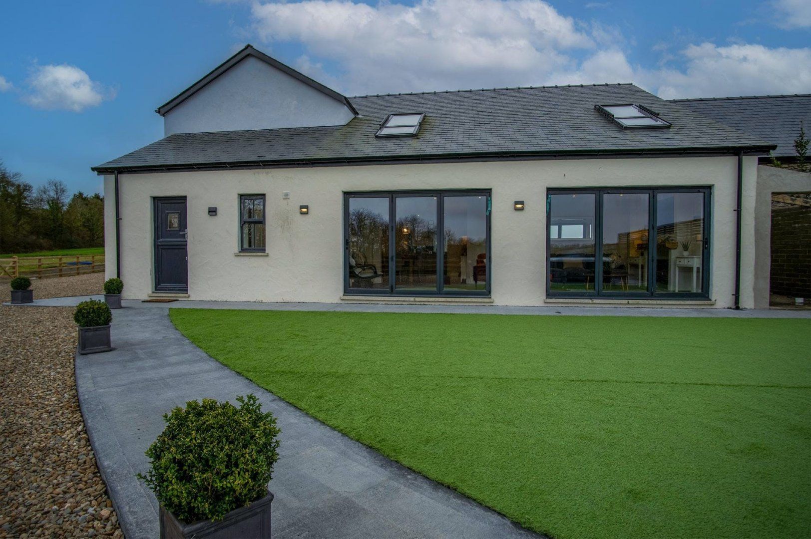 Located just outside the quaint Pembrokeshire town of Narberth – this modern farmhouse offers a secluded stay in the Welsh countryside that still remains close by to the local amenities. With a private hot tub to retreat to after a day of exploring the local cafes, shops and pubs within walking distance – the house is an inviting spot to socialise come day or night. Framing green views over the surrounding landscape, bi-fold doors open up the living area to the garden and the fresh country air here. Meanwhile, modern home furnishings present a highly functional space dedicated to comfort.