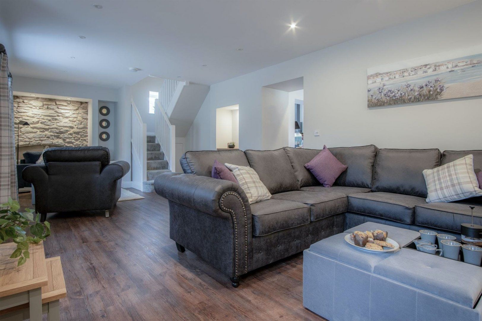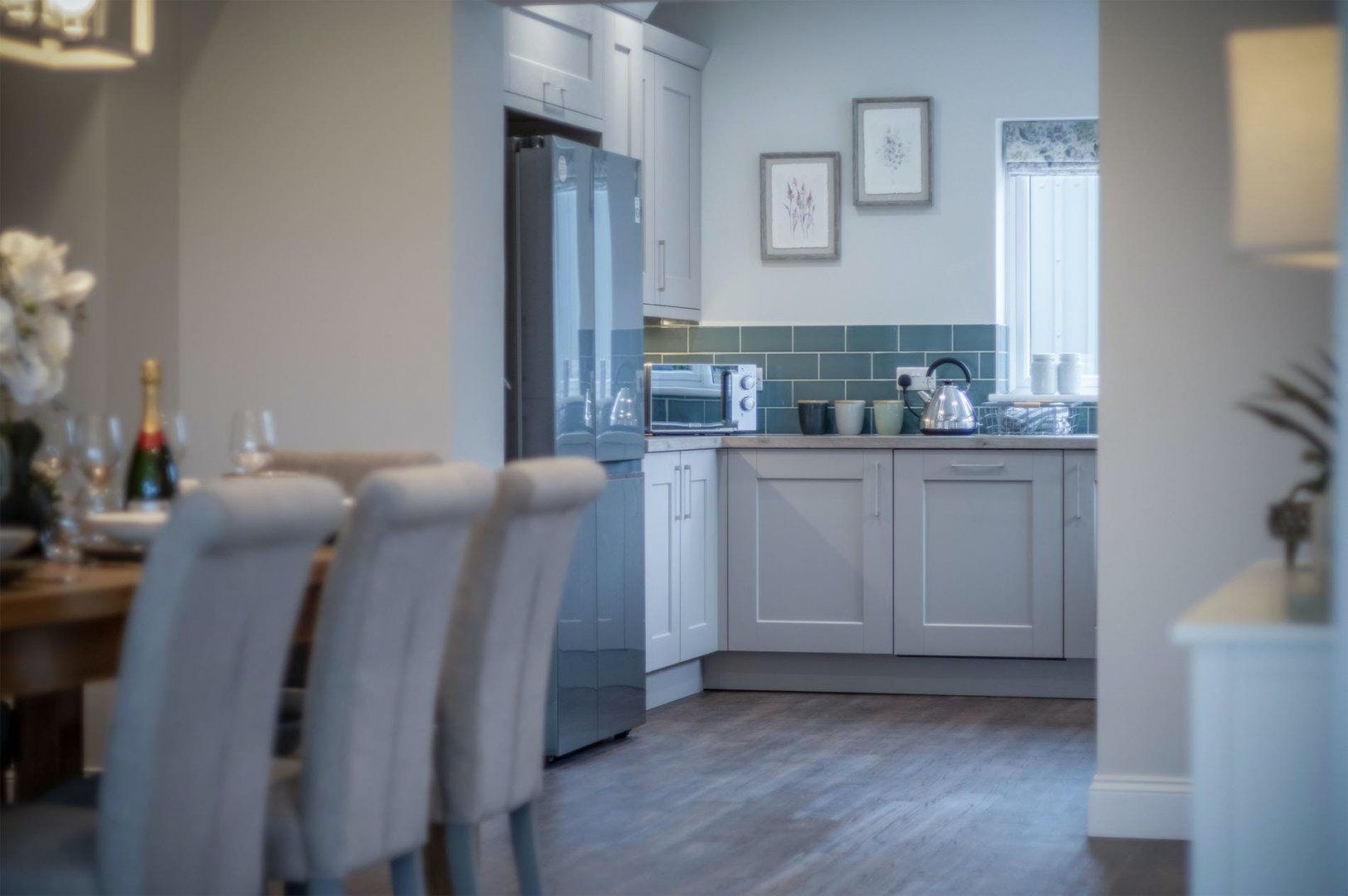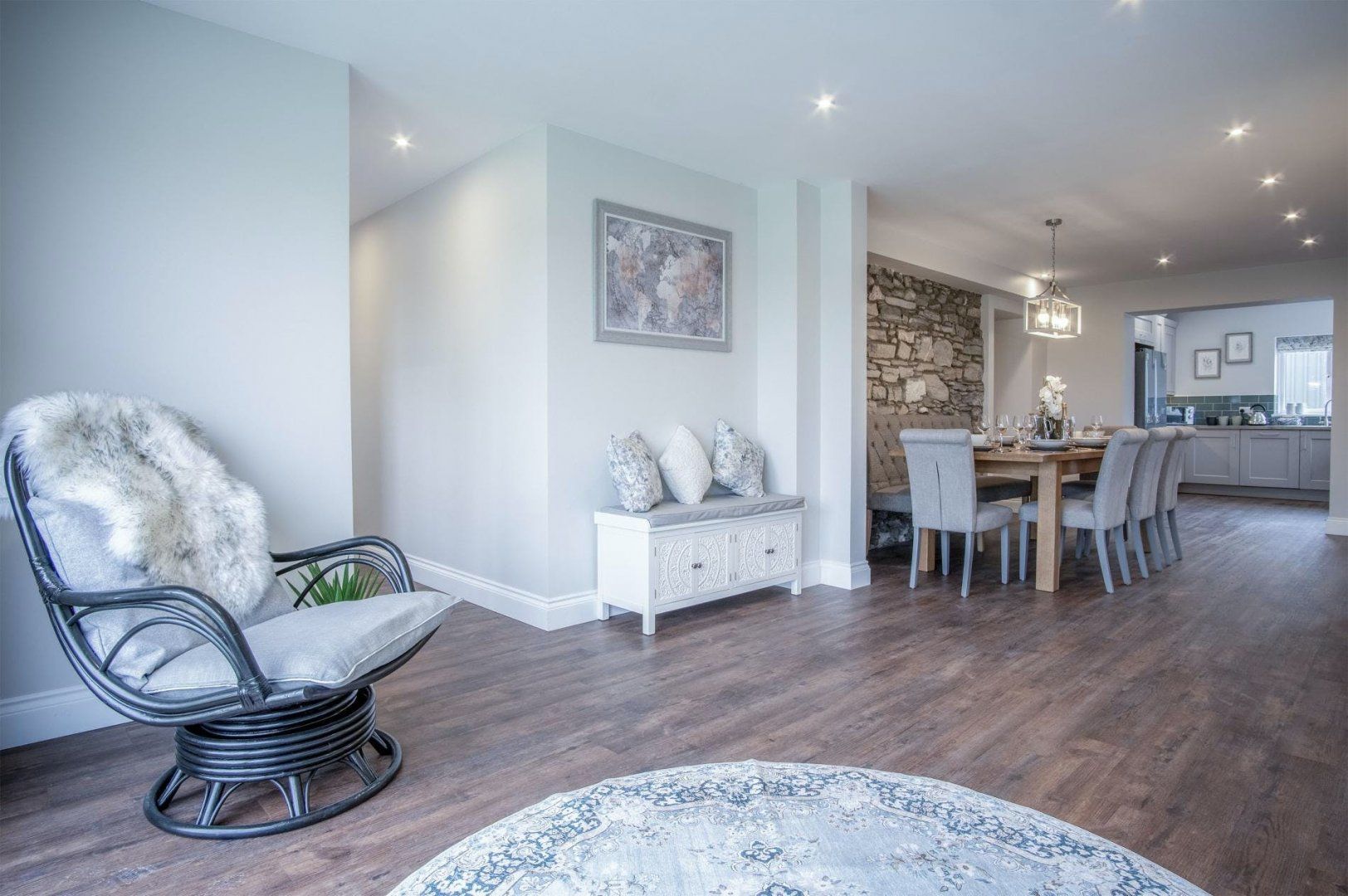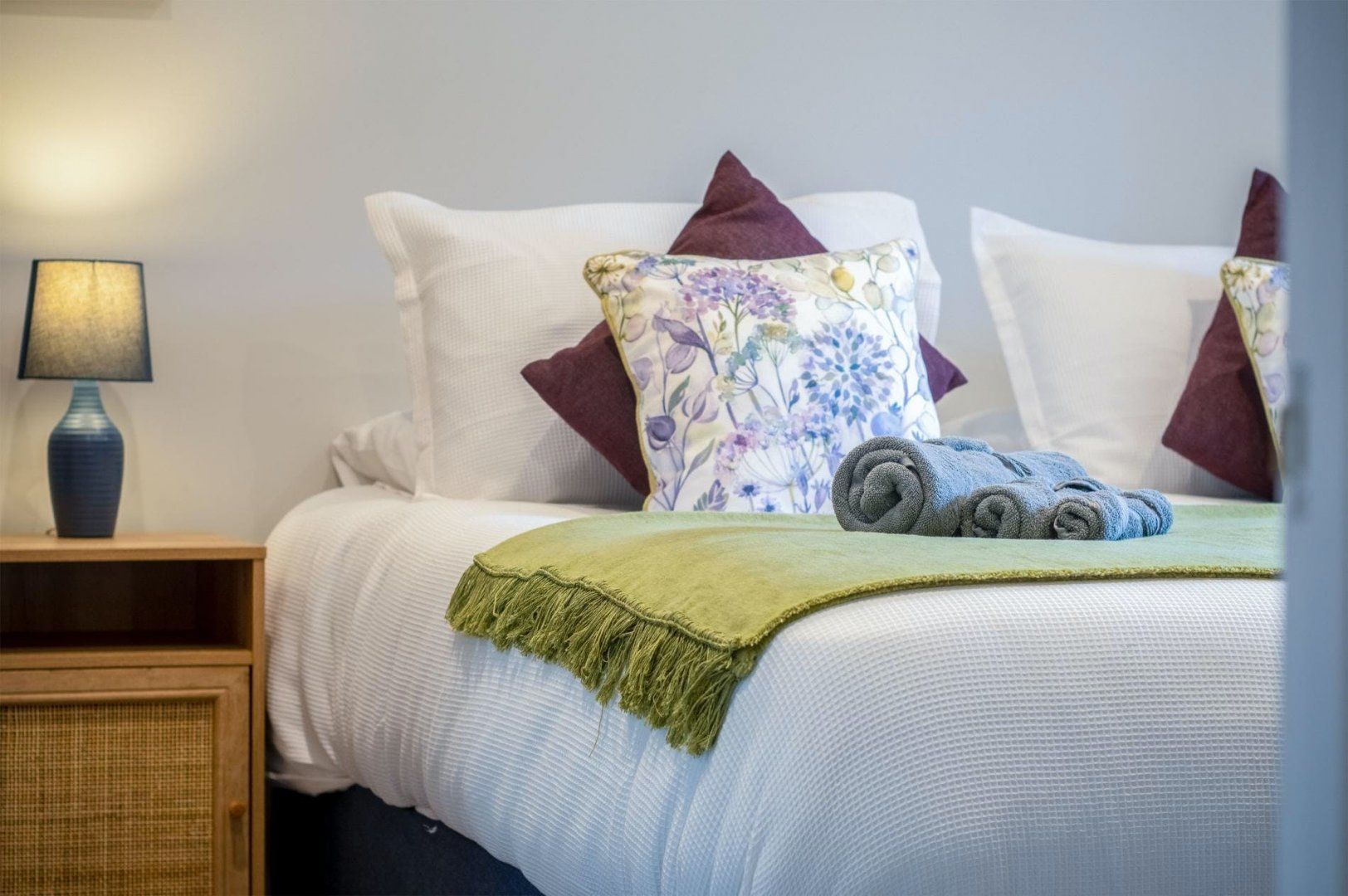 Located just outside the quaint Pembrokeshire town of Narberth – this modern farmhouse offers a secluded stay in the Welsh countryside that still remains close by to the local amenities. With a private hot tub to retreat to after a day of exploring the local cafes, shops and pubs within walking distance – the house is an inviting spot to socialise come day or night. Framing green views over the surrounding landscape, bi-fold doors open up the living area to the garden and the fresh country air here. Meanwhile, modern home furnishings present a highly functional space dedicated to comfort.
