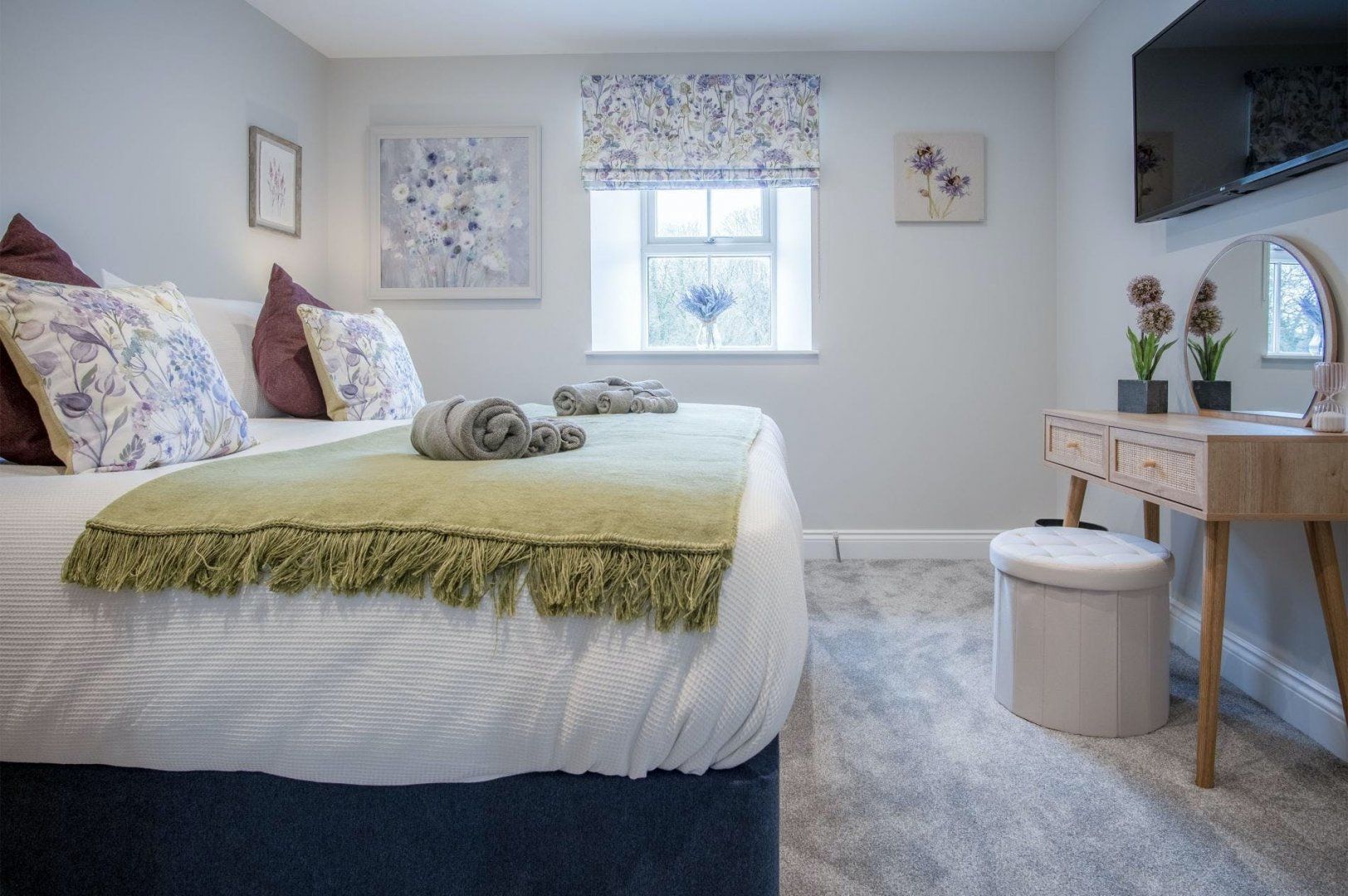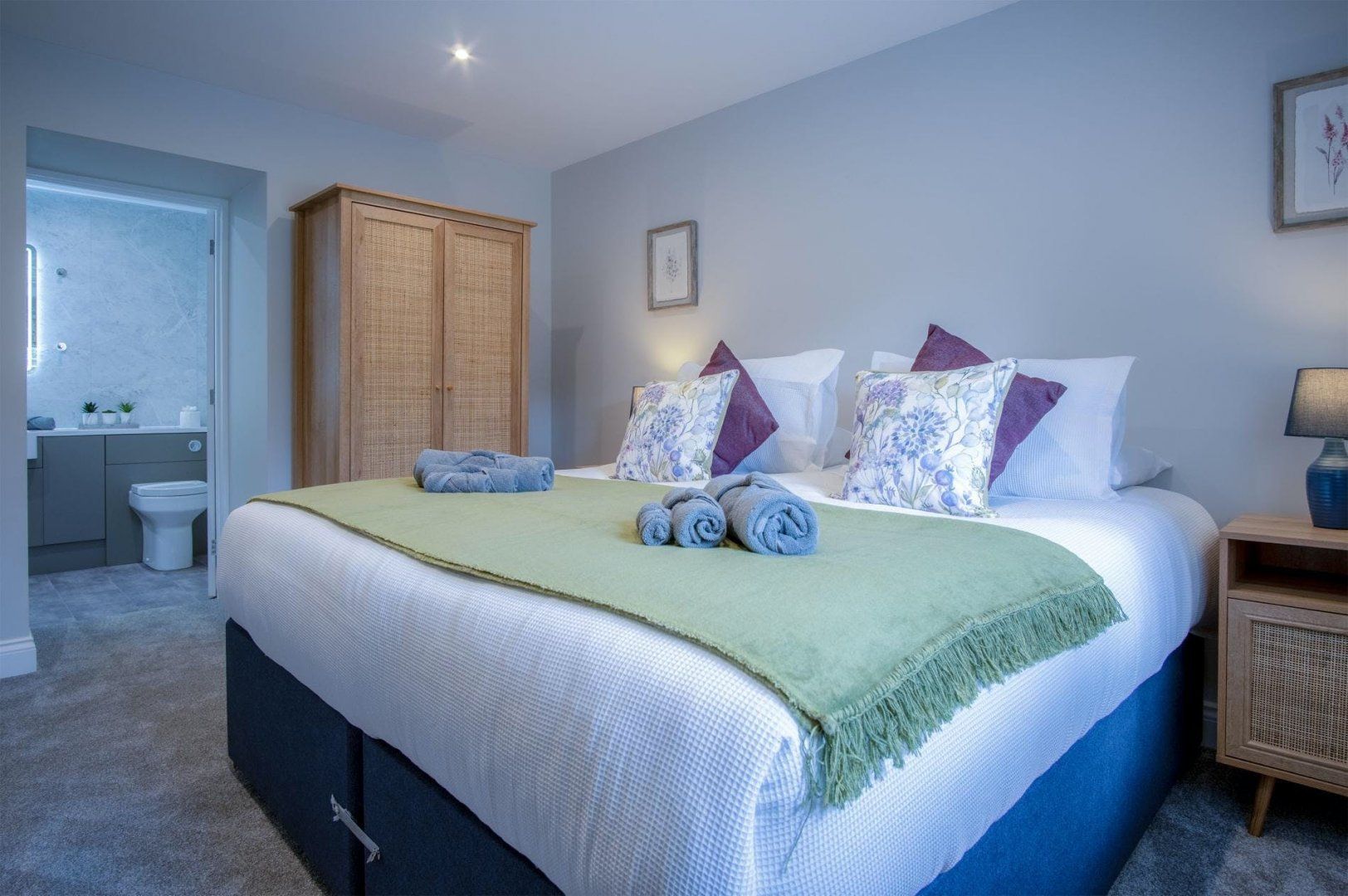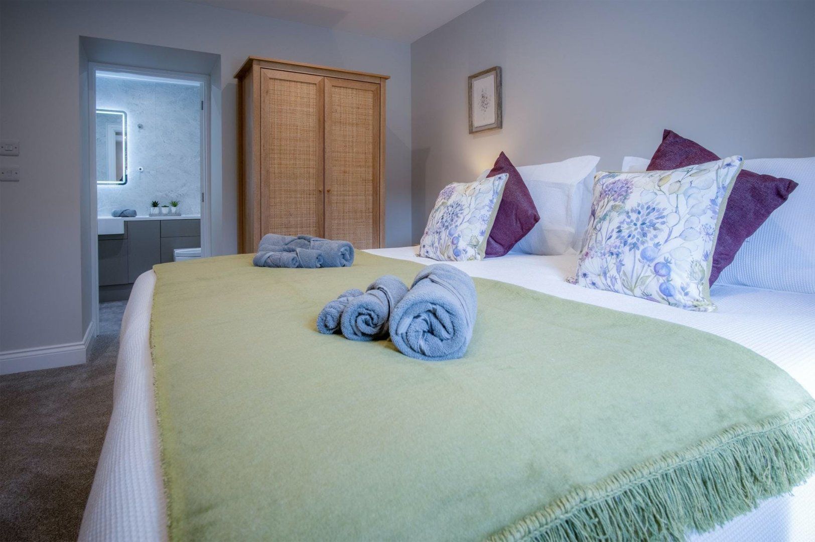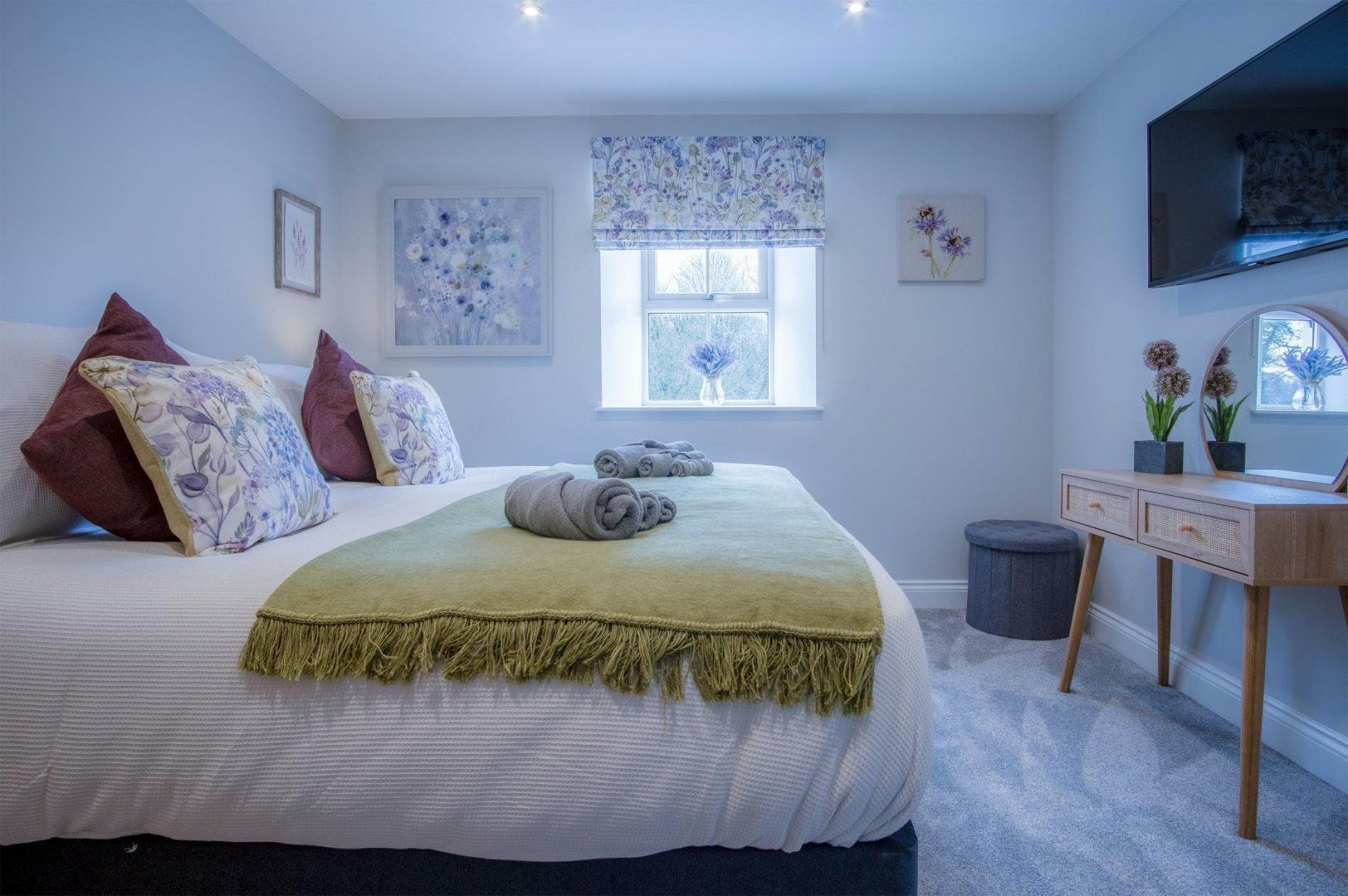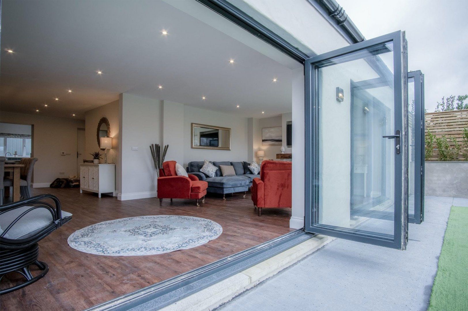 Located just outside the quaint Pembrokeshire town of Narberth – this modern farmhouse offers a secluded stay in the Welsh countryside that still remains close by to the local amenities. With a private hot tub to retreat to after a day of exploring the local cafes, shops and pubs within walking distance – the house is an inviting spot to socialise come day or night. Framing green views over the surrounding landscape, bi-fold doors open up the living area to the garden and the fresh country air here. Meanwhile, modern home furnishings present a highly functional space dedicated to comfort.
