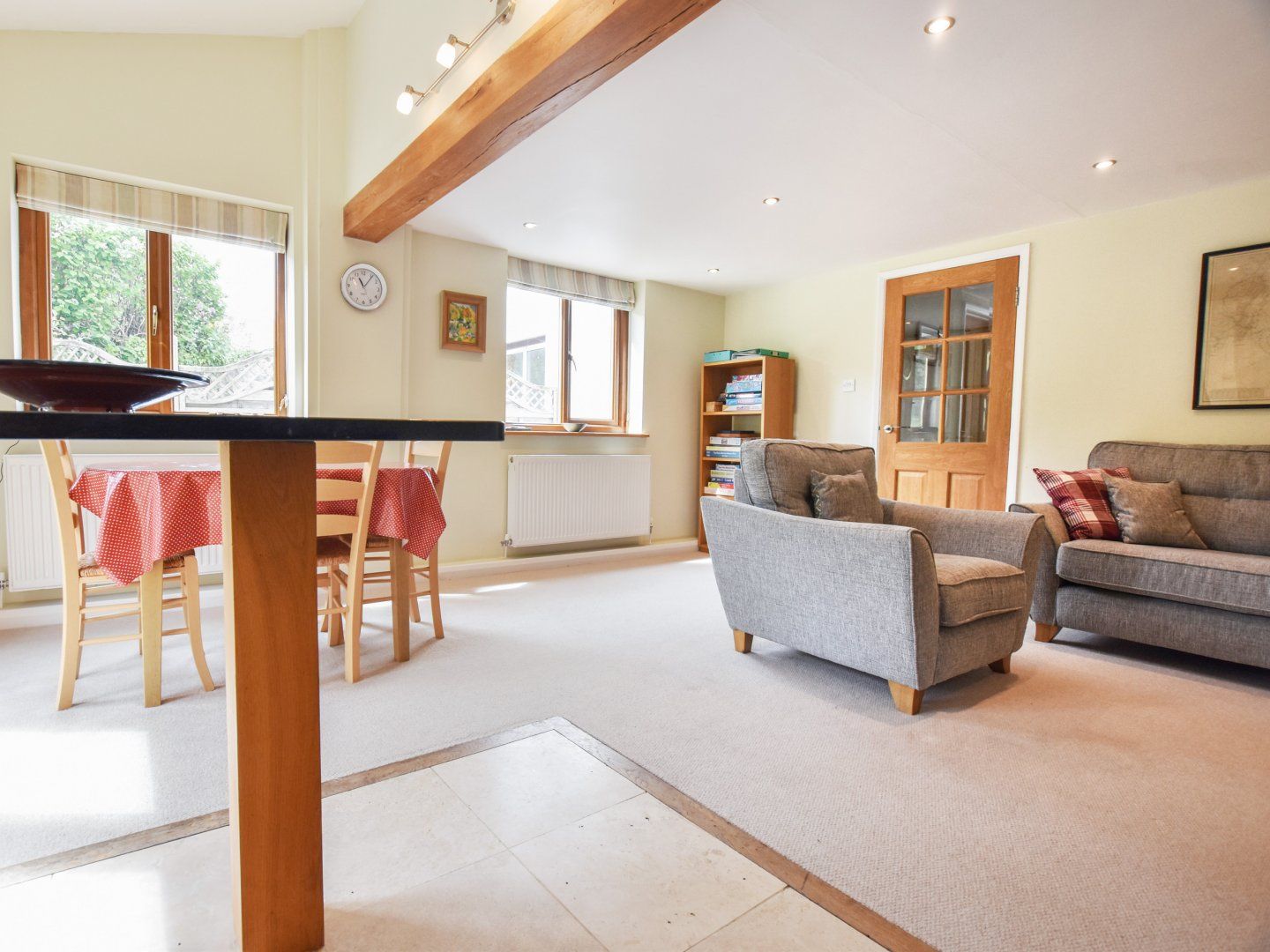 Accomodation Details Three bedrooms. 1 x Ground floor double (space limited in ground floor double bedroom so ideal for one guest). 1 x Ground floor twin. 1 x First floor king size double. First floor reading room. Ground floor bathroom with bath, shower over, basin WC. Open plan living area with kitchen, dining and sitting area