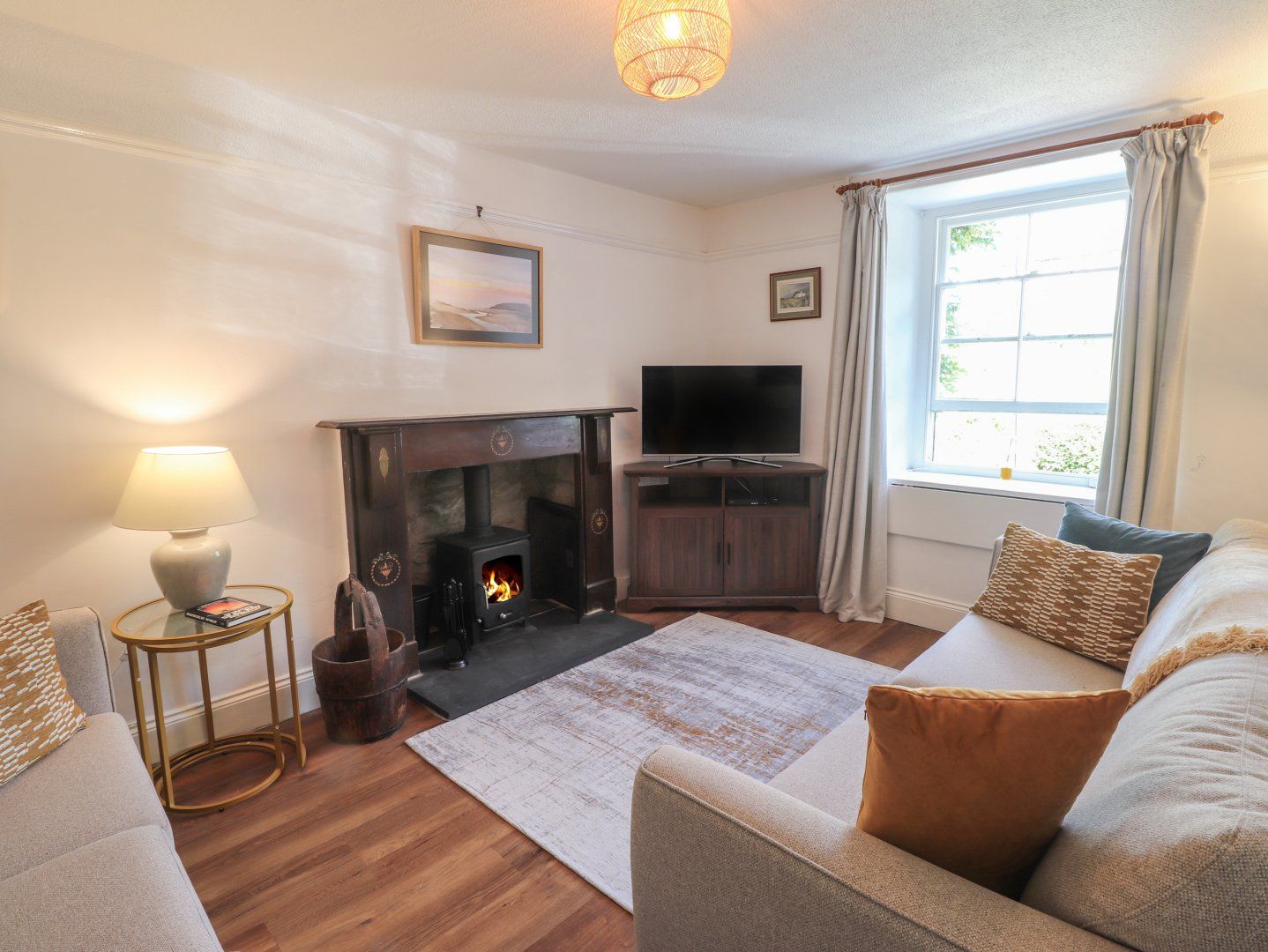 Amenities Gas central heating. Electric oven and hob, microwave, fridge/freezer, dishwasher and washing machine. Smart TV & Blue-Ray DVD player, DVDs and WiFi. Fuel, power and starter for woodburning stove inc. in rent. Electric Vehicles: This property does not have a charge point for electric vehicles and charging from within the property is prohibited. Bed linen and towels inc. in rent. Please bring your own beach towels. Highchair and travel cot available on request. Off-road parking for two cars opposite (recently refurbished). Elevated garden and views over the countryside to Newport Beach. The tiered garden is accessed by steps with gated fencing, please take care and supervise children at all times. Two well behaved dogs welcome (additional charge applies), dogs allowed downstairs only (stairgate to upstairs) and not on soft furnishings. Sorry, no smoking. Shop and pub 0.4 miles and beach 0.6 miles. Note: There is no BBQ but you are more than welcome to bring your own.
