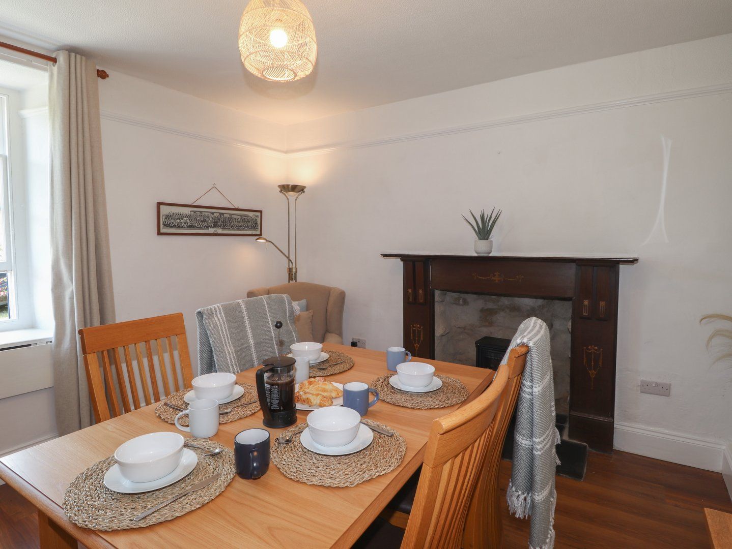 Accomodation Details Three bedrooms. 1 x Double. 1 x Twin. 1 x Single. Shower room with walk-in shower, basin and WC. Kitchen (there is one step up into the kitchen, please take care). Dining room. Sitting room with woodburning stove. Please take care with original landing bannister
