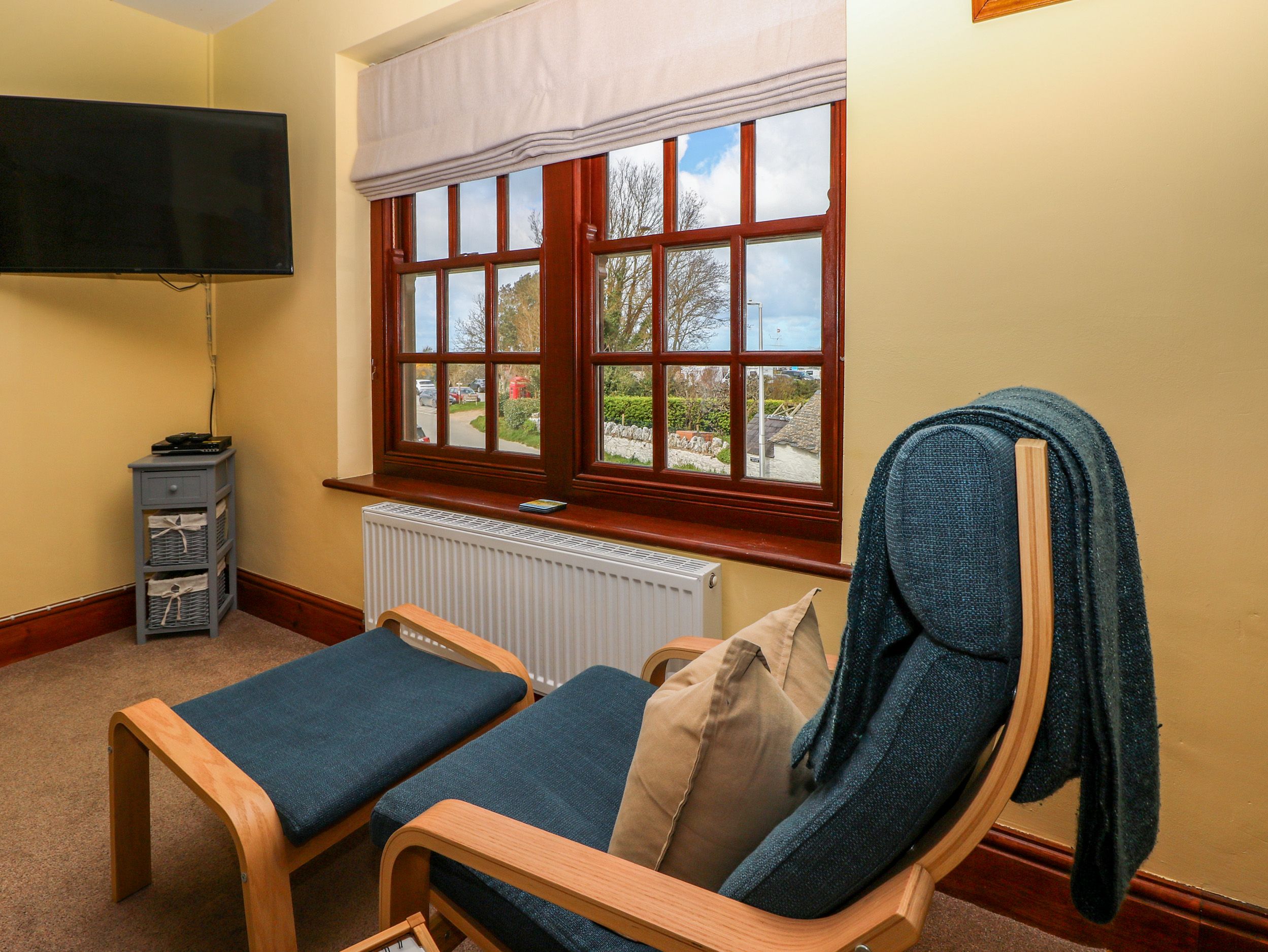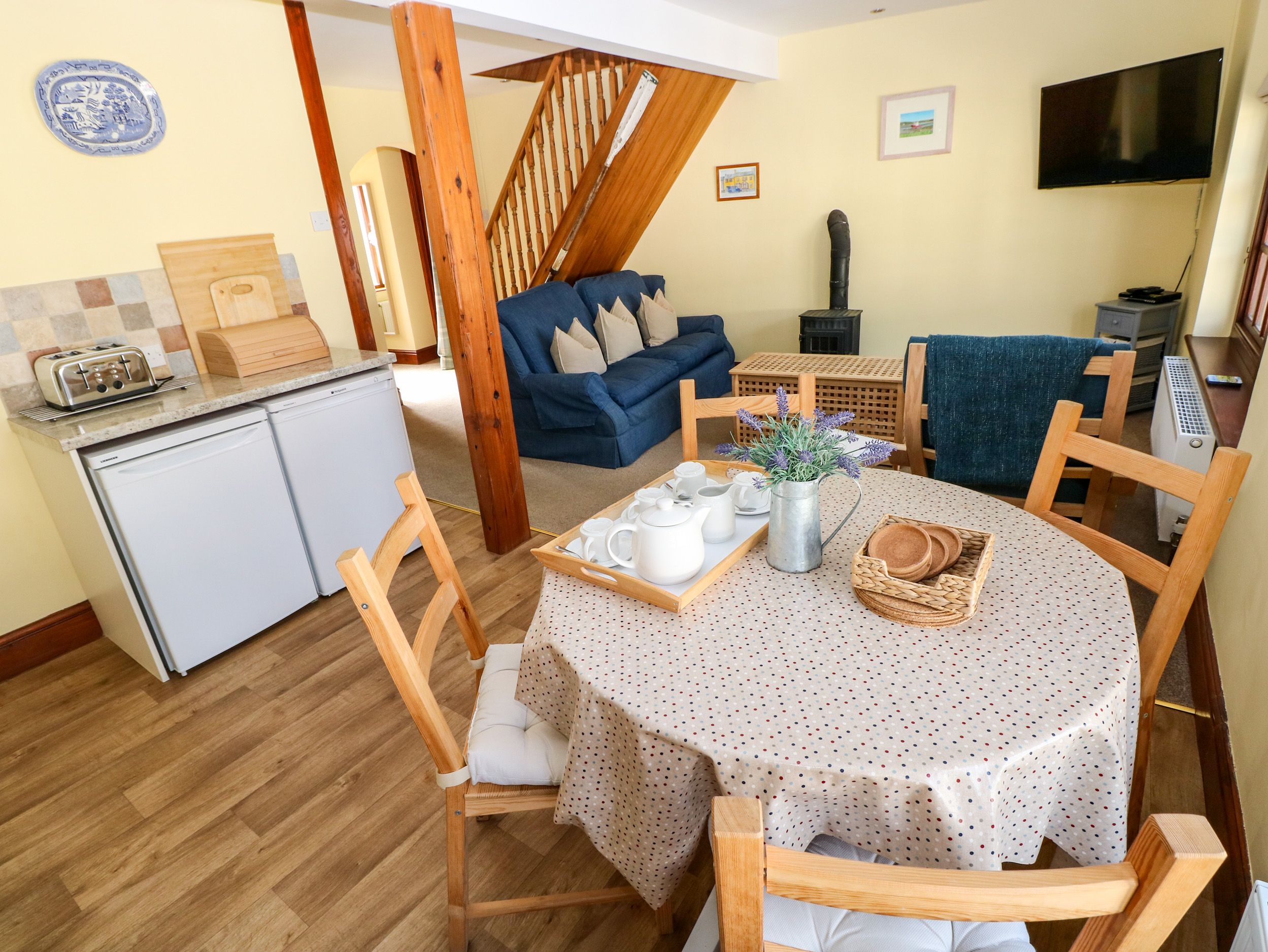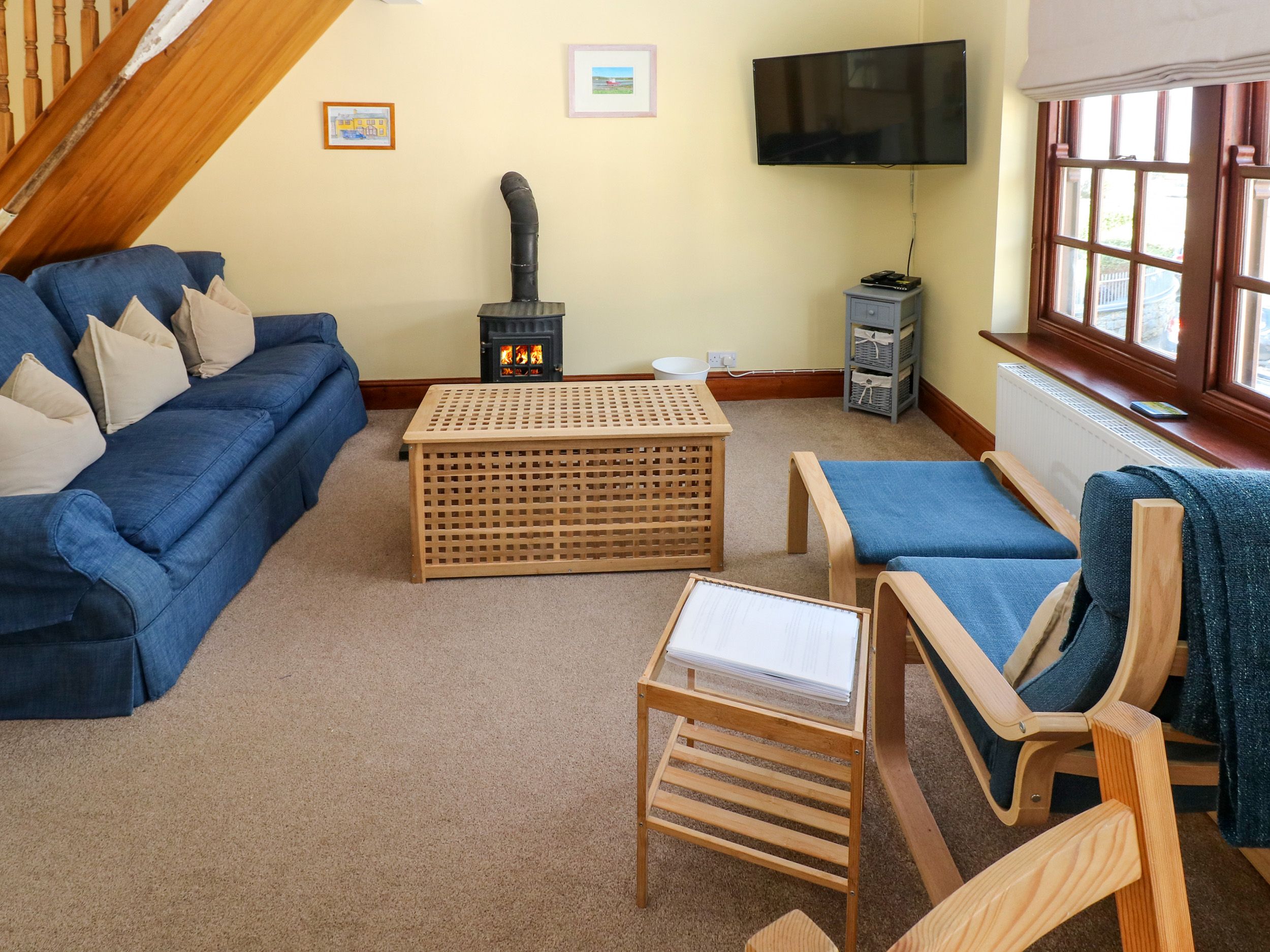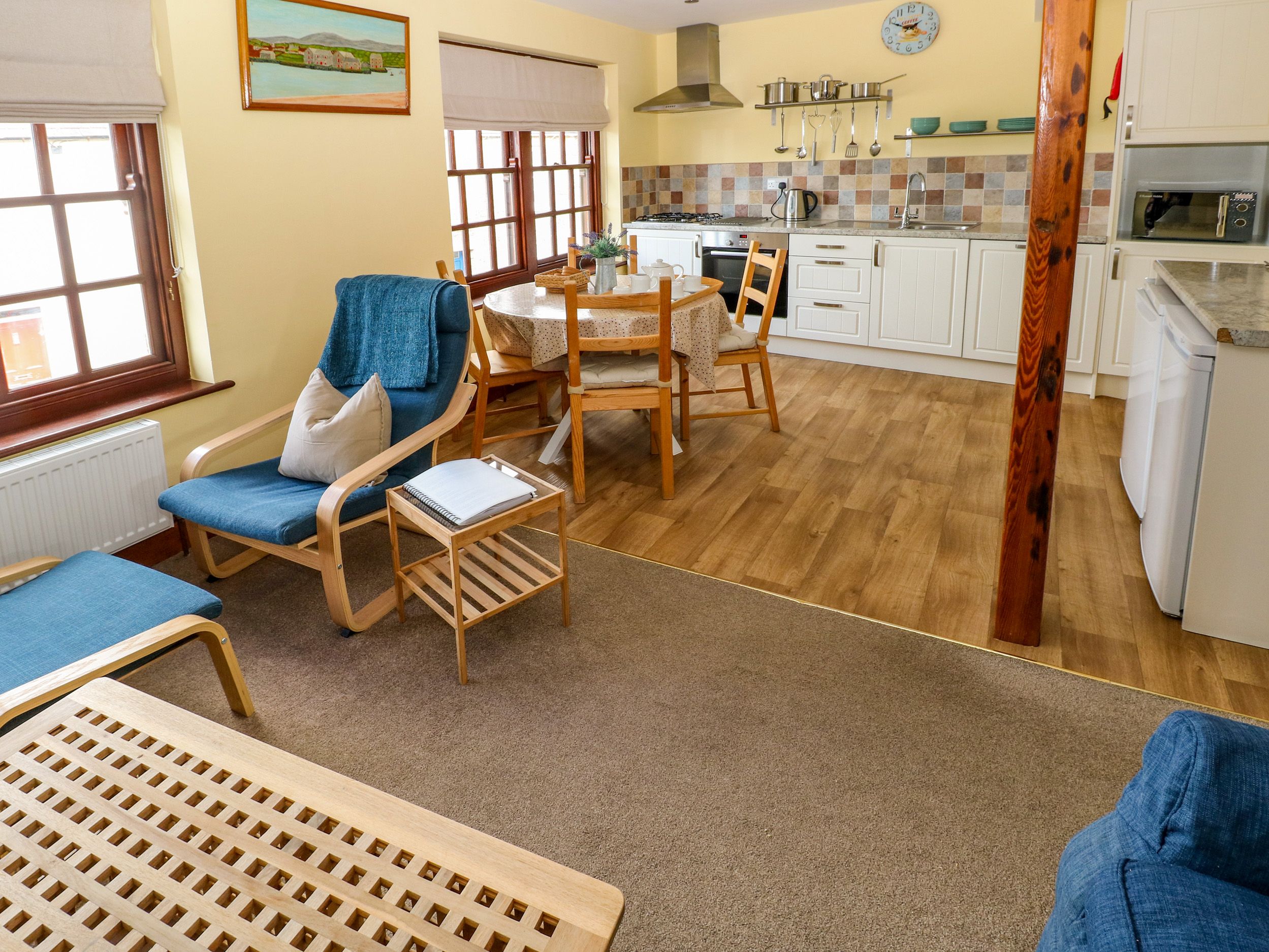 Accomodation Details Over three floors. Two bedrooms: 1 x first-floor king-size, 1 x second-floor king-size (zip/link, can be twin on request). First-floor shower room with walk-in shower, basin, heated towel rail, and WC. First-floor open-plan living space with kitchen, dining area, and sitting area with gas fire