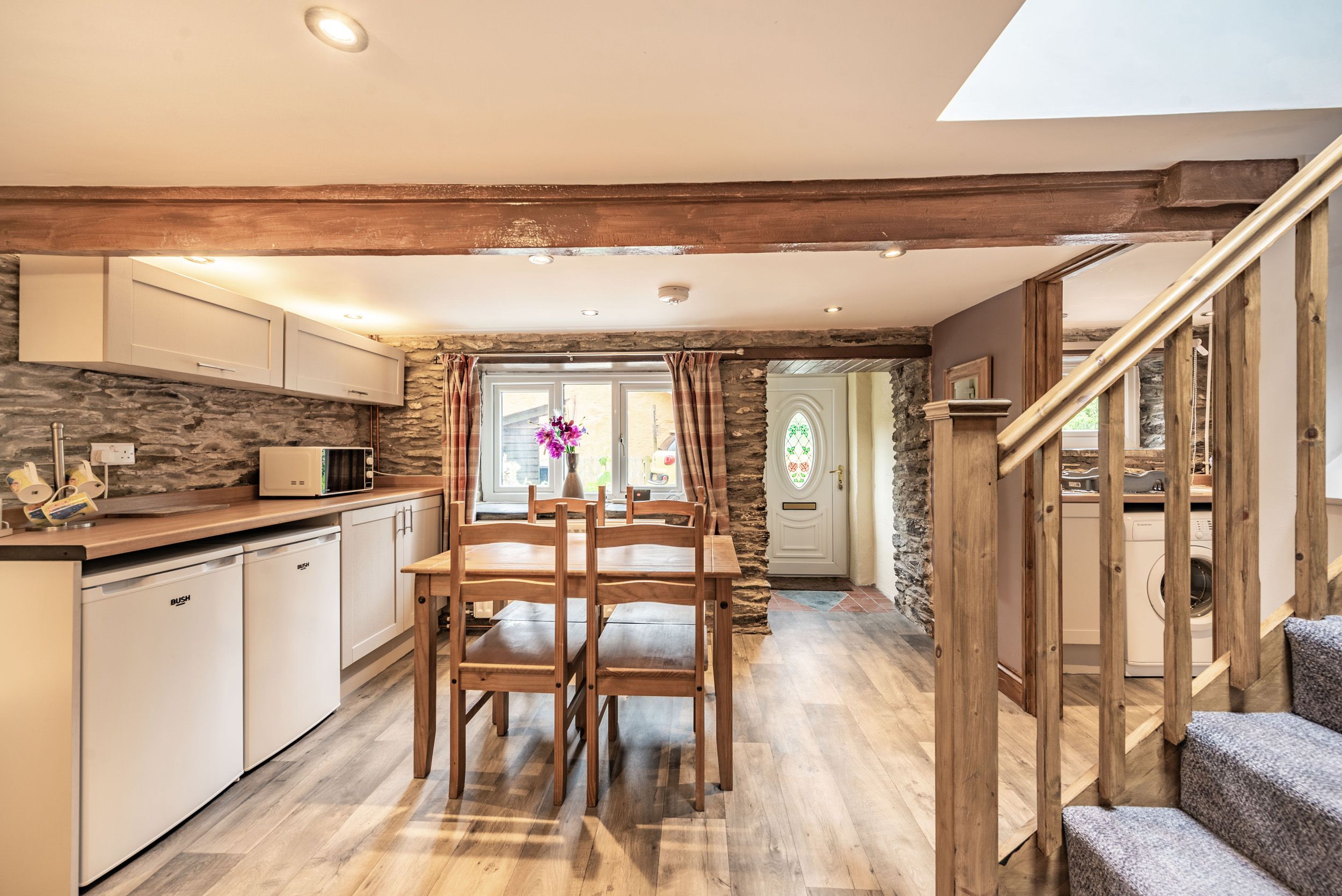 Amenities Oil-fired central heating. Electric oven and hob, microwave, fridge/freezer, washing machine, dishwasher, TV and WiFi. Fuel and power inc. in rent. Bed linen and towels inc. in rent. Off-road parking for three cars. Private enclosed garden located to the right side of the property. Bandstand. Sheltered decking area with seating. Two well-behaved pets welcome. Sorry, no smoking. Shop 3.6 miles, pub 1.6 miles. Note: Low beam in kitchen/diner, and limited head room access to cloakroom, please mind your head. Note: Internal steps throughout, please take care. Note: The two bedrooms share the en-suite bathroom in the double bedroom. Travel cot and high chair available upon request.