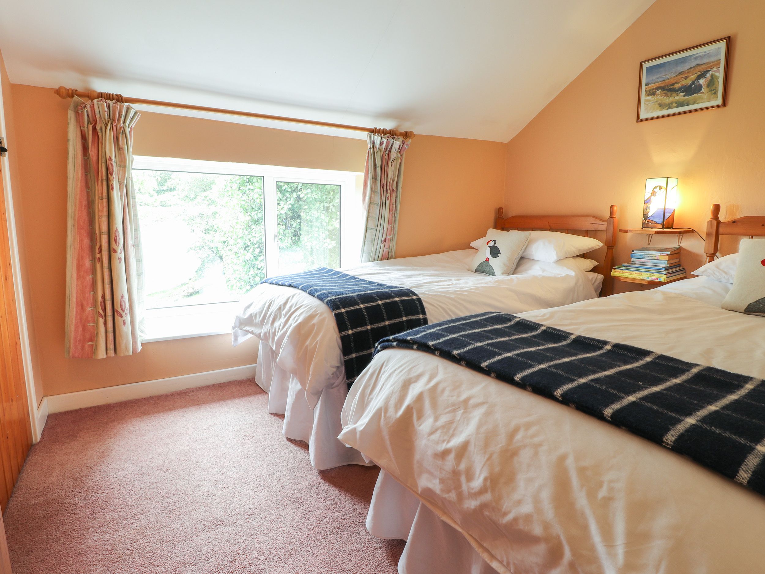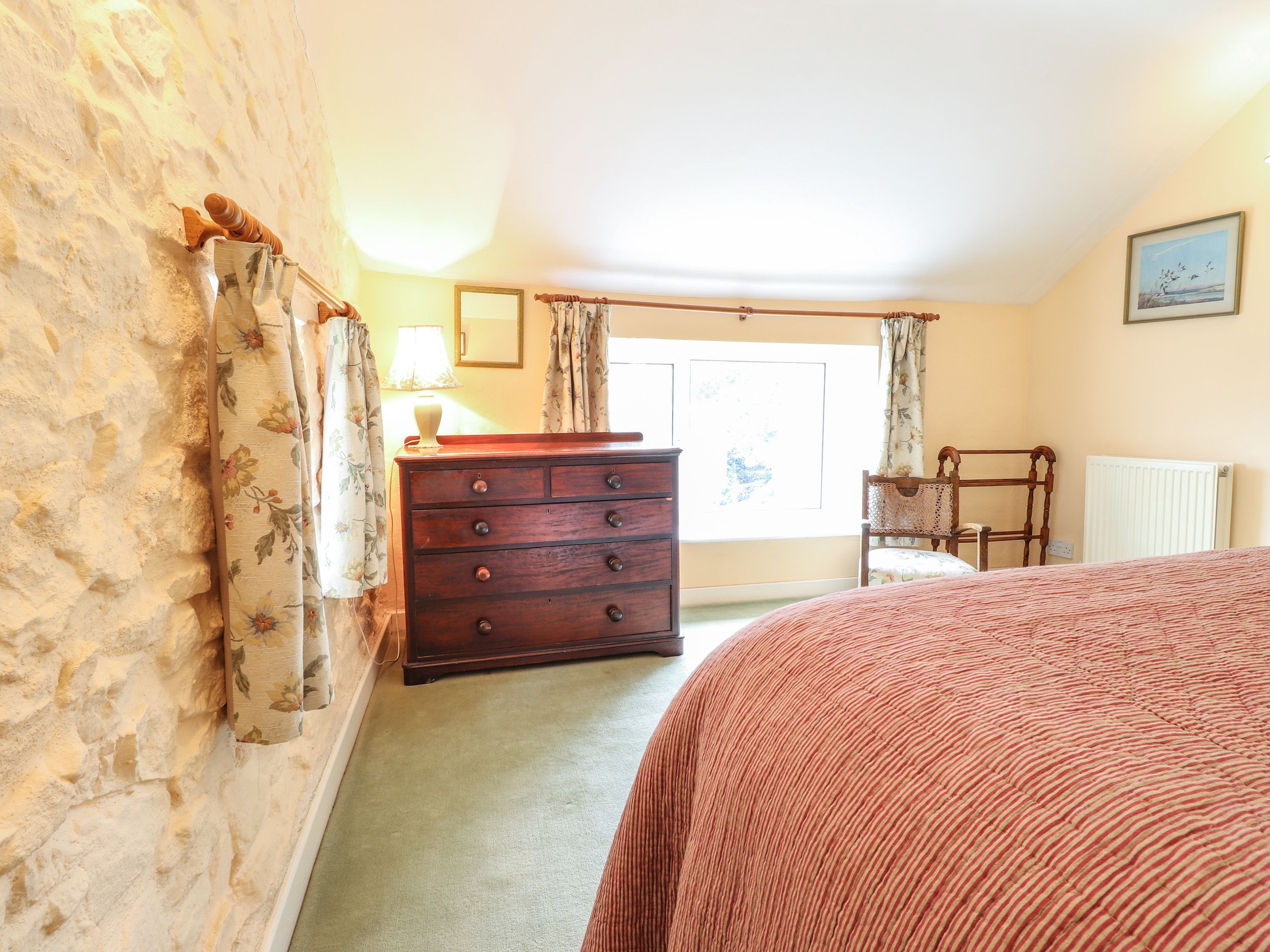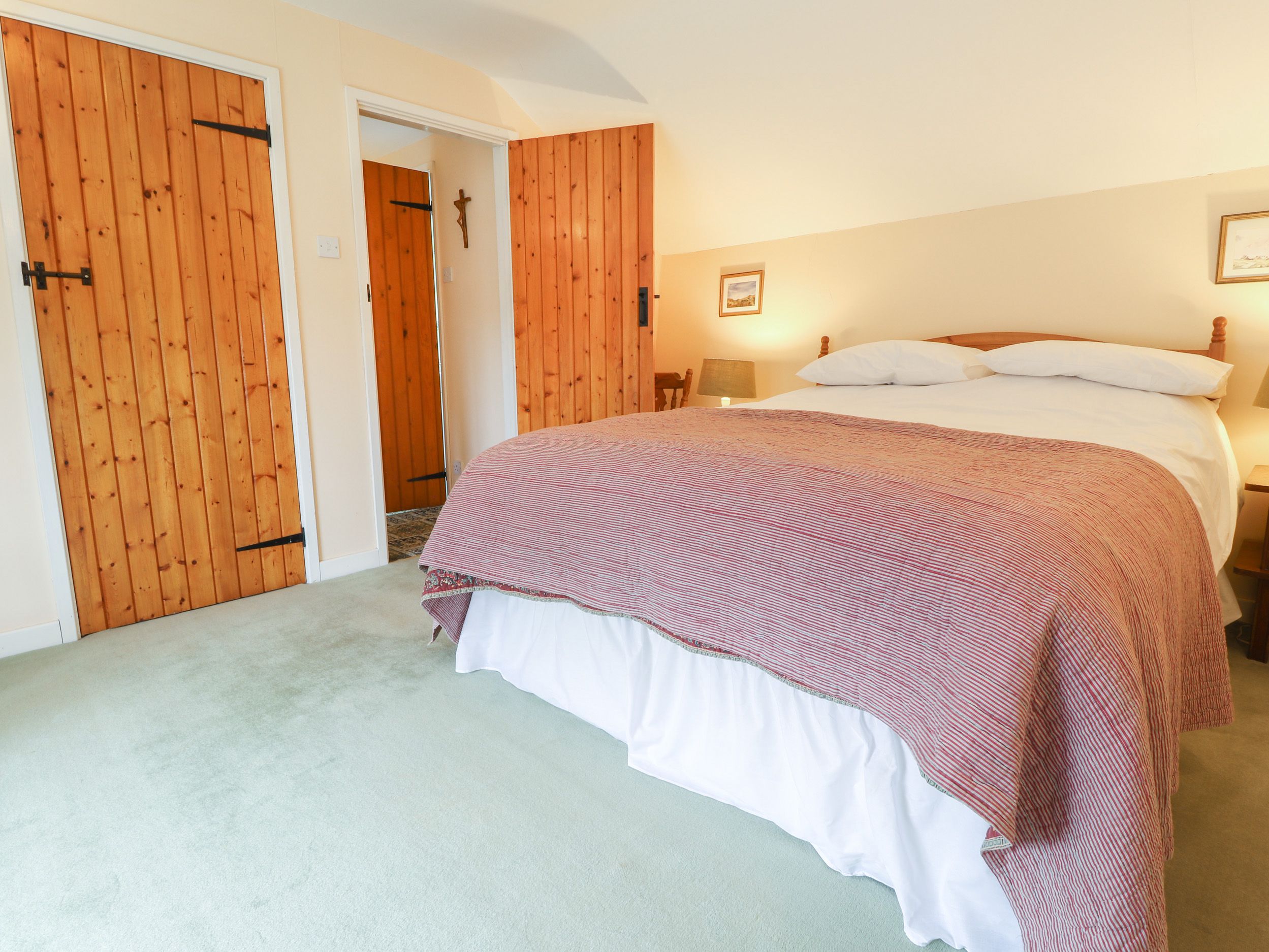 Accomodation Details Three bedrooms. 1 x King-size. 1 x Ground-floor double. 1 x Twin. Ground floor bathroom with bath, shower over, basin, heated towel rail and WC. 1st floor cloakroom. Kitchen/diner. Sitting room with open fire. Internal steps leading to the kitchen and ground floor bedroom, please take care