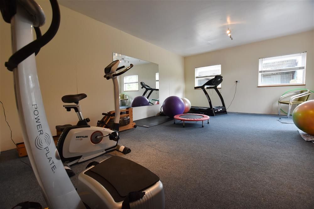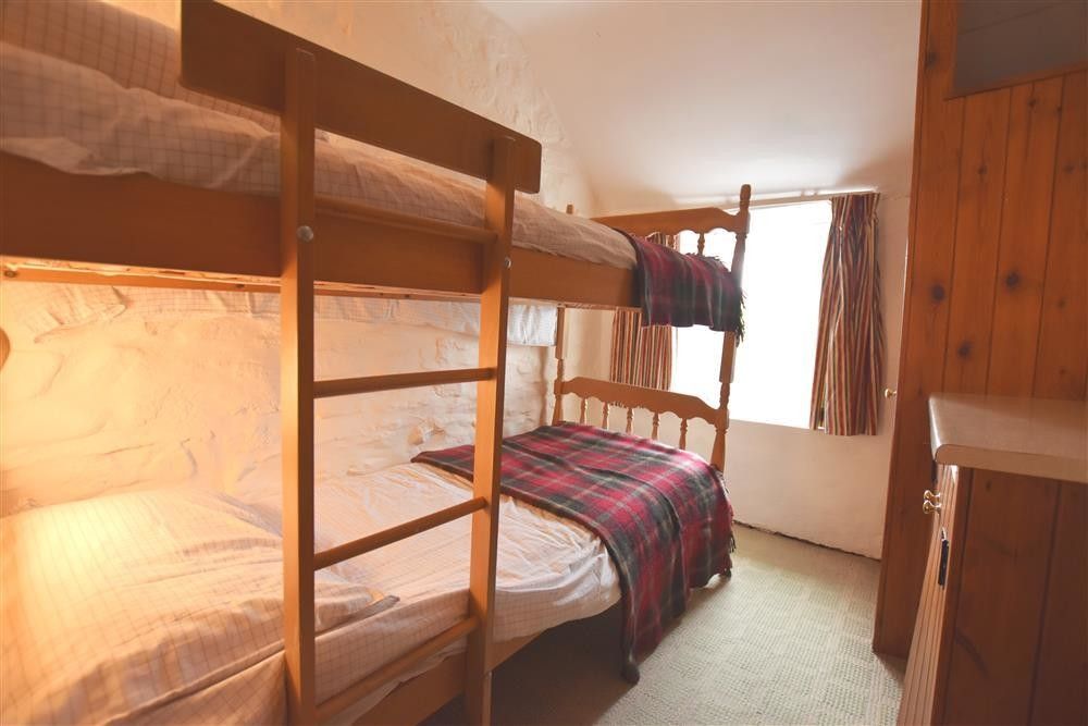 Accomodation Details Four bedrooms. 1 x King size. 1 x Double. 1 x Twin. 1 x Children’s bunks. Ground floor bathroom with tiled floor, freestanding roll top bath with hand held shower, hand basin and WC. First floor shower room with shower cubicle, WC and hand basin. Kitchen. Dining room. Sitting room with stone inglenook fireplace and welcoming wood burning stove (a complimentary basket of logs is provided and more are available on an honesty basis - £3 per large basket). TV room. Shared gym