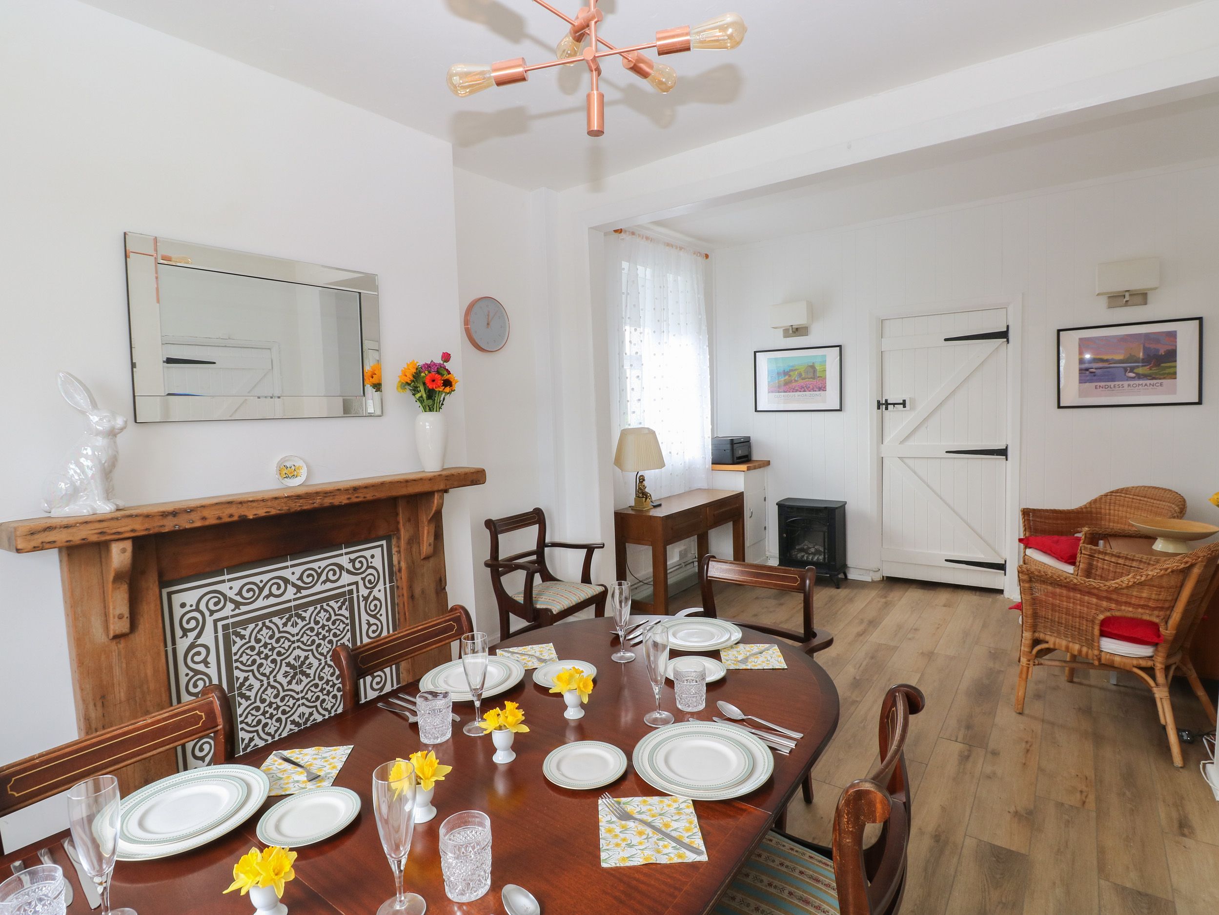 Amenities Central heating. Gas oven and hob, kettle, toaster, microwave, fridge, freezer, washing machine, tumble dryer, dishwasher. TV has Netflix, Prime, all internet channels and plays DVDs. Selection of DVDs available. WiFi. Fuel and power inc. in rent. Electric Vehicles: This property does not have a charge point for electric vehicles and charging from within the property is prohibited. Bed linen and towels inc. in rent. Travel cot and highchair available. Roadside parking available on a first-come, first-served basis. Enclosed rear patio with furniture. Two well-behaved pets welcome (additional charge applies), dogs allowed downstairs only. Sorry, no smoking. Shop and pub 0.1 miles.