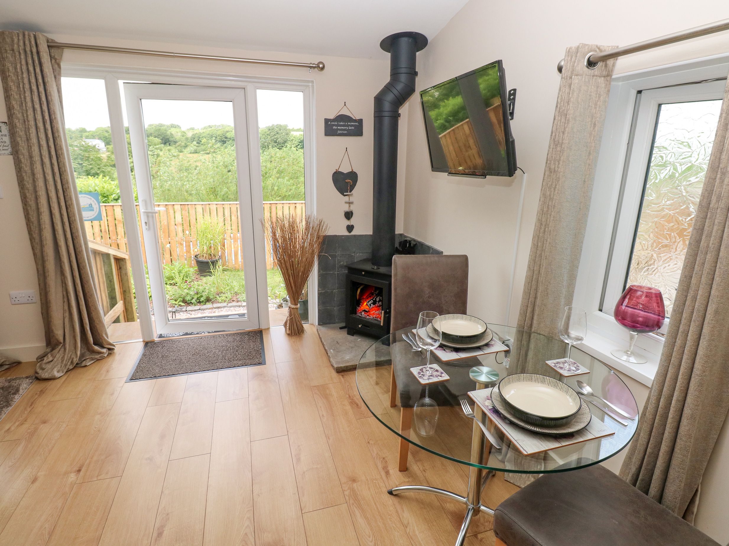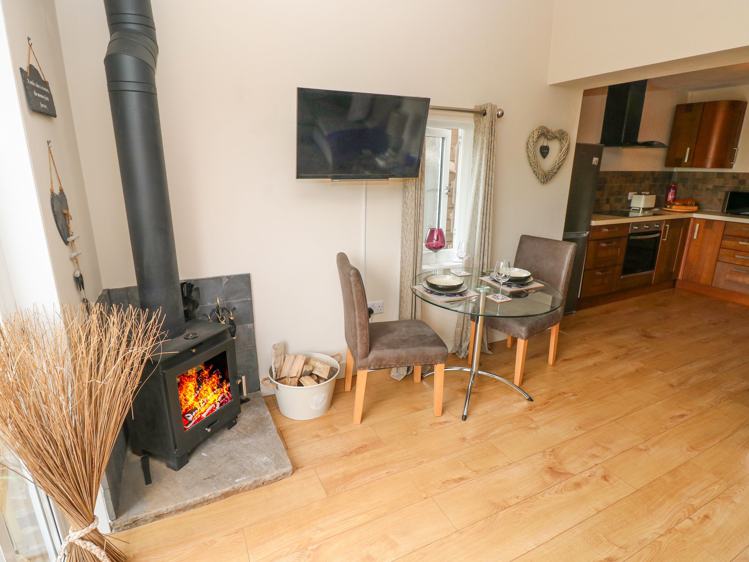 Accomodation Details One king-size bedroom. Shower room with walk-in shower, basin, and WC. Open-plan living area with kitchen, dining area and sitting area with woodburning stove