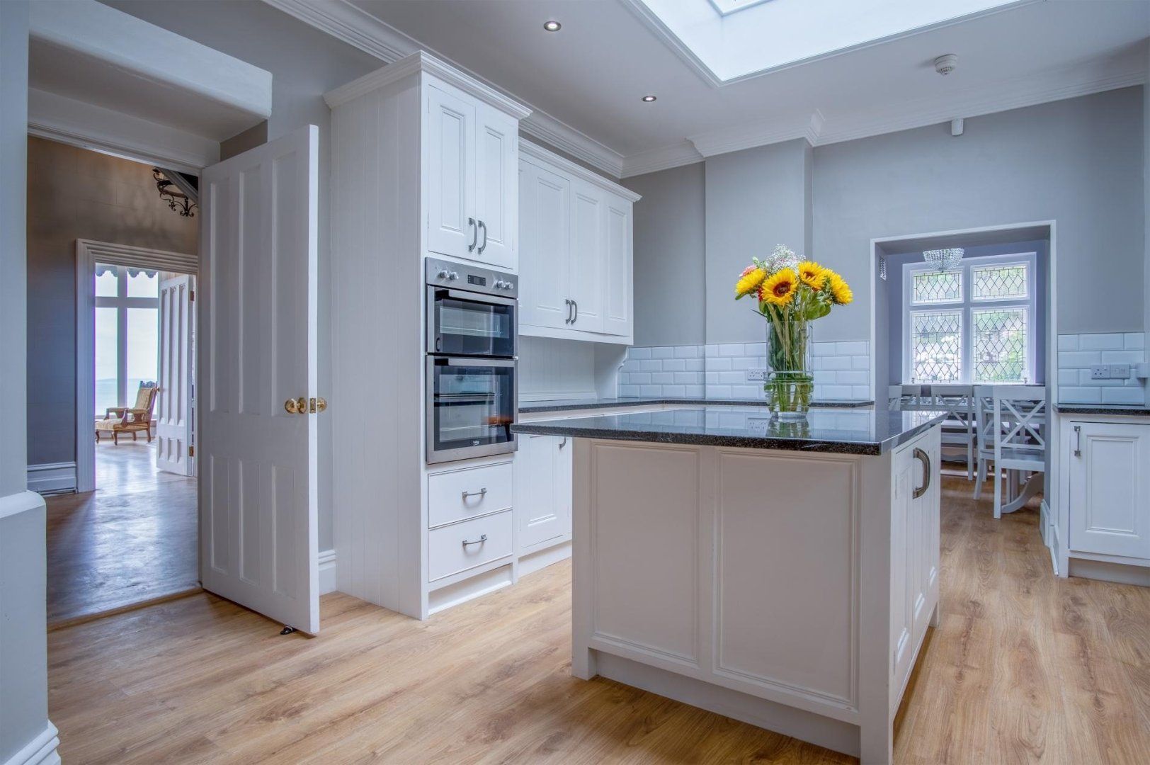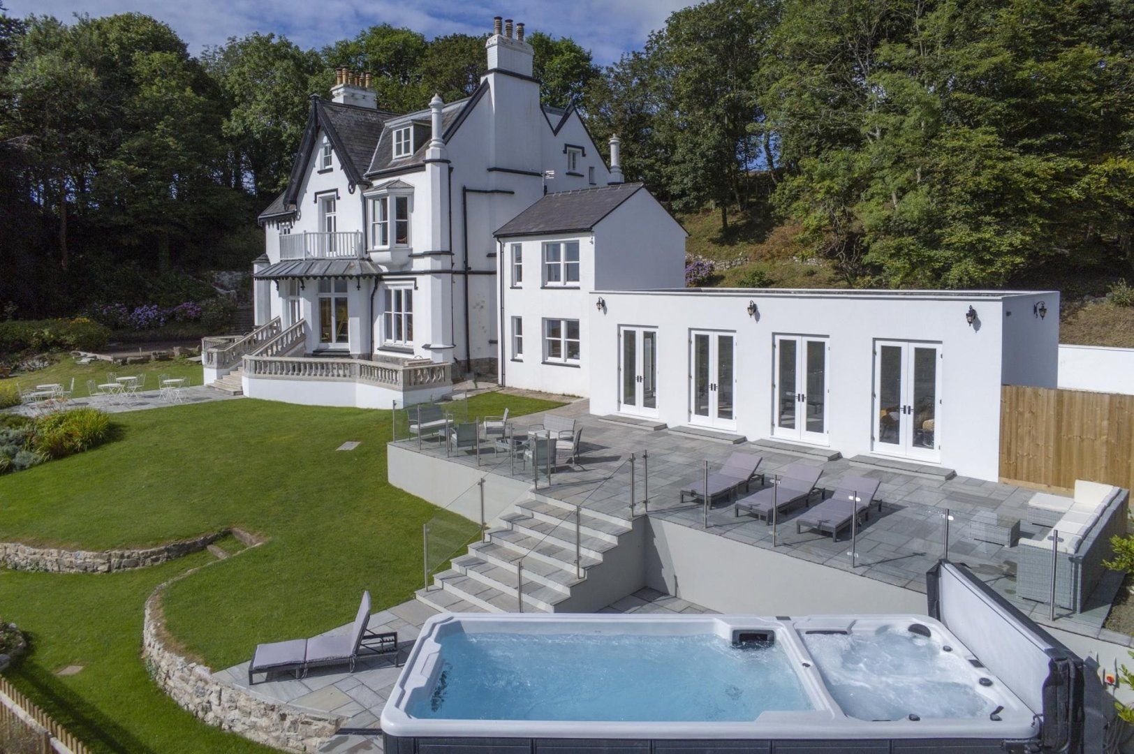 Super luxurious yet charmingly old-school, this manor sits in the charming town of Penally, near Tenby. So as well as having cosy country pubs and the Pembrokeshire Coast Path on your doorstep, it’s just a six-minute drive into the centre of Tenby to explore the castle and beach. The home itself stands bay-windowed and bold, bright white against the blue sky. Built around 1840, it’s a Grade II listed building with two acres of stepped, walled garden to explore. Terraces with panoramic sea views, a swimming pool with adjoining hot tub, flowerbeds bursting with bloom and secret grottos fill the grounds. When dinner calls, there are plenty of places to dine – the sunny orangery that opens out onto the terrace, the sunny cubby hole in the kitchen or in the long, formal dining room. Chefs of the group can cook in the family kitchen, or leave it to a professional and make use of the catering kitchen in the basement. Down here you’ll also find the private bar and games room, like your own personal pub. Bedrooms come in all shapes and sizes to fit couples and kids, and our favourite has to be the master with its hand-carved four-poster bed and view of the sea from the bay window.