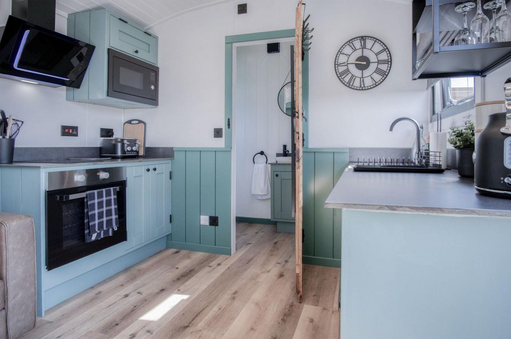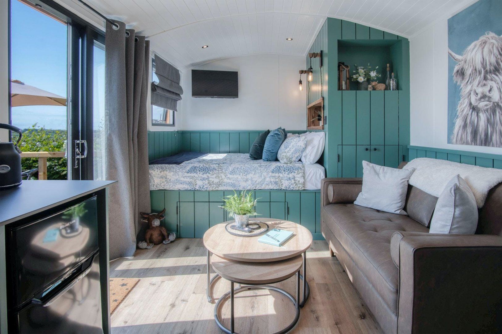 Home truths: *This is a compact shepherd’s hut, so space is limited in places despite the thoughtful layout. Storage is built in and efficient, but larger suitcases may need to be tucked to the side.