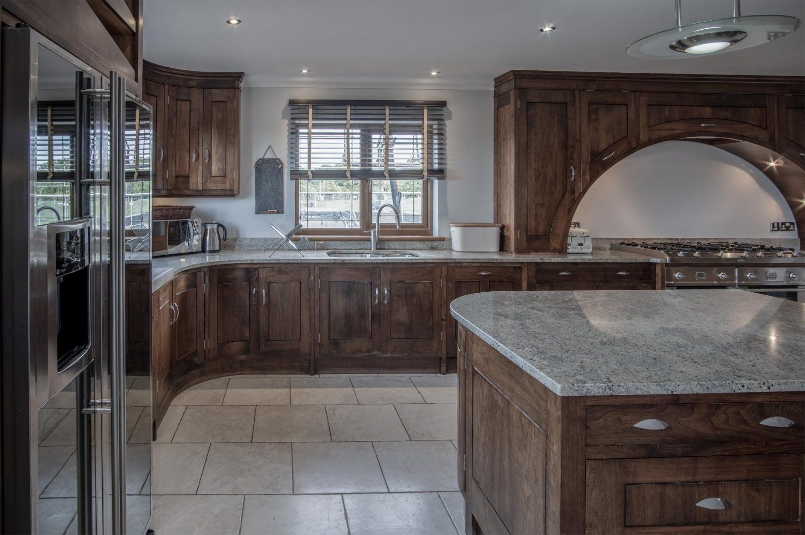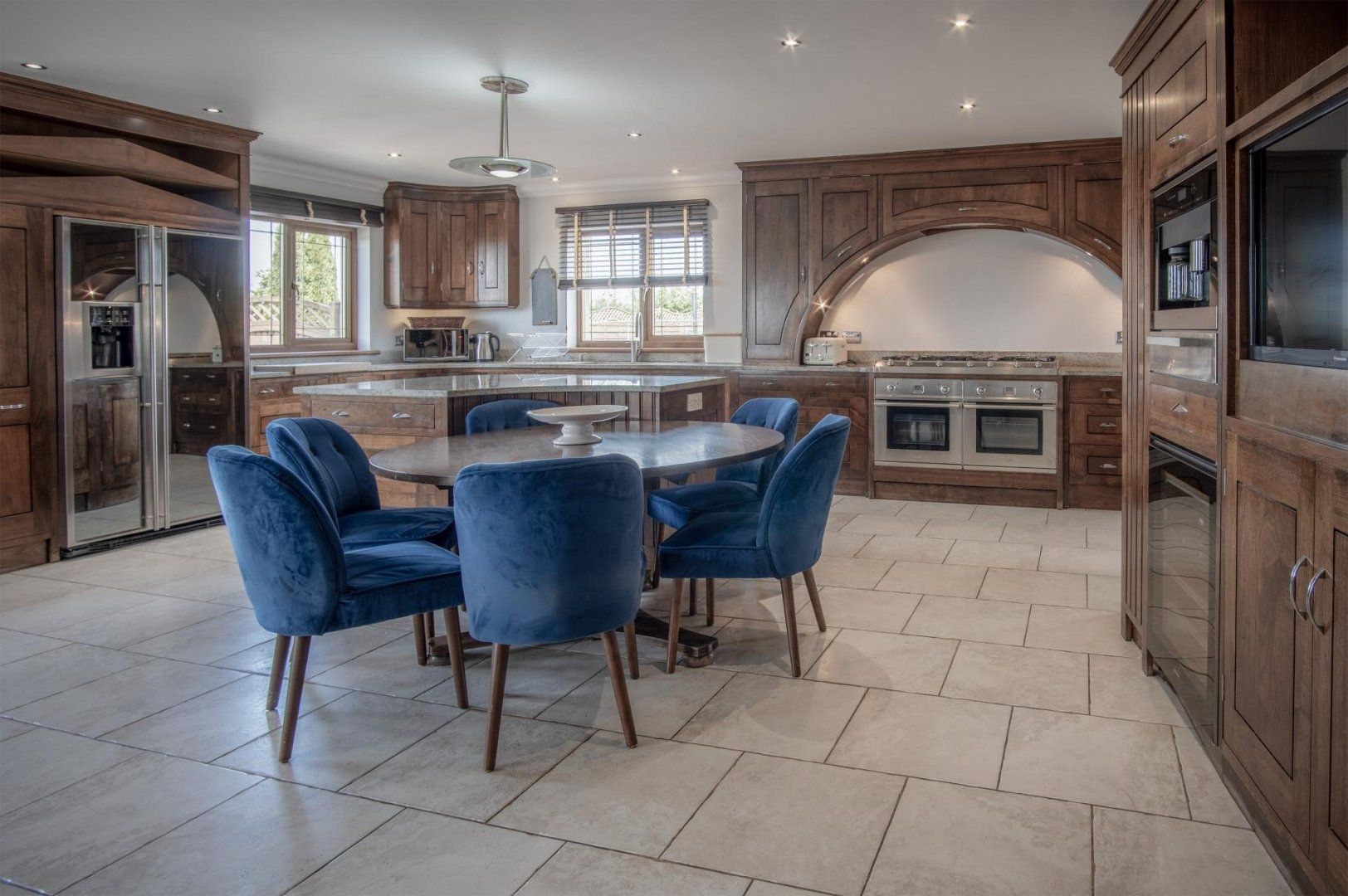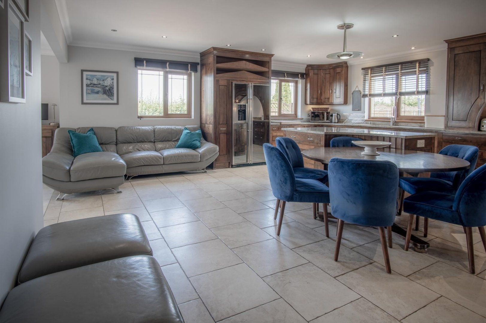 There's plenty to like inside as well. As well as three separate living areas — including one on the first floor with pretty views of rolling countryside — we're also particularly fond of the huge kitchen fitted with sleek surfaces and smart wooden finishes.