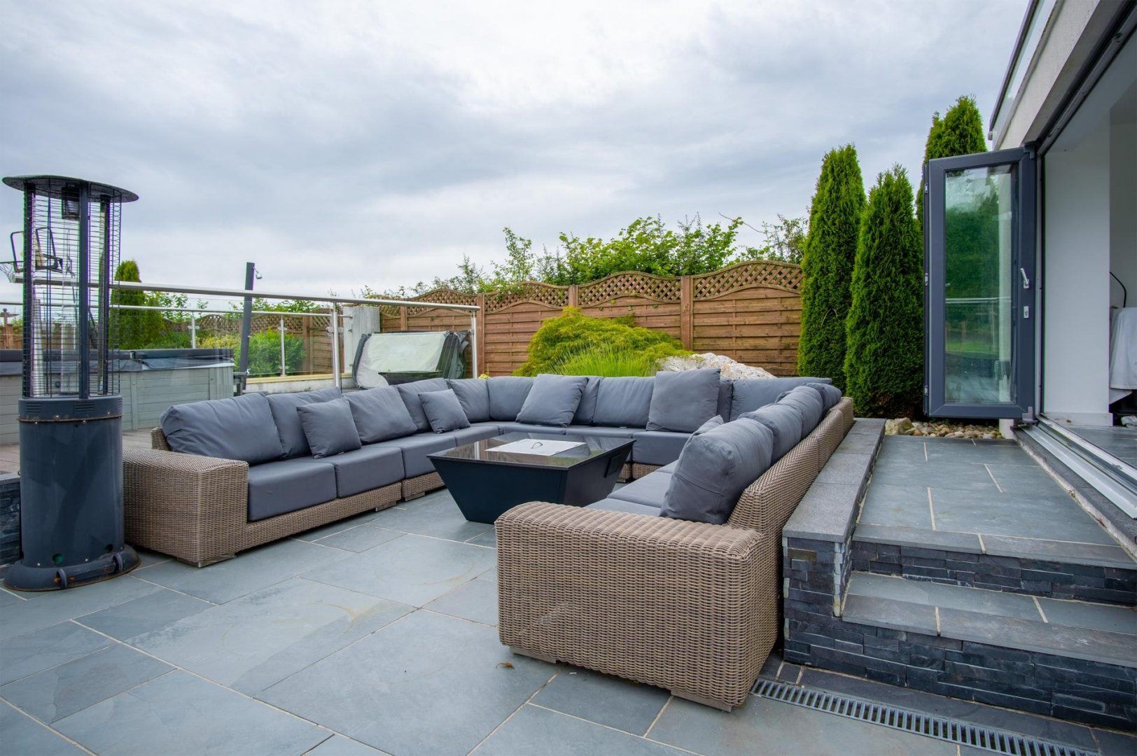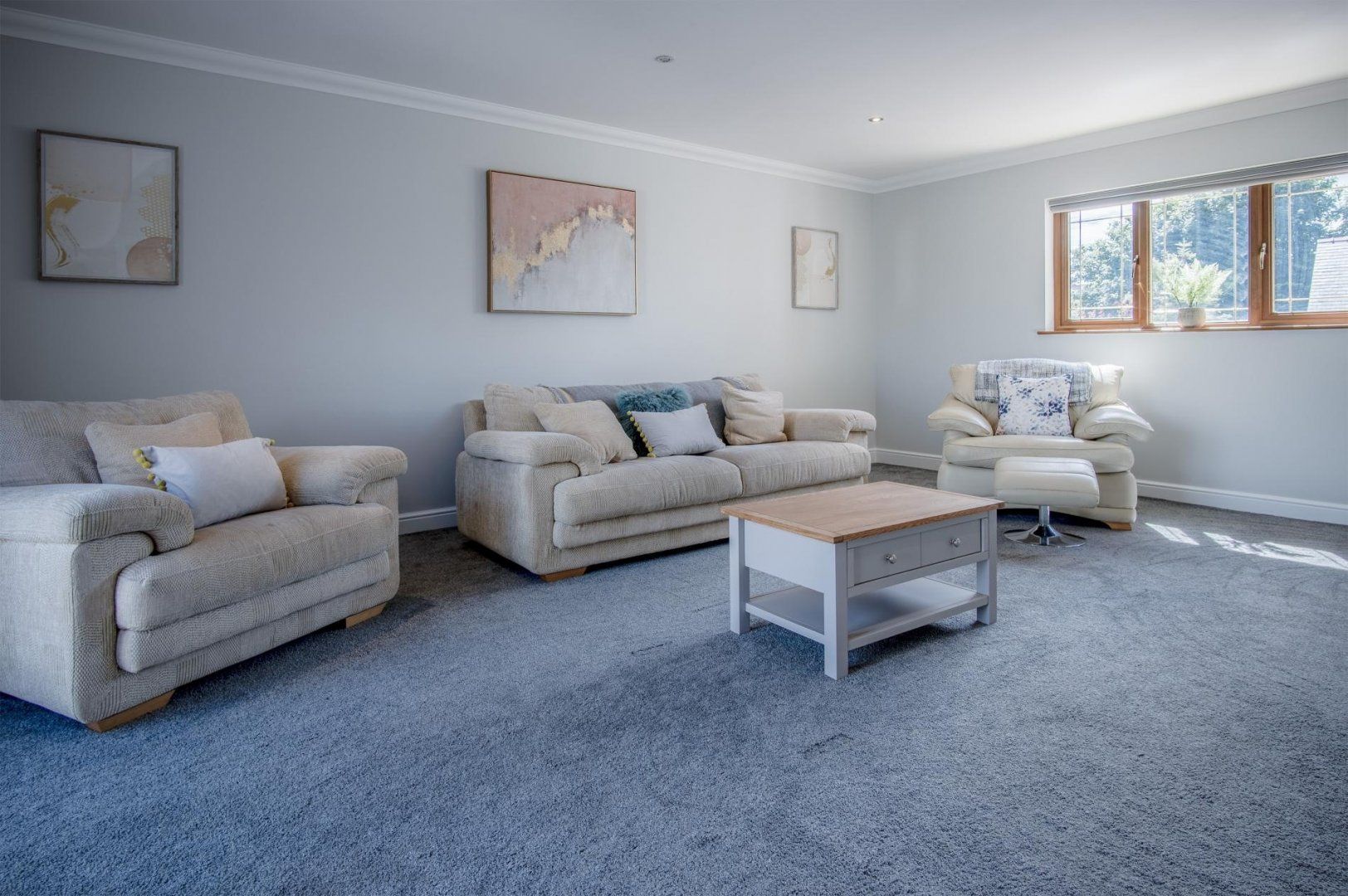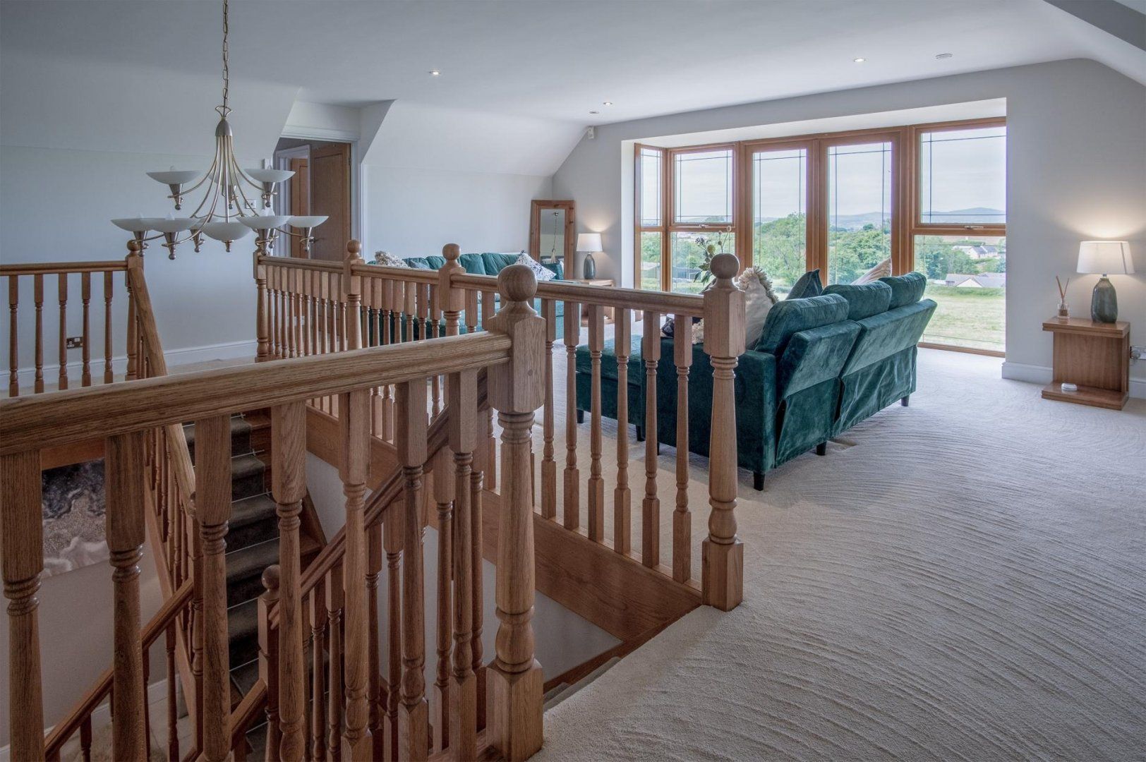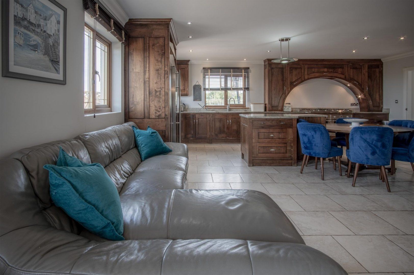 There's plenty to like inside as well. As well as three separate living areas — including one on the first floor with pretty views of rolling countryside — we're also particularly fond of the huge kitchen fitted with sleek surfaces and smart wooden finishes.