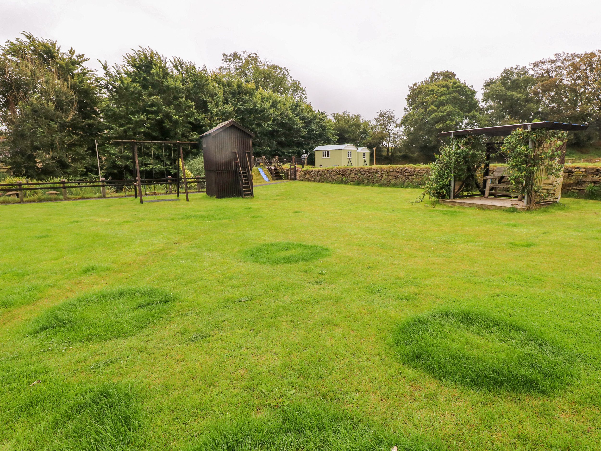 Accomodation Details One bedroom: 1 x double within studio-style shepherds hut, with en-suite shower room with shower, basin and WC. Kitchen/dining space with woodburning stove.