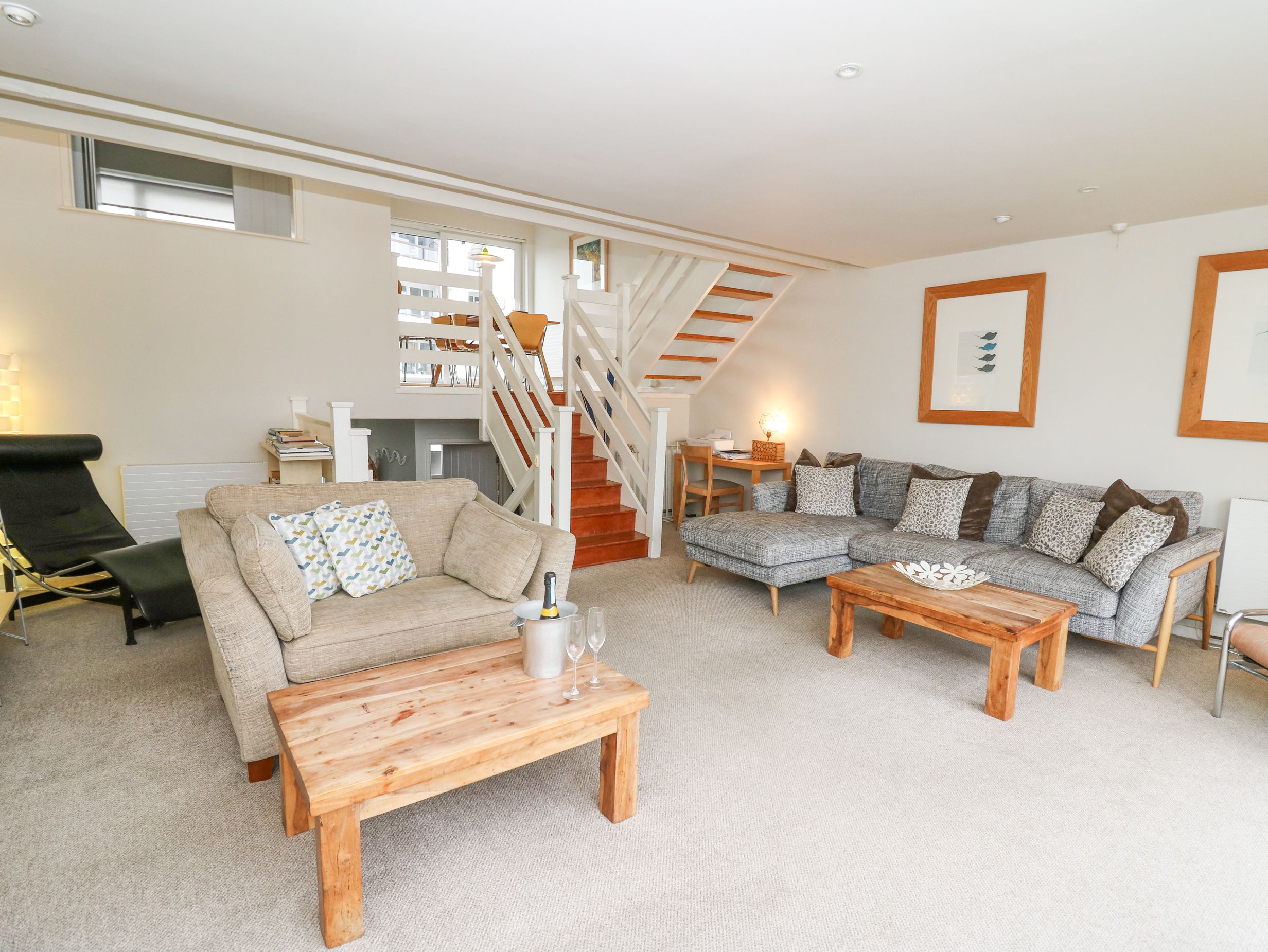 Amenities Gas central heating. Electric oven and hob, microwave, fridge/freezer, dishwasher, washing machine, tumble dryer. 3 x Smart TV, WiFi. Fuel and power inc. in rent. Bed linen and towels inc. in rent. Travel cot, highchair and stairgates available on request. Off-road parking for 1 car (space is narrow – there is an alternative space to the right of the property). Lower-ground-floor enclosed rear garden with patio and furniture. Two well-behaved pets welcome. Sorry, no smoking. Shop, pub and harbour all 400 yards away. Note: Low, sloping ceilings with reduced head height in the mezzanine. Note: There is a Good Housekeeping Bond of £250. Note: Multi-level property, not suitable for those with mobility issues