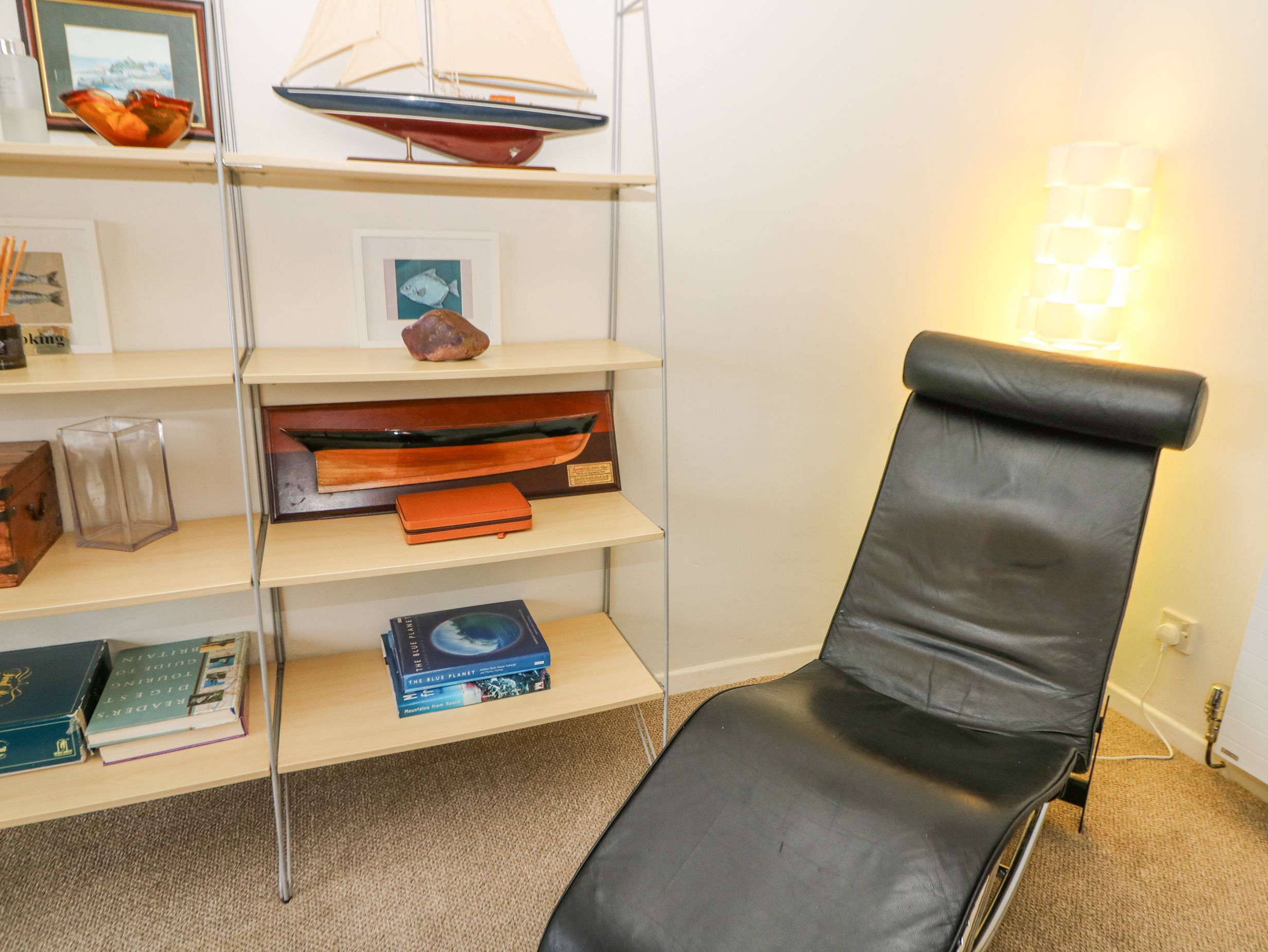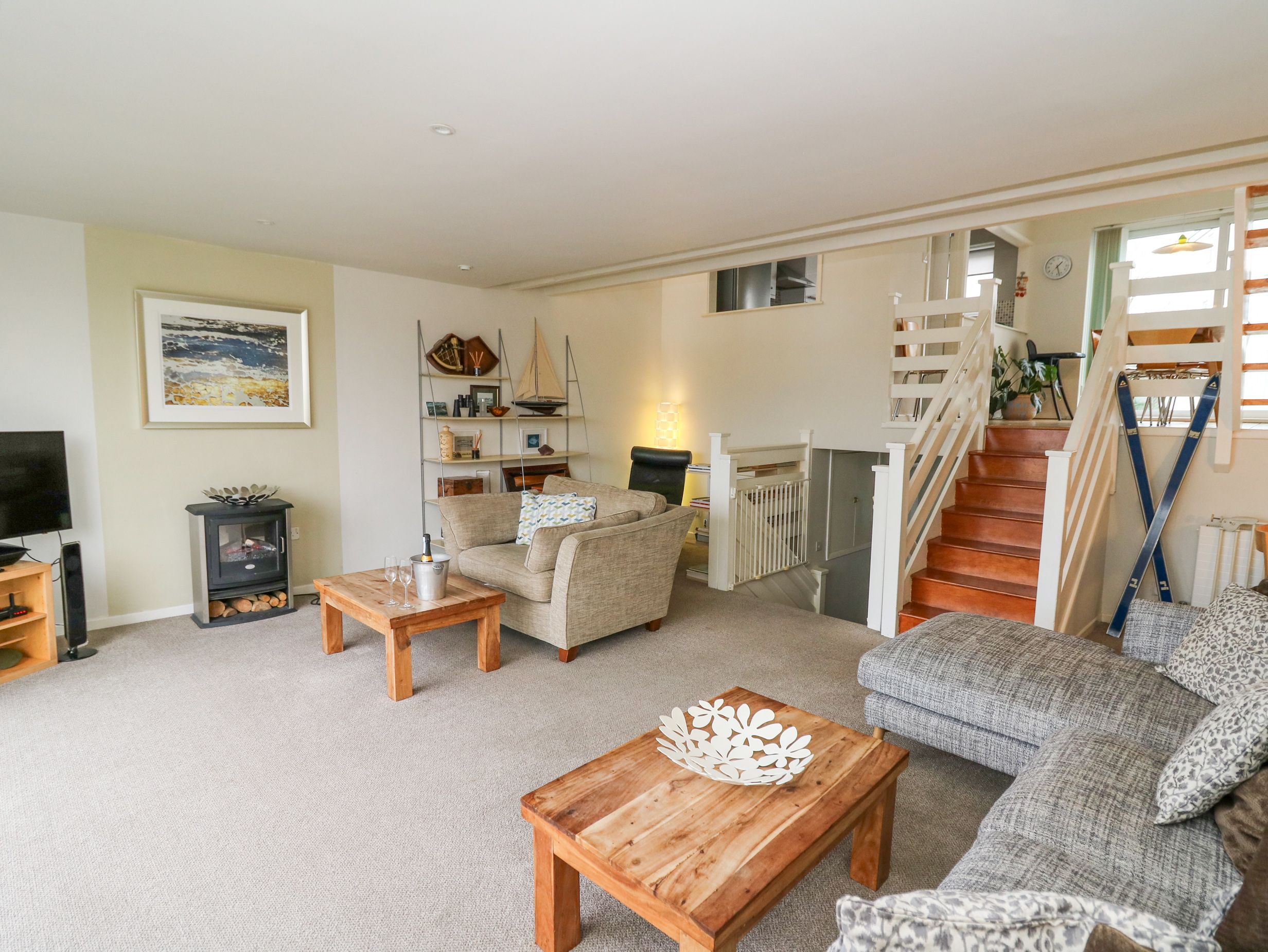 Holiday home 11 Captains Walk features a lower-ground-floor super-king-size bedroom with a Smart TV and en-suite bathroom, a twin bedroom, and a ground-floor bunk room served by a shower room. The first floor offers a lounge with Smart TV, electric flame-effect fire and Juliette balcony with sea views. The second floor includes a well-equipped kitchen with an electric oven and hob, microwave, fridge/freezer, dishwasher, washing machine, and tumble dryer, alongside a dining room with a balcony. The third floor hosts a mezzanine-style room with Smart TV and sea views. Outside, enjoy the enclosed lower-ground-floor garden with a patio and furniture, plus off-road parking for one car (note: space is narrow; alternative parking is available). WiFi, fuel, power, bed linen, and towels are included. Two well-behaved pets are welcome. Sorry, no smoking. Shop, pub, and harbour all 400 yards away. Note: Low, sloping ceilings in the mezzanine. Note: Good Housekeeping Bond of 250GBP. Note: Not suitable for those with mobility issues.