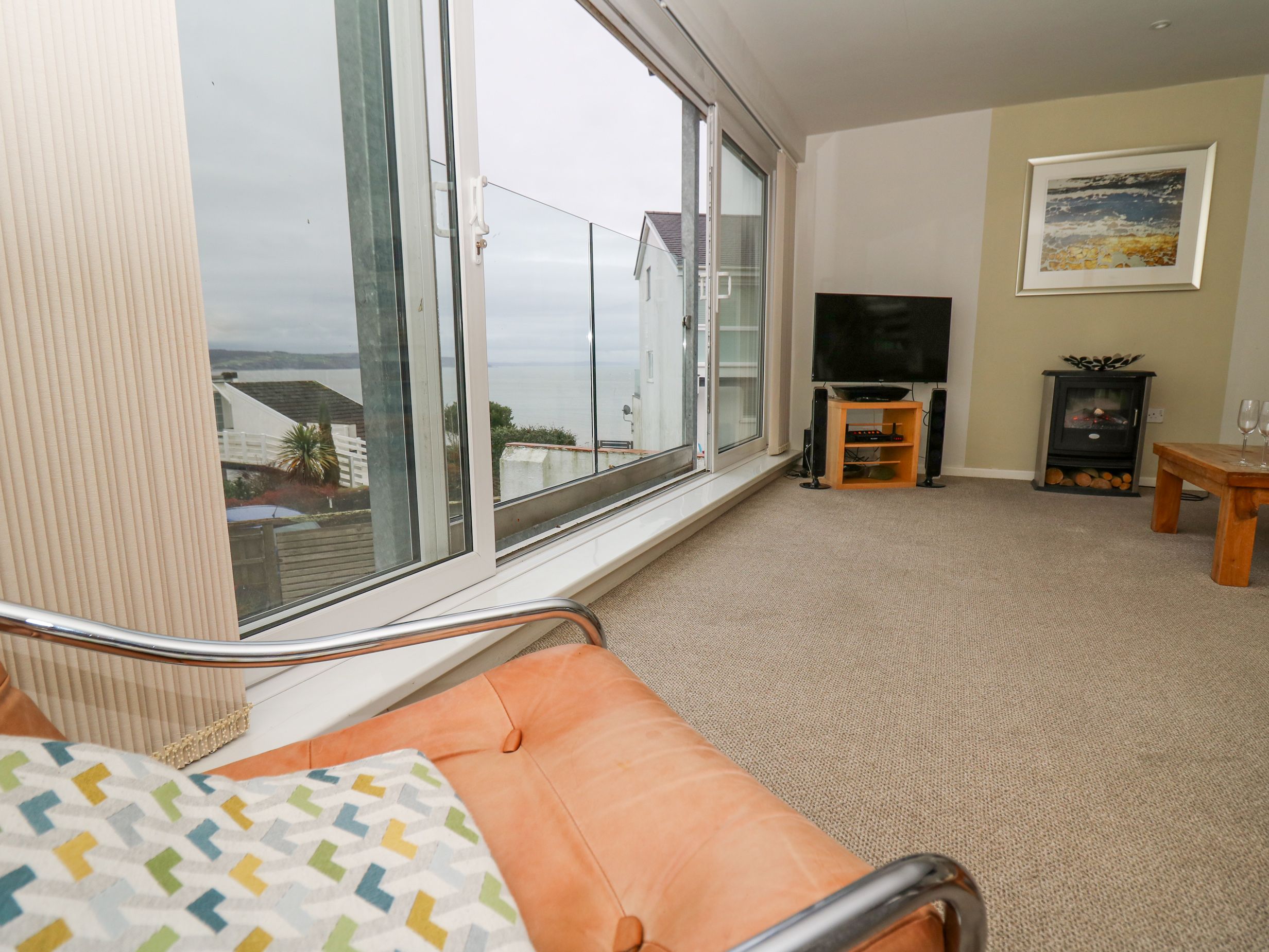 Accomodation Details Over 5 split-level floors. Reverse-level. Three bedrooms: 1 x lower-ground-floor super-king-size with Smart TV and en-suite with bath, shower over, basin and WC, 1 x lower-ground-floor twin, 1 x ground-floor bunk bed. Ground-floor shower room with walk-in shower, basin and WC. First-floor lounge with Smart TV, electric flame-effect fire and Juliette balcony with sea views. Second-floor kitchen. Second-floor dining room with balcony. Third-floor Mezzanine room with Smart TV and sea views