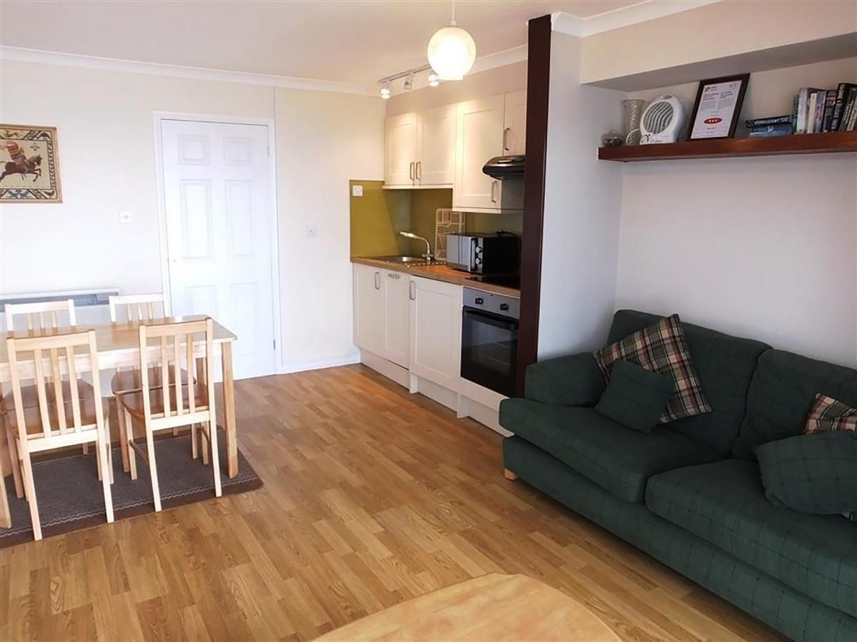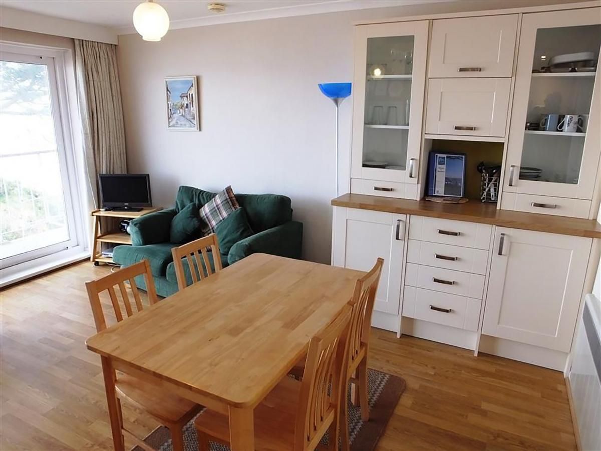 Overlooking the sandy shores of Saundersfoot Beach, this second-floor apartment with a balcony and a cosy open-plan living space is perfect for a small family or couple seeking a traditional seaside getaway.