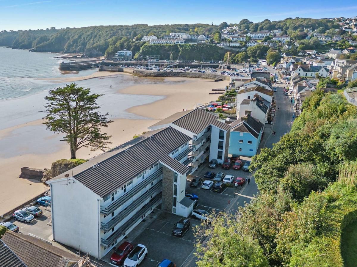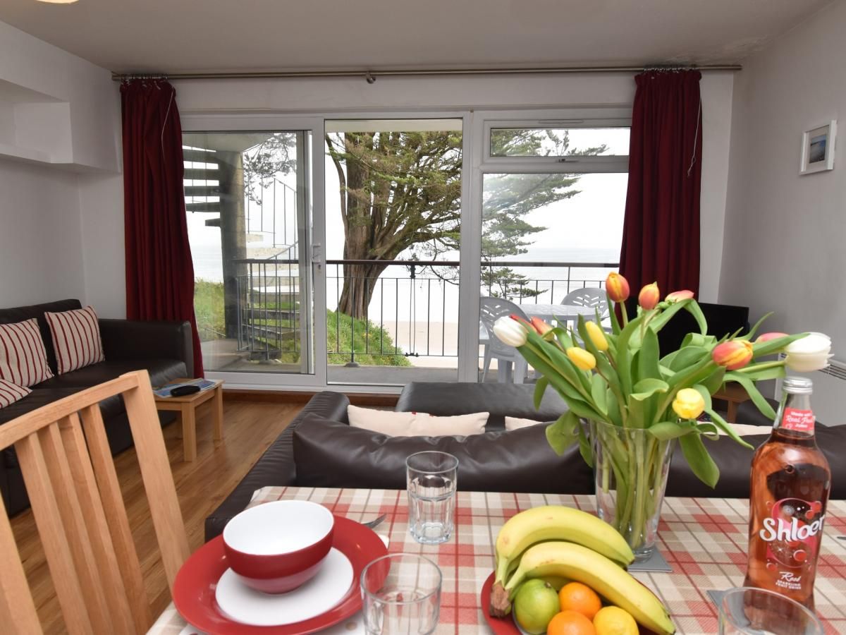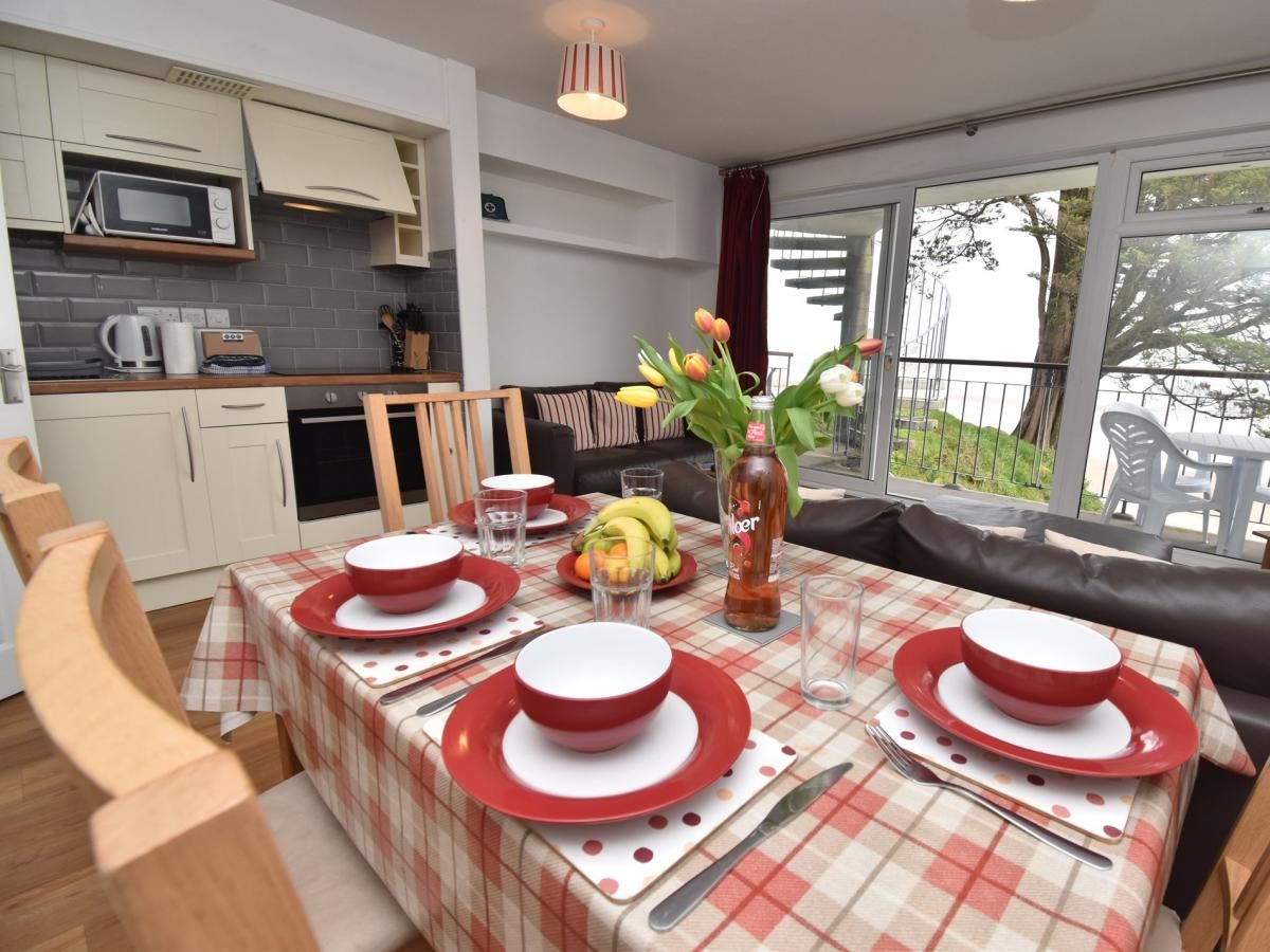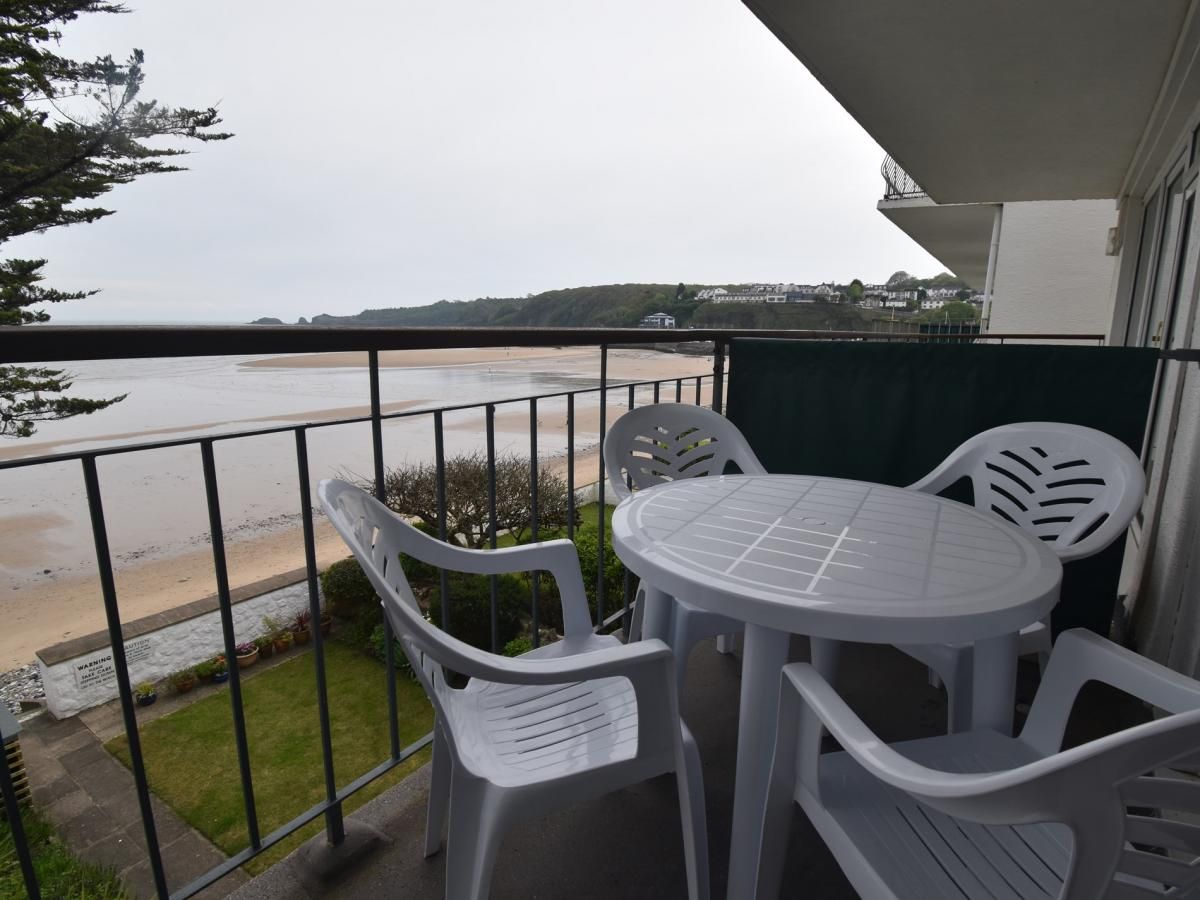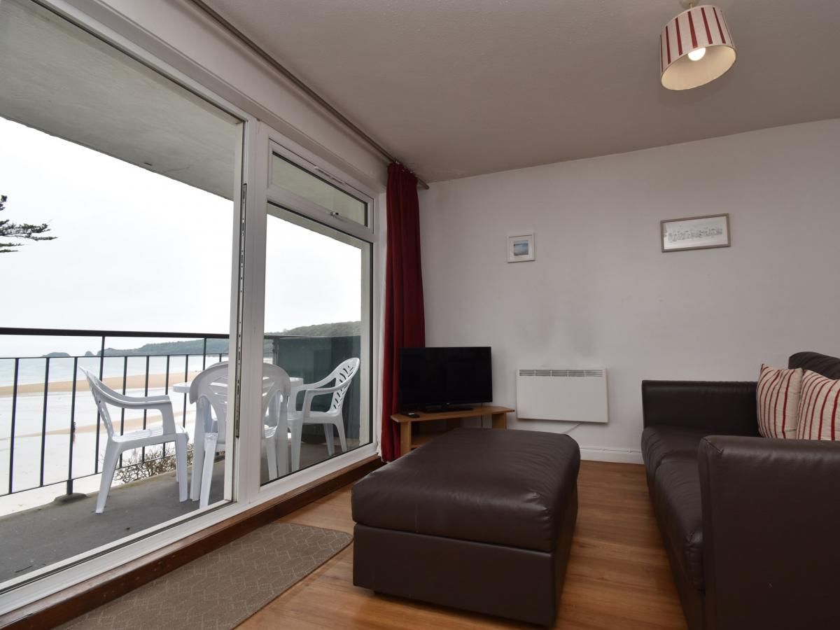 Just moments from Saundersfoot’s sandy beach, it offers open-plan living with a Smart TV as well as a private balcony and allocated parking.