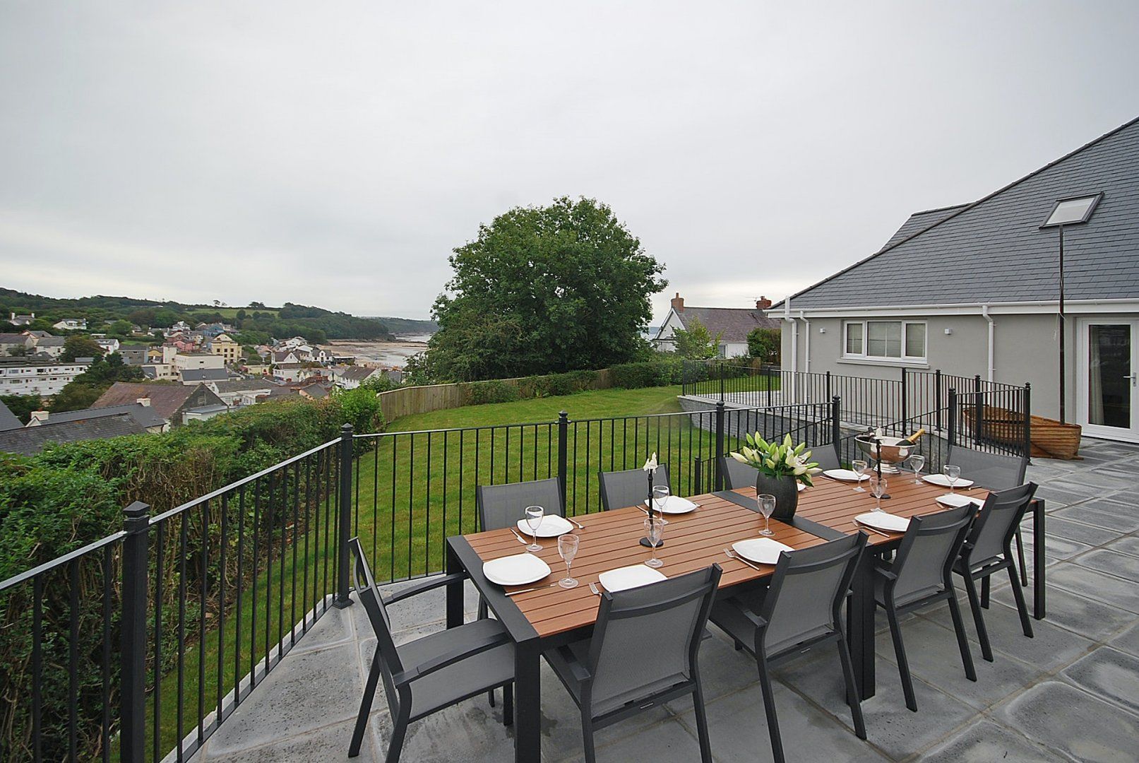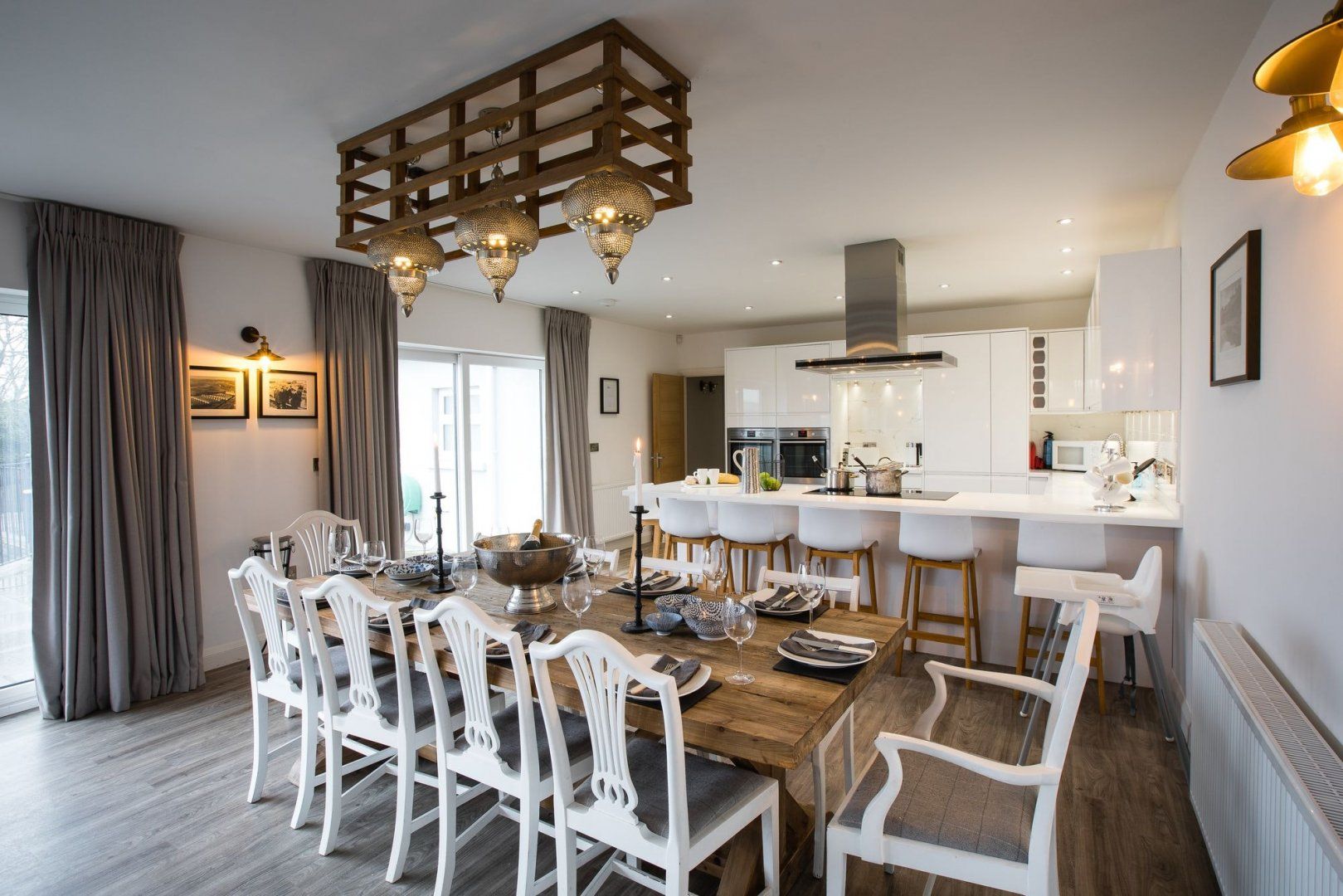 Every year, the cliffs of Pembrokeshire become home to thousands of puffins, guillemots, and razorbills as they return to nest on the dramatic shores. Care to join them? This luxury cottage is situated with gorgeous views over the beach, in a perfect mixture of traditional yet modern. Think statement Moroccan-style lampshades suspended above the dining table, enclosed by a rustic wooden frame. Or sofas furnished in classic grey check, next to a minimalist, matte-black log burner set into the wall. Even more striking is the top-floor sky room, with huge windows offering vistas of the surrounding village, bay, and landscape. If you really must check your inbox, the plush dedicated workspace will bring back your professional side – followed by board games and a champagne-fuelled splash in the hot tub, naturally. The garden's expanse of lawn and decking is perfect for a summer evening barbecue, yet you’re close enough to Saundersfoot village centre to stroll out to a local fish restaurant. Less than a ten-minute drive is Tenby – a town eager to please history buffs and beach bums alike. Once you’ve experienced this home and its unique region, you’ll be back year after year, just like the seabirds.