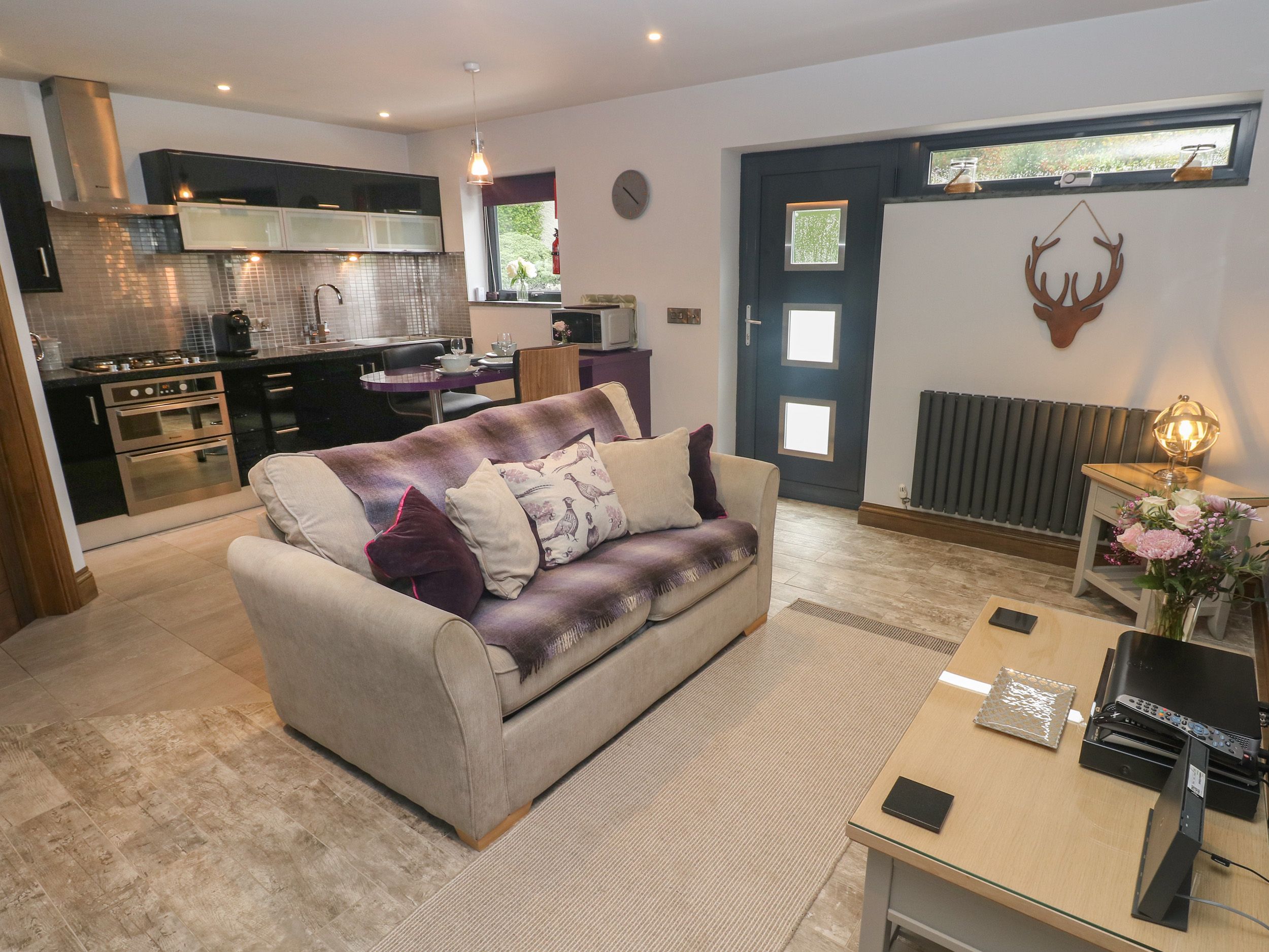 Pen Coed has an open-plan kitchen, dining area and sitting area, a king-size bedroom, and a ground-floor shower room. Appliances consist of an electric oven, gas hob, microwave, fridge with freezer box, dishwasher, coffee machine and Smart TV. Outside there is a private patio with furniture, and designated parking for one car. This is a pet-free and smoke-free home. WiFi, fuel, power, bed linen and towels are all included in the price. You'll find a shop and beach in 1.7 miles, and pub in 0.5 miles. Enjoy time as a couple in Pembrokeshire at Pen Coed. Note: This is an adult-only property. Note: Pen Coed rests next to the owner's home. Note: The patio is not enclosed.