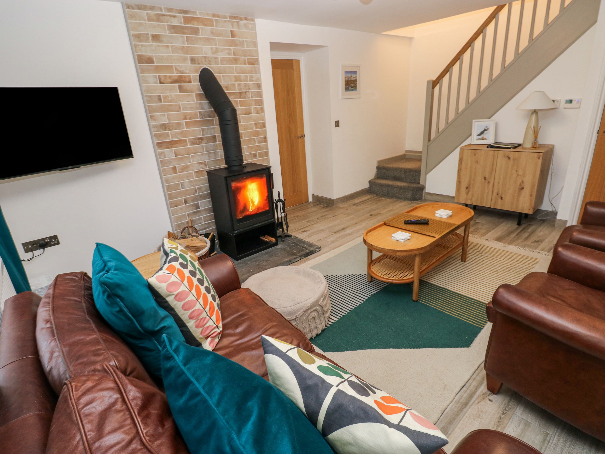 The bustling town of Narberth is a delight to discover with its many individual shops, including upmarket boutiques, specialist deli grocers and unique gift shops, and a wide choice of restaurants, bistros and pubs can be found in and around the town. Queen's Hall, Narberth's leading cultural and arts venue hosts a variety of concerts, plays and events, which can be enjoyed throughout the year. Pembrokeshire is home to the UK's only coastal National Park, and the whole of Pembrokeshire beckons with the harbour and seaside resorts of Tenby and Saundersfoot close by, visit secluded sandy beaches, such as the acclaimed Barafundle Bay for a quiet relaxing day, or take in an invigorating walk along the Pembrokeshire Coast National Path. Enjoy a boat trip to Caldey Island and its monastery, or to Skomer, which is renowned for its puffins. For the most adventurous, extreme watersports await, whilst golfers can take the challenge of Tenby's famous links course. Canaston Woods and the Landsker Trail is nearby with many walking routes. A perfect holiday base at any time of year.