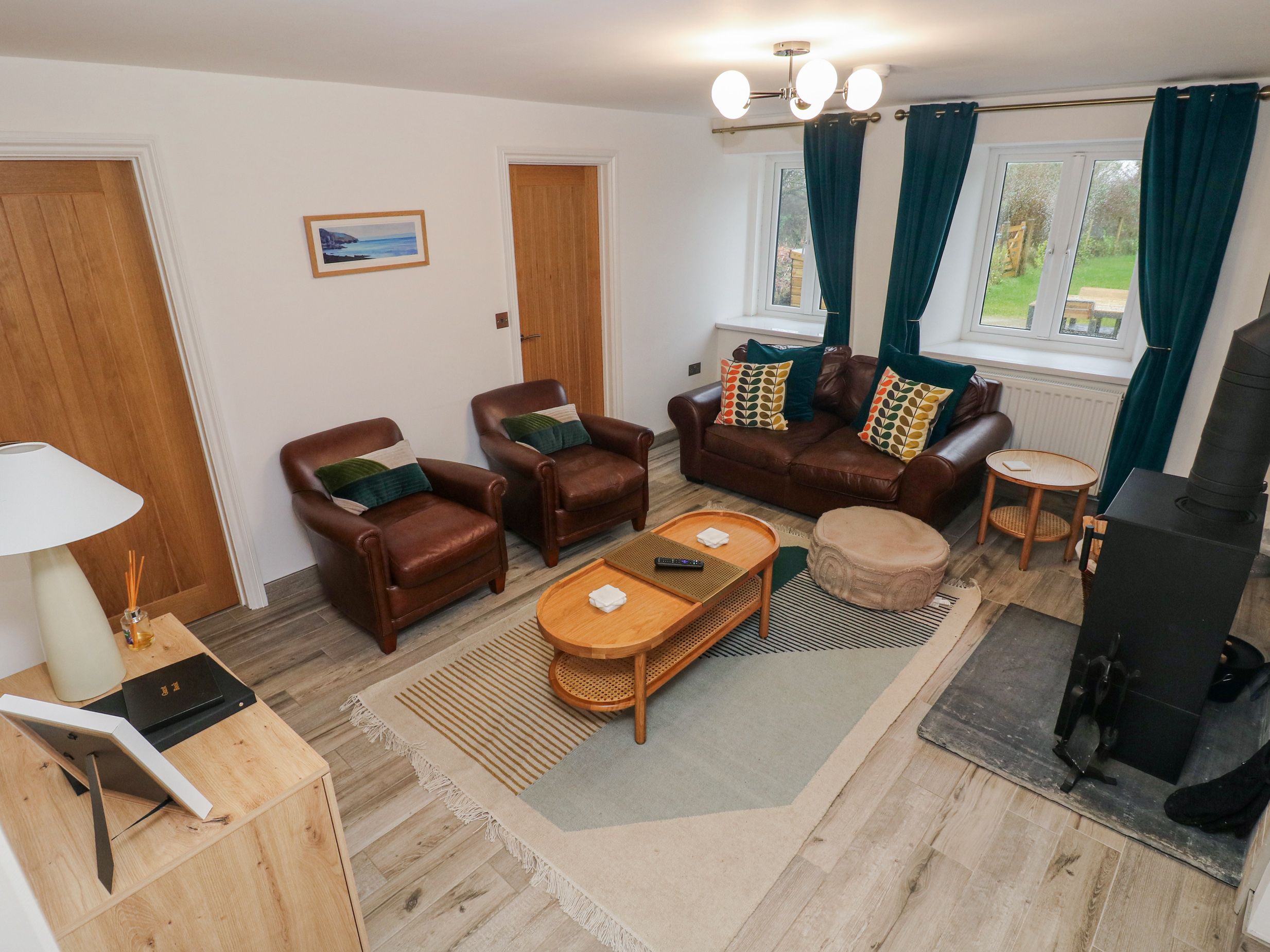 Oil central heating. Log burner. Electric oven and hob, microwave, fridge/freezer, washing machine, dishwasher. Smart TV, WiFi. Fuel, power and starter pack for log burner inc. in rent. Bed linen and towels inc. in rent. Travel cot and highchair available on request. Roadside parking for 3 cars. Enclosed gardens with lawns and patio furniture. Two well-behaved dogs welcome. Shop 0.1 miles, pub 2.3 miles, beach 2.8 miles. Note: Check-in from 4pm and check-out by 10am. Please note: This property has a 3 night booking minimum
