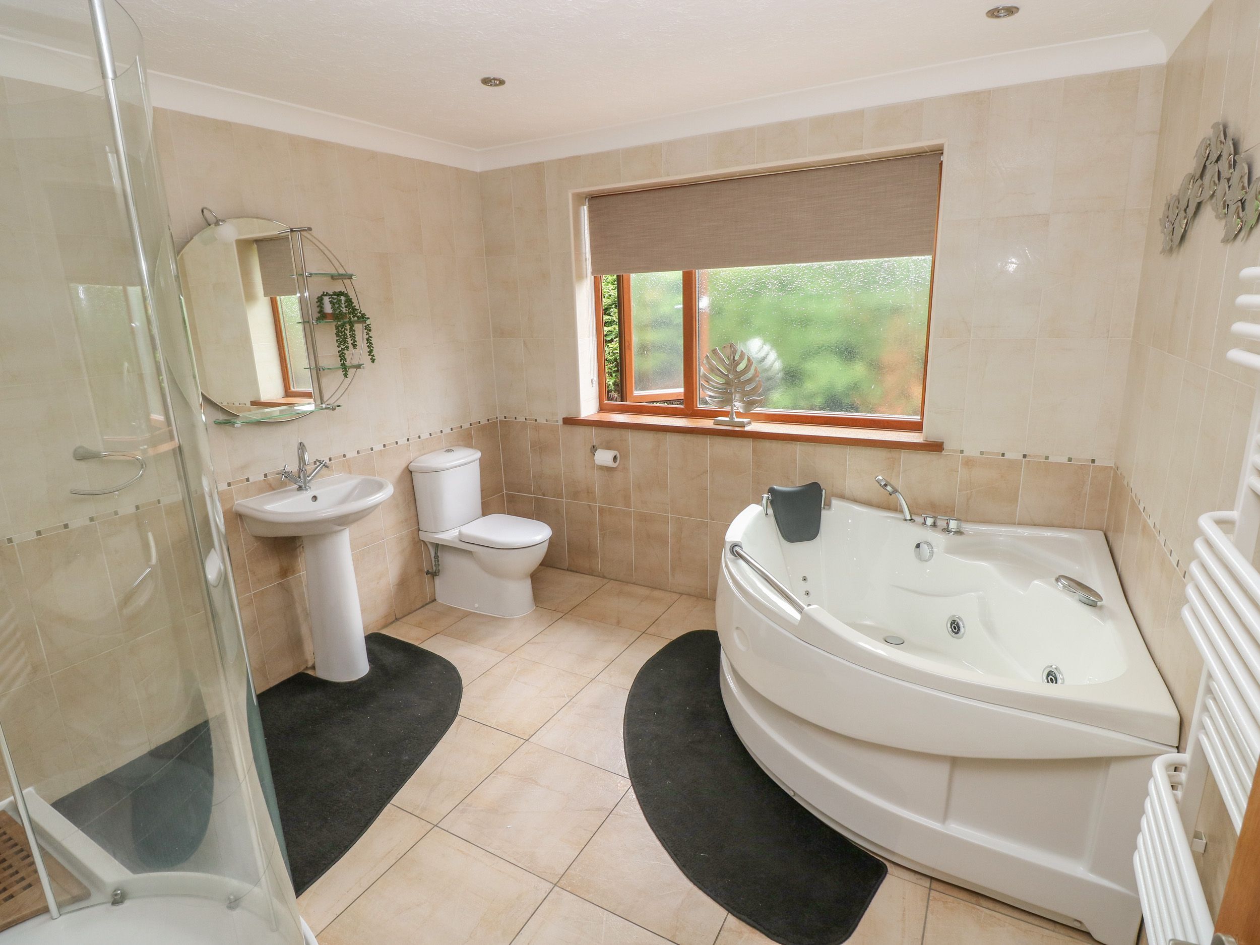 Three ground-floor bedrooms: 1 x double with en-suite walk-in shower, basin and WC, 1 x double, 1 x twin. Bathroom with a walk-in shower, Jacuzzi corner bath, basin and WC. Kitchen/diner. Sitting room